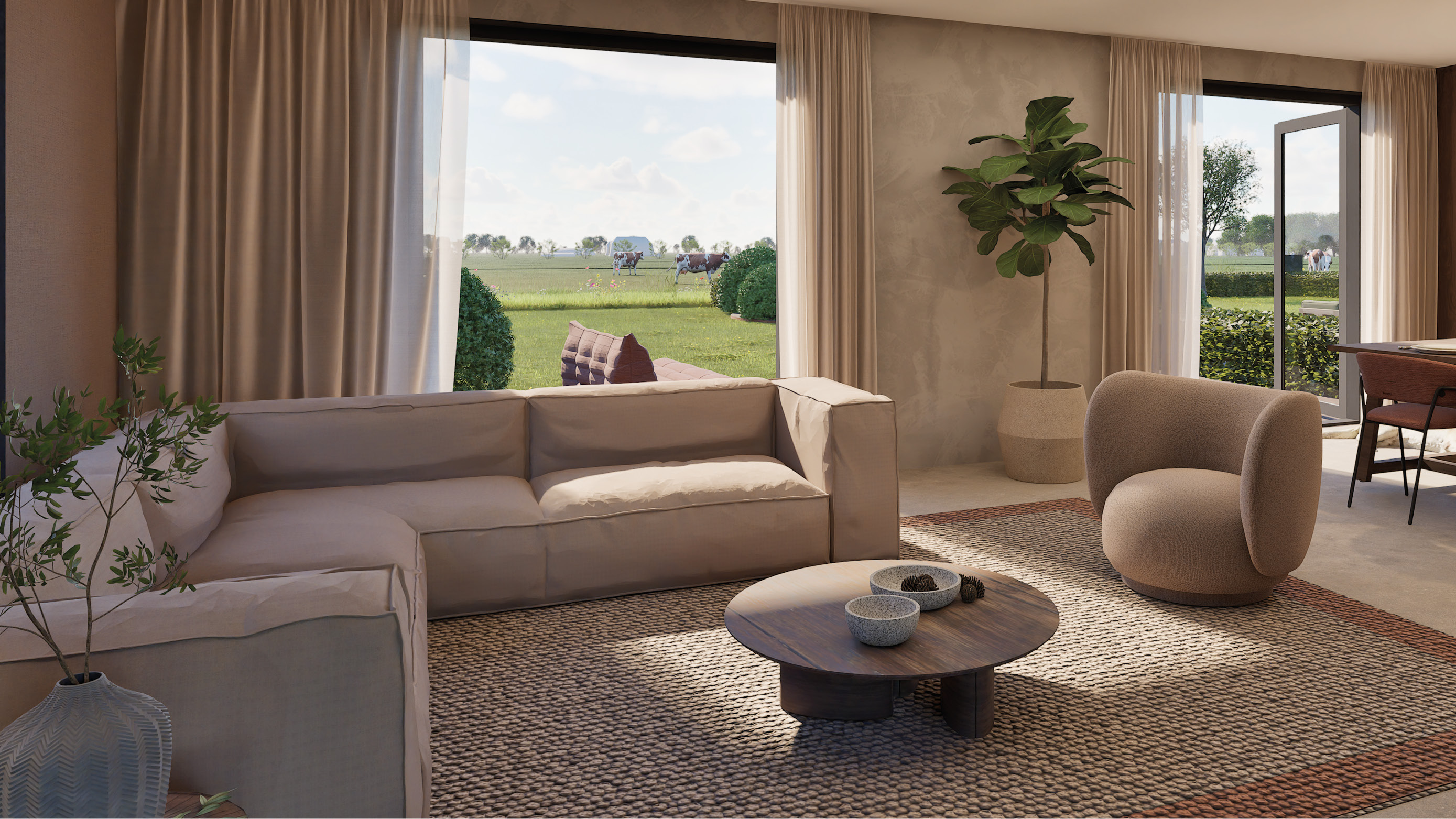 Het ontwerp van de woning is geïnspireerd op traditionele boerderijschuren, met duurzame, natuurlijke materialen en een robuuste schuurstijl. De minimalistische afwerking geeft de woning een moderne, frisse uitstraling, terwijl de landelijke charme behouden blijft.
