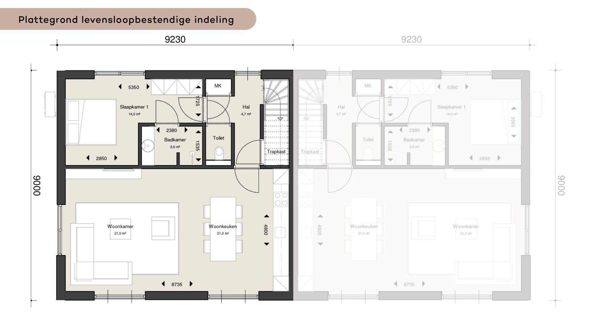 Dankzij hoogwaardige isolatie, een warmtepomp en zonnepanelen woon je energiezuinig, prettig en duurzaam. Wie gelijkvloers wil wonen, kan kiezen voor een levensloopbestendig woonprogramma met slaapkamer en badkamer op de begane grond. Zo past deze woning altijd moeiteloos bij jouw behoefte, nu én in de toekomst.