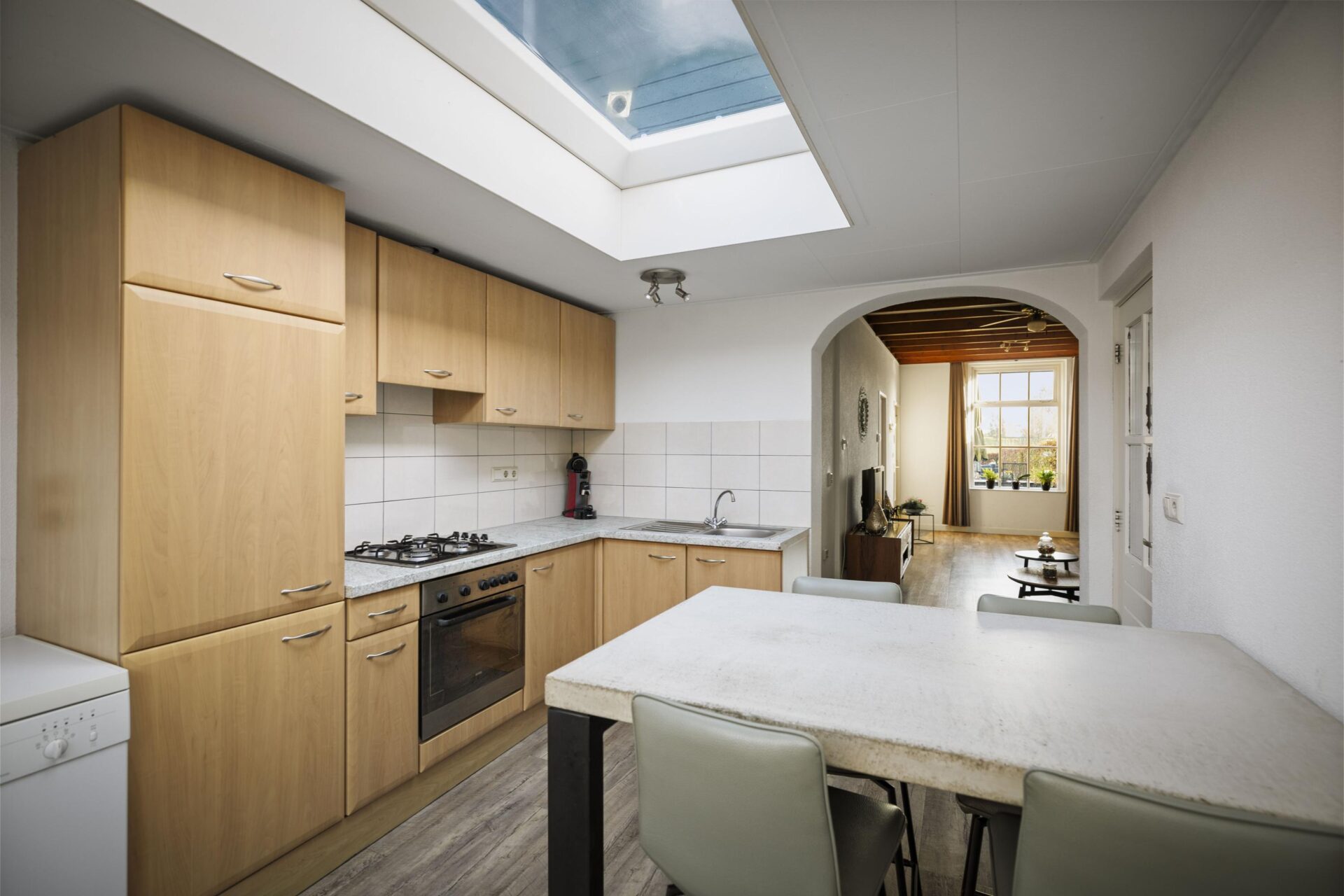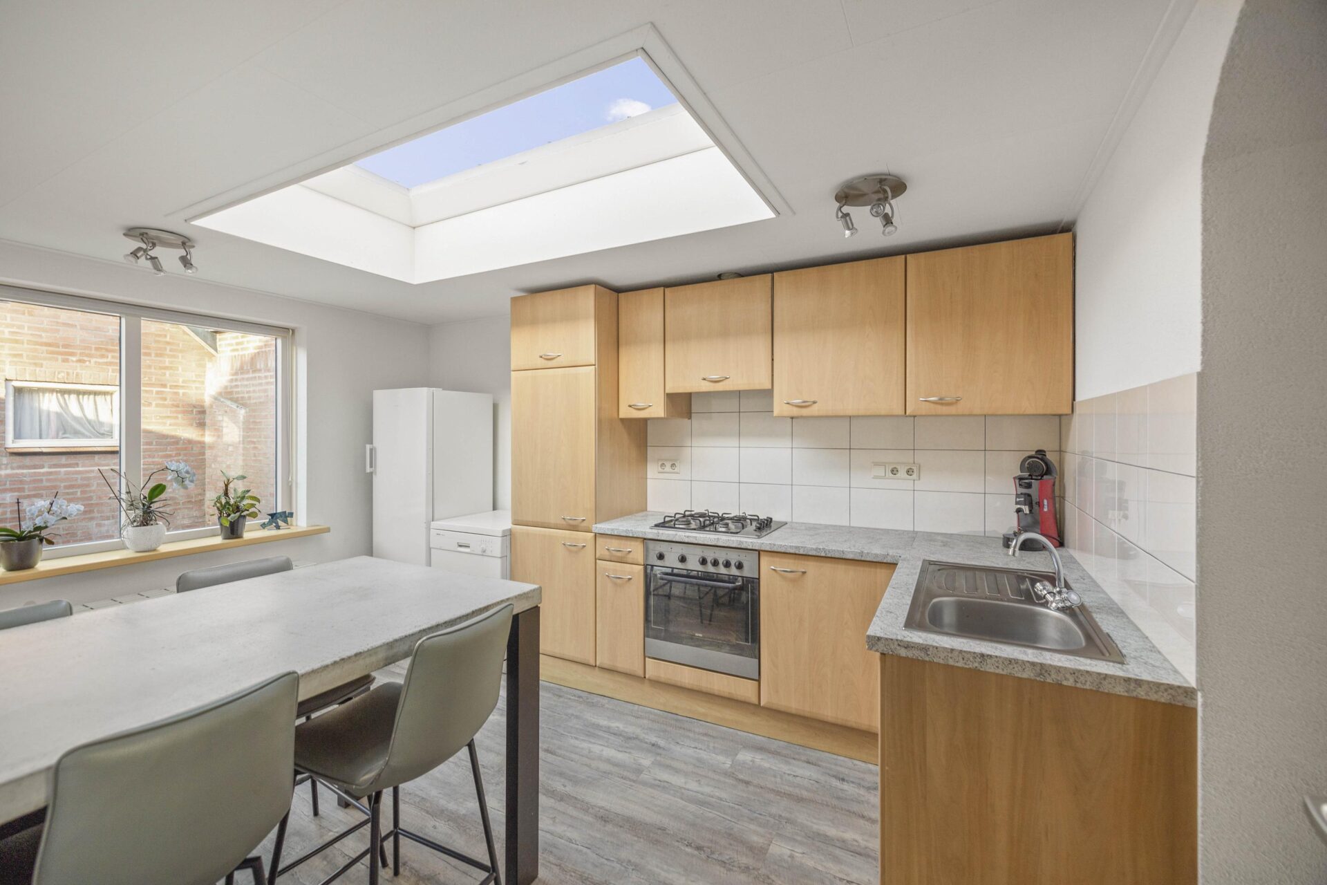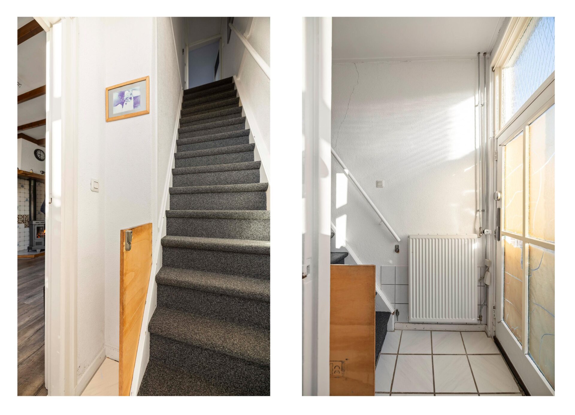 Via de voordeur loop je door de hal met trapopgang naar de woonkamer. Deze bevindt zich aan de voorzijde van de woning. Een sfeervolle ruimte met houtkachel en ruimte voor een grote zithoek. De badkamer is via een hal te bereiken. Een modern uitgevoerde ruimte die voorzien is van een douche, toilet en wastafelmeubel. De keuken is aan de achterzijde gesitueerd, deze is in een hoek opgesteld en voorzien van voldoende kastruimte. De woonkamer en keuken zijn voorzien van vloerverwarming. Via de bijkeuken loop je naar de achterkant van de woning waar ruimte is voor een fijn terras.