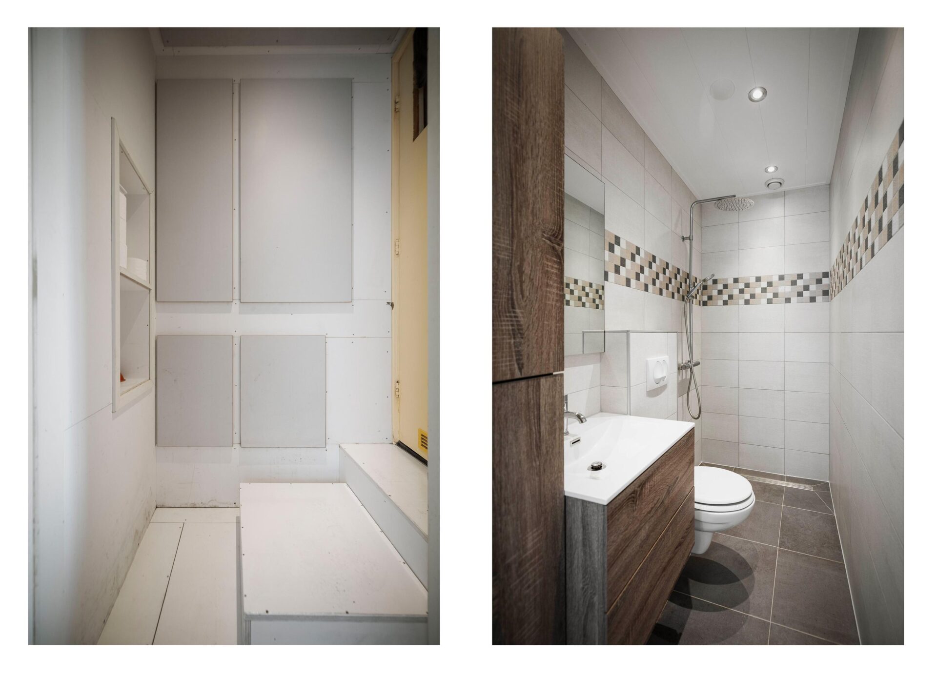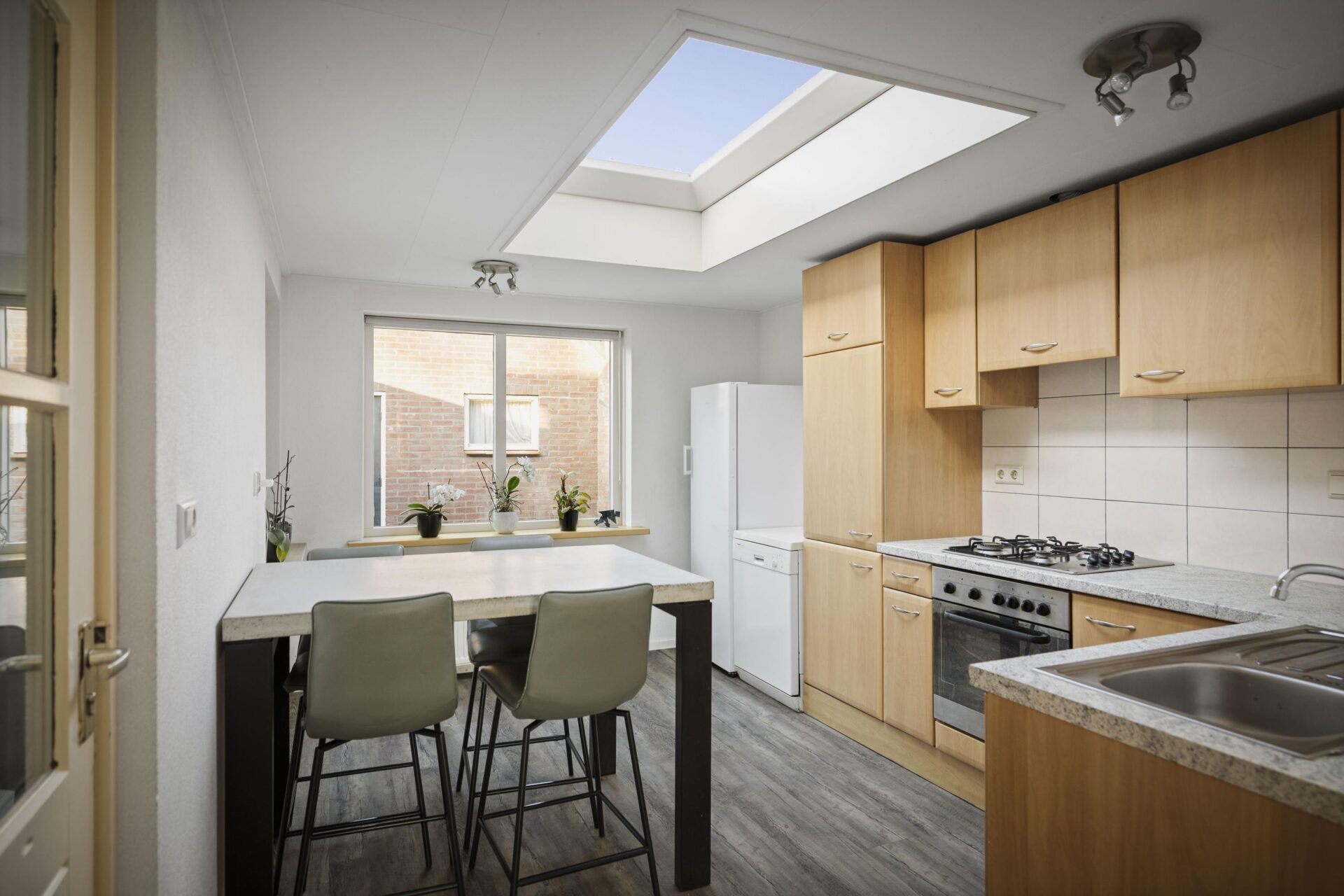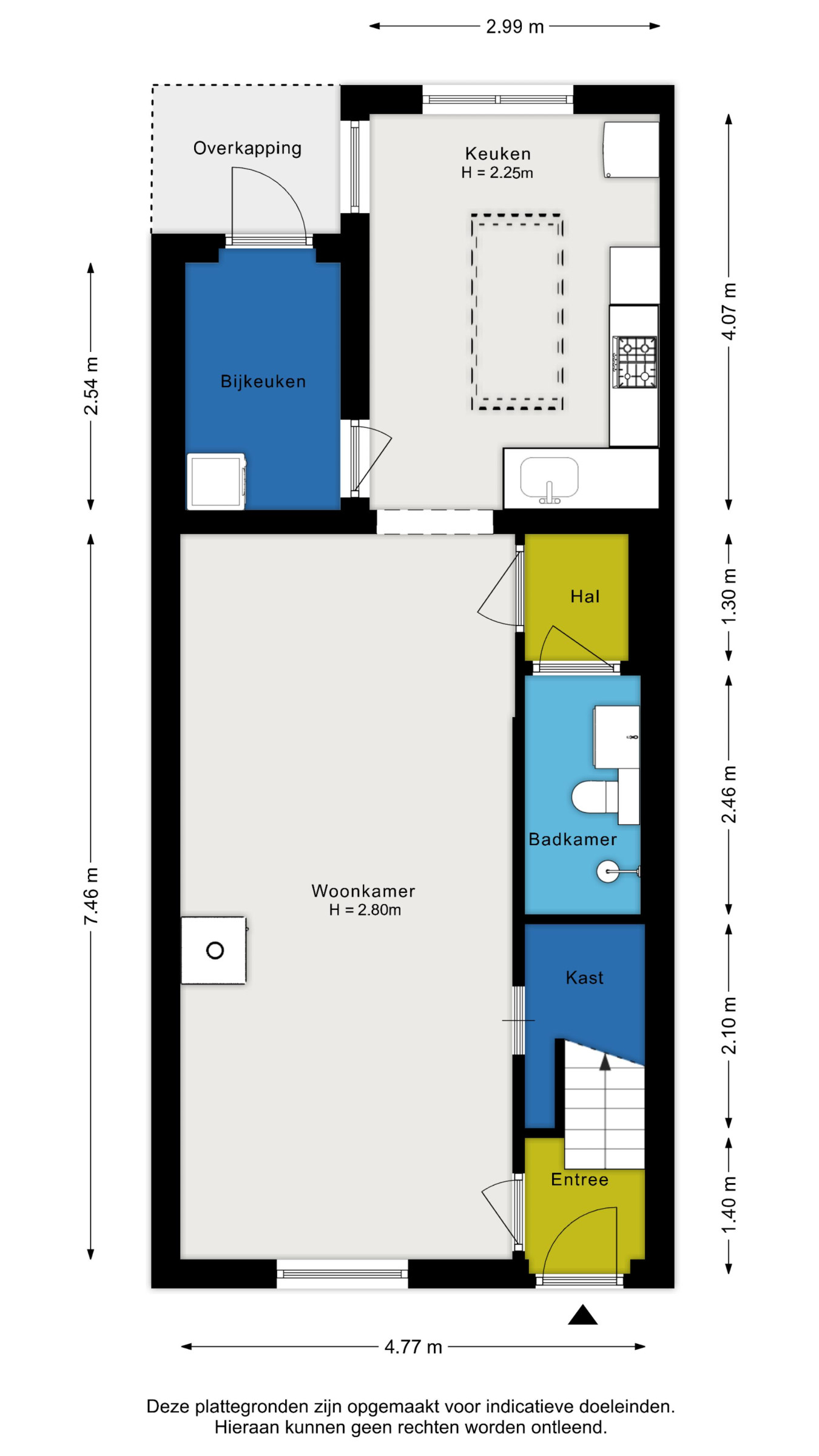 Via de voordeur loop je door de hal met trapopgang naar de woonkamer. Deze bevindt zich aan de voorzijde van de woning. Een sfeervolle ruimte met houtkachel en ruimte voor een grote zithoek. De badkamer is via een hal te bereiken. Een modern uitgevoerde ruimte die voorzien is van een douche, toilet en wastafelmeubel. De keuken is aan de achterzijde gesitueerd, deze is in een hoek opgesteld en voorzien van voldoende kastruimte. De woonkamer en keuken zijn voorzien van vloerverwarming. Via de bijkeuken loop je naar de achterkant van de woning waar ruimte is voor een fijn terras.