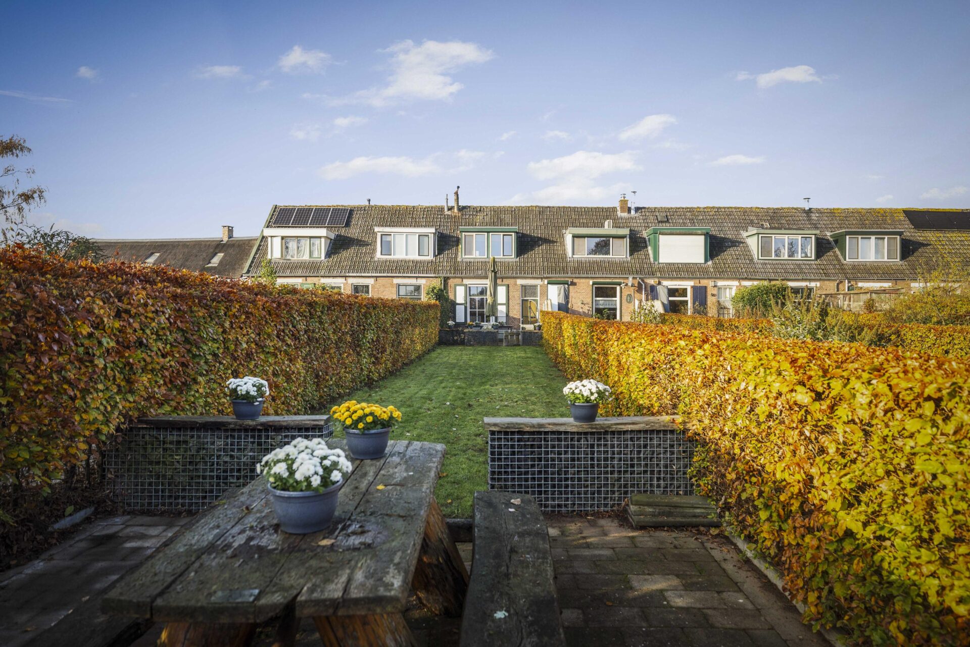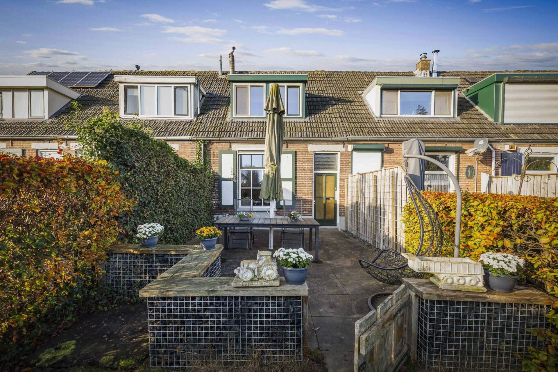 De woning staat op een royaal perceel van in totaal 595 m² en beschikt over een verrassend diepe voortuin van maar liefst 87 meter diep. Direct voor de woning is een terras aangelegd waar je van het groen en het buitenleven kunt genieten. Verder is de tuin ingericht met veel groen en kijk je uit op de dijk. Achter de woning staat een stenen garage, ideaal voor het uitvoeren van hobby, te gebruiken als opslag of het stallen van een auto. Ook is er parkeergelegenheid direct achter de woning waardoor je je auto dicht bij huis kunt parkeren.