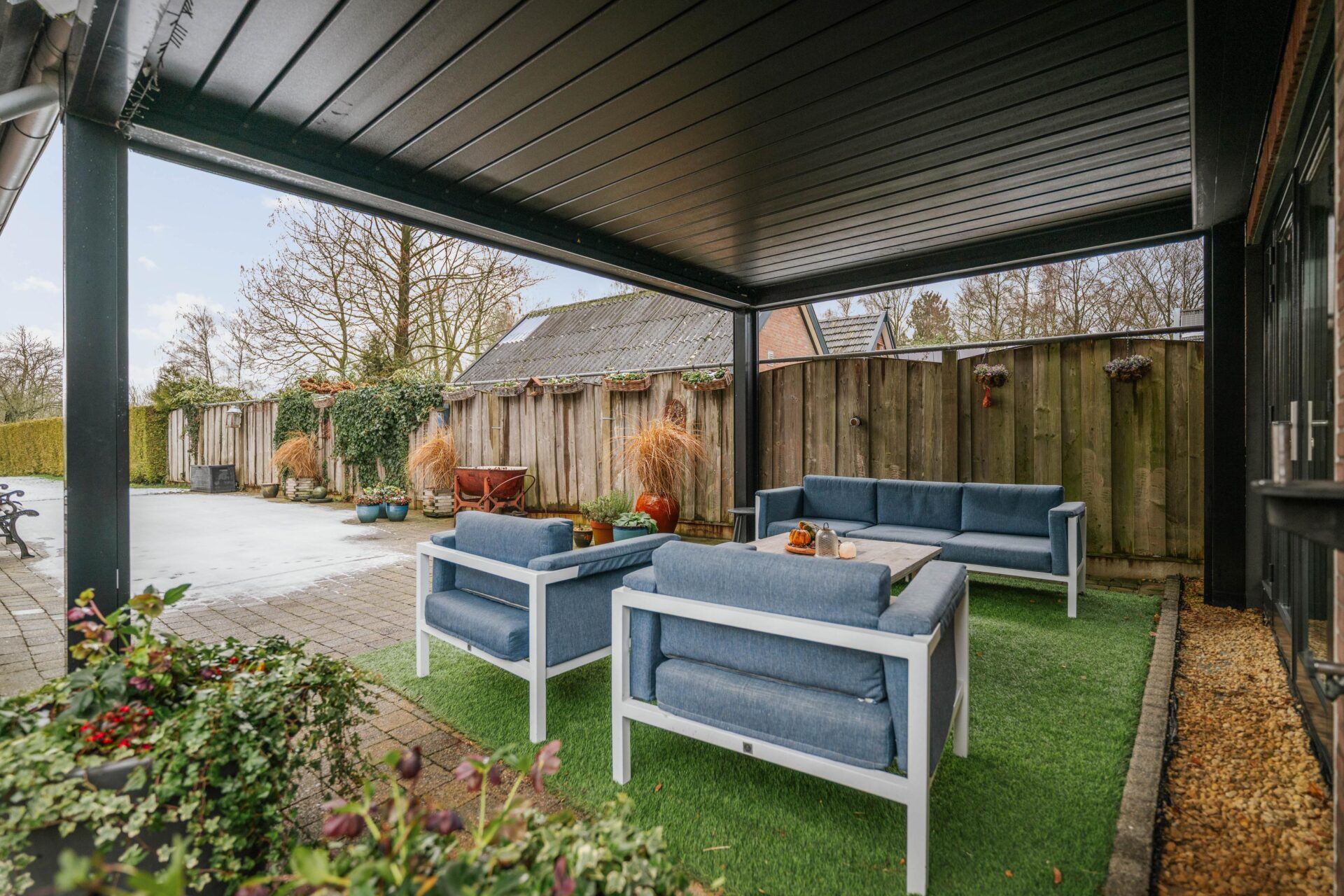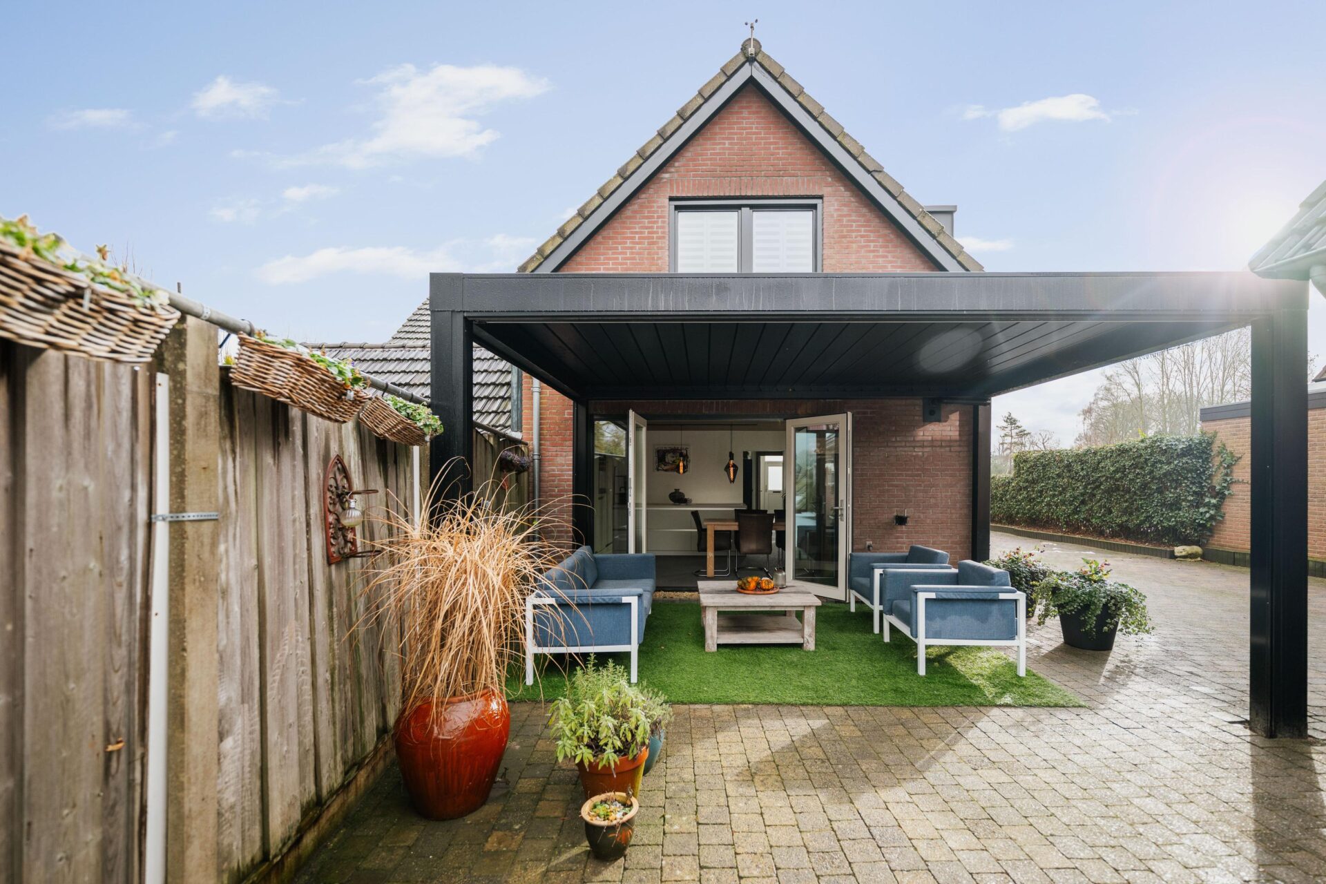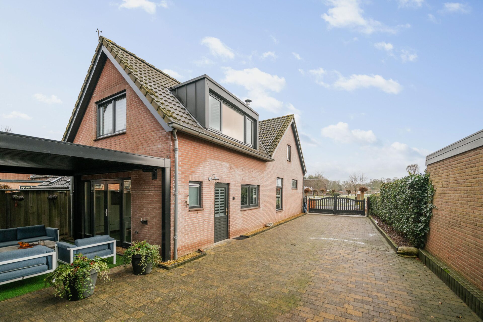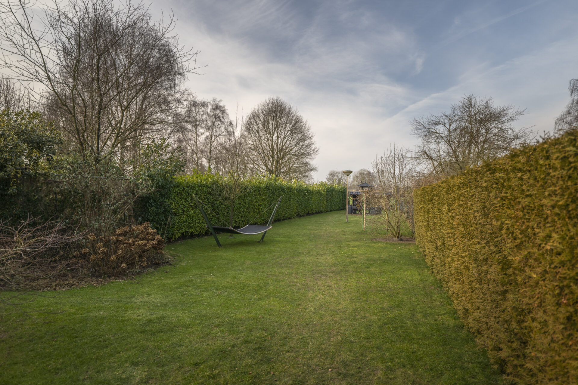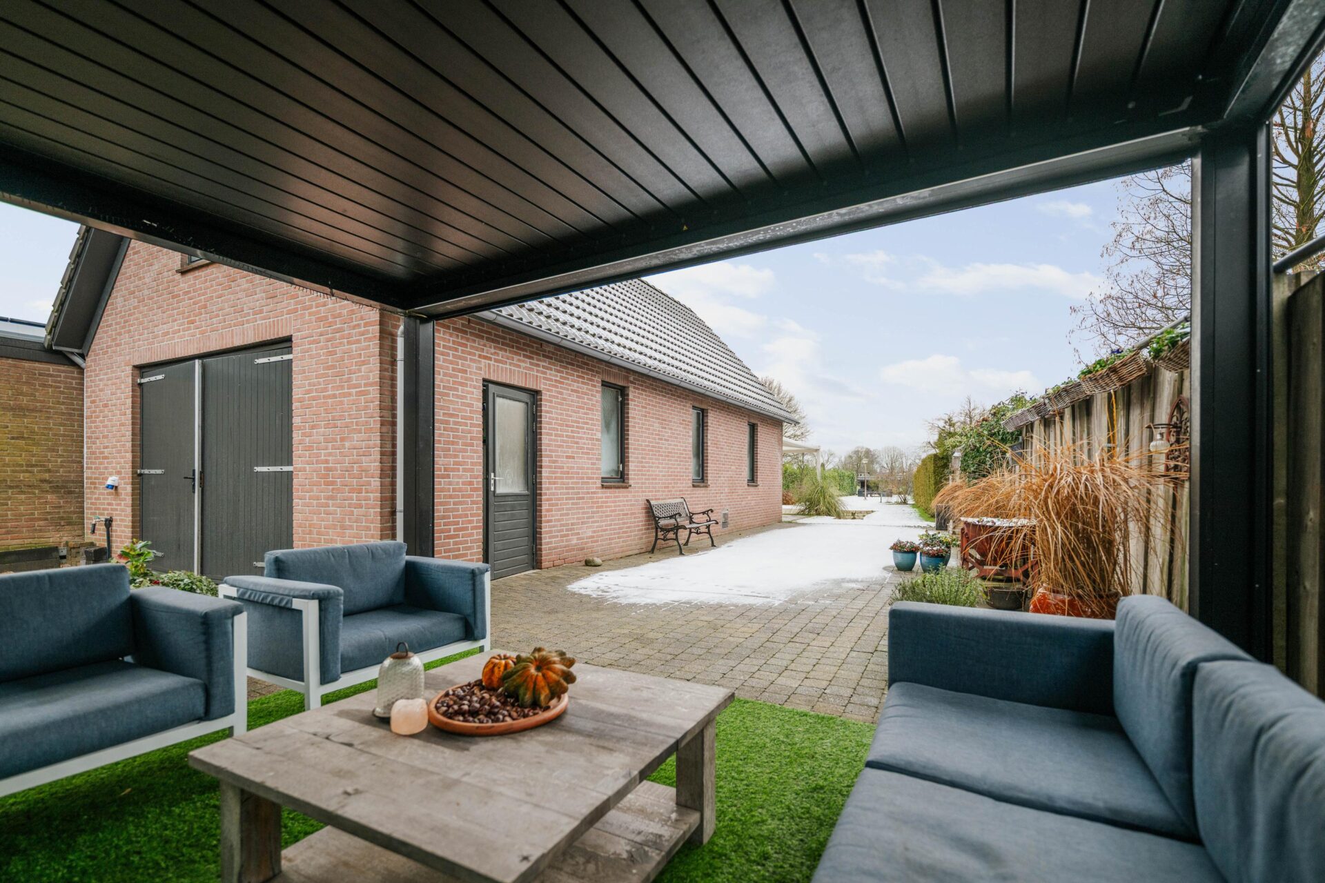 Vanuit de woonkeuken is er directe toegang tot de veranda achter de woning. Deze veranda is voorzien van screens aan 2 kanten en een lamellen dak, waardoor je hier zowel in de zon als in de schaduw heerlijk kunt zitten. De achtertuin is ruim opgezet, biedt veel privacy en gesitueerd op het westen. Een ideale ligging waardoor je op ieder moment van de dag wel een plekje in de zon kunt vinden. Achter de garage is in de tuin nog een tweede veranda gerealiseerd met een vrij uitzicht over het gazon en de zitkuil, een unieke plek om in alle rust van het buitenleven te genieten. In de tuin is een sproei-installatie aangelegd en er is een grondwaterpomp (ter overname) aanwezig. Ook vindt je op diverse plekken elektrapunten.