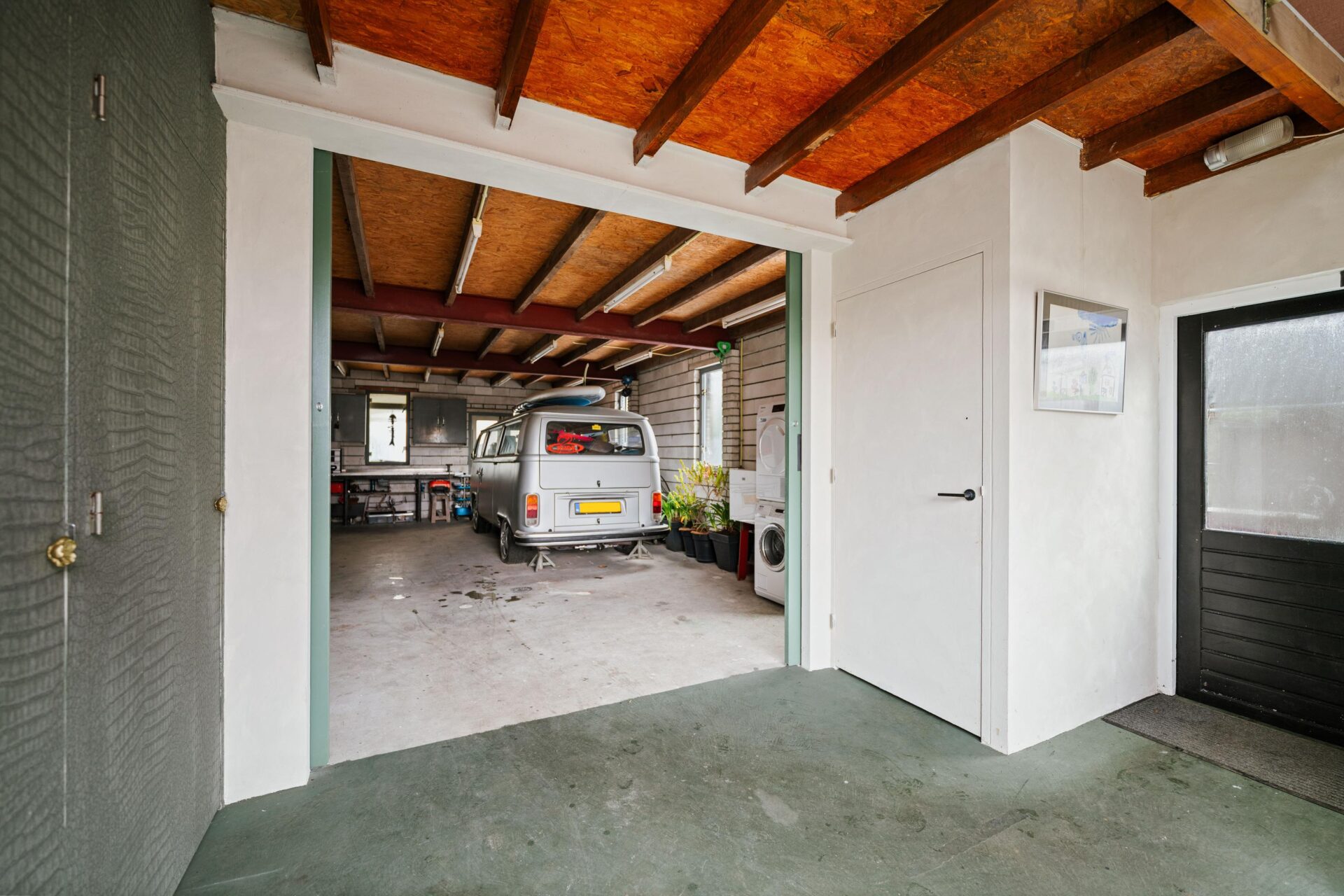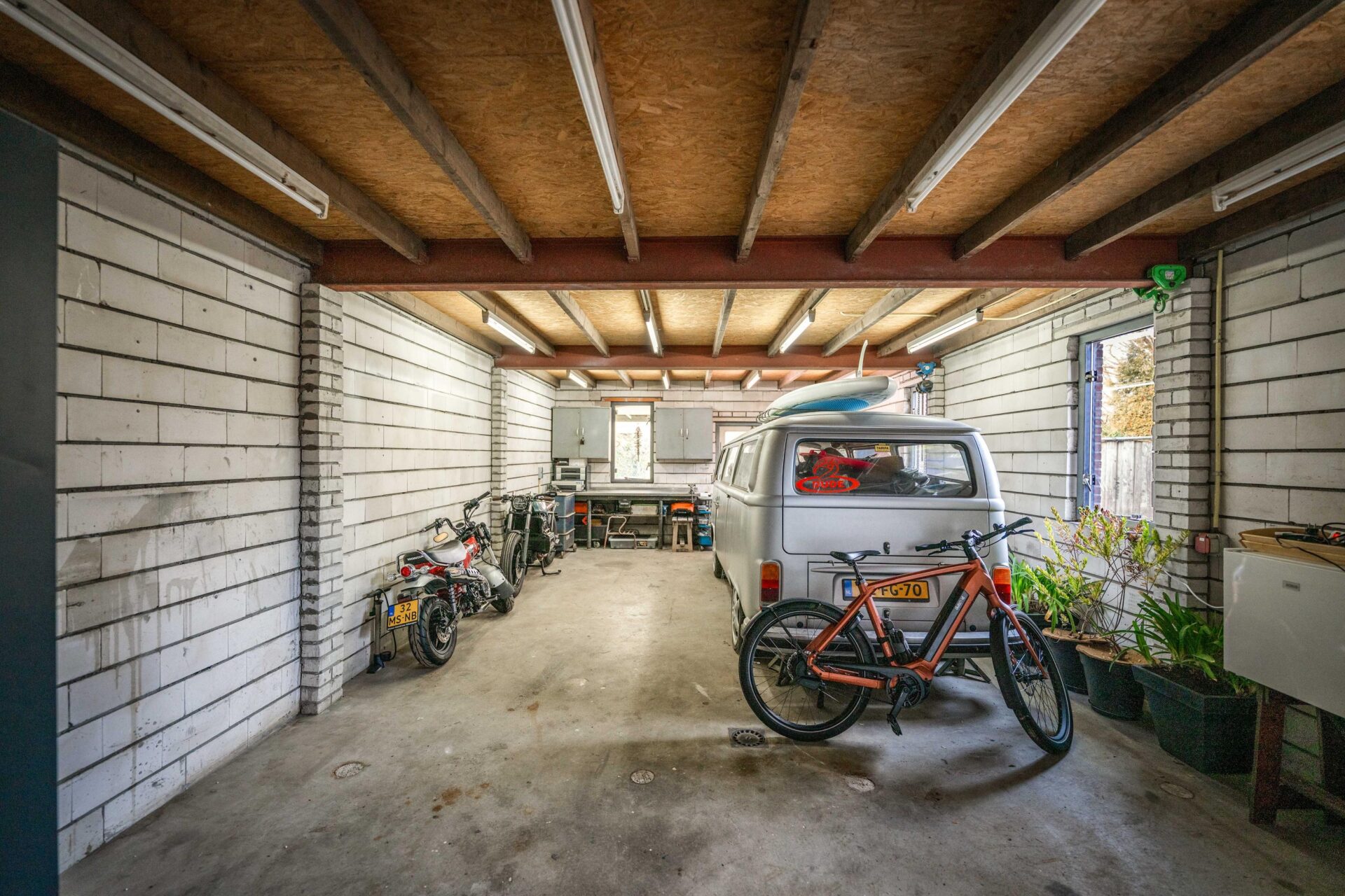 Op het perceel staat een grote, vrijstaande stenen garage die voorzien is van gevel- en dakisolatie. Een ruimte die veel verschillende mogelijkheden biedt! Met een oppervlakte van in totaal 89 m² verdeeld over twee verdiepingen kun je hier alle kanten nog mee op. Momenteel is de begane grond in gebruik als garage en hobbyruimte, ook is er hier een toilet aanwezig. De verdieping boven de garage is ingericht als multifunctionele ruimte en leent zich uitstekend voor een praktijk aan huis, kantoorruimte of hobbyruimte. De oprit biedt ruimte voor het plaatsen van meerdere auto's, ook is er de mogelijkheid om een laadpaal te plaatsen.