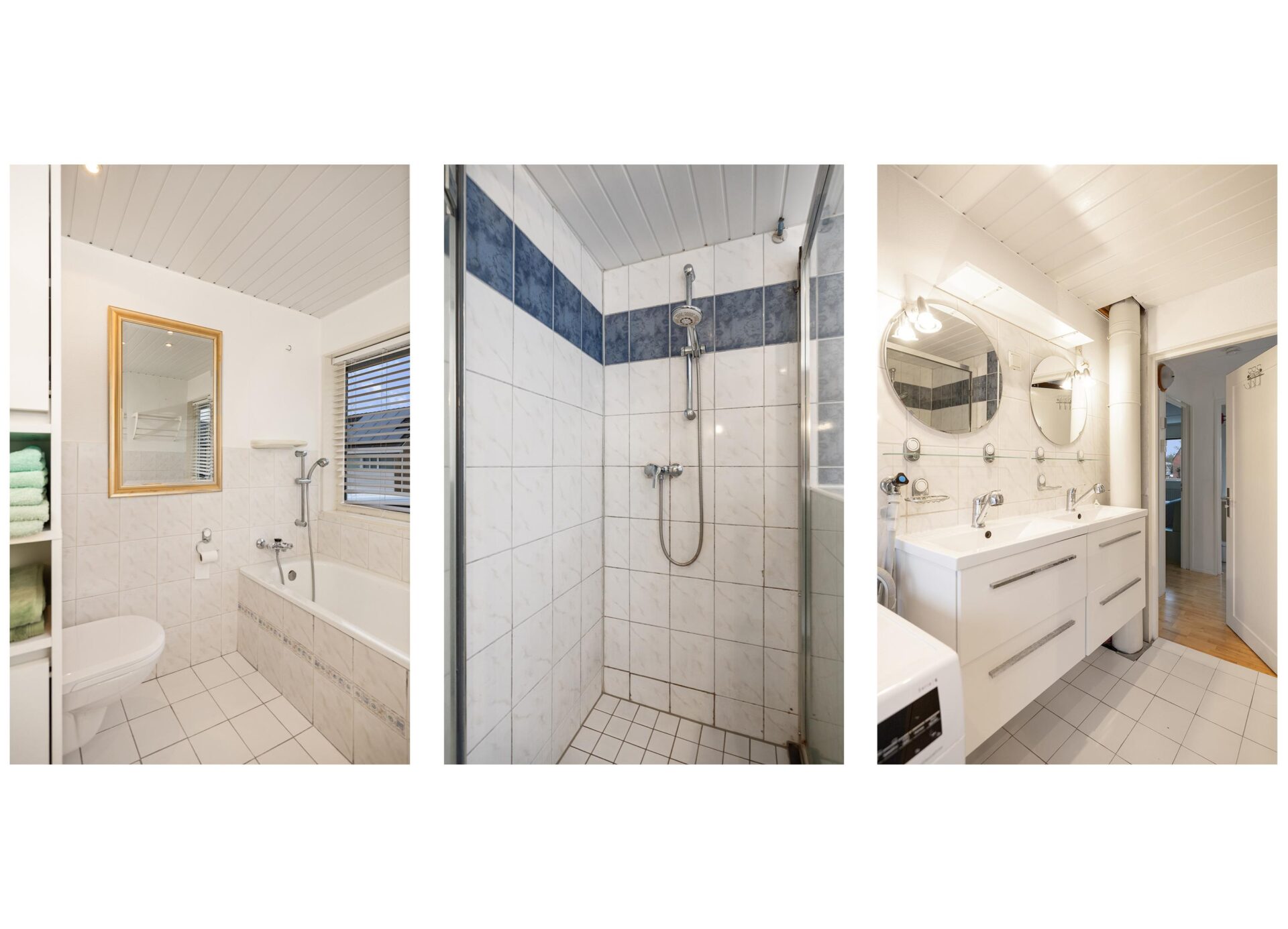 Op de verdieping geeft de overloop toegang tot drie slaapkamers en een badkamer. Deze slaapkamers zijn alle drie ruim te noemen. De badkamer is voorzien van een ligbad, toilet, douche, wastafelmeubel en wasmachineaansluiting.