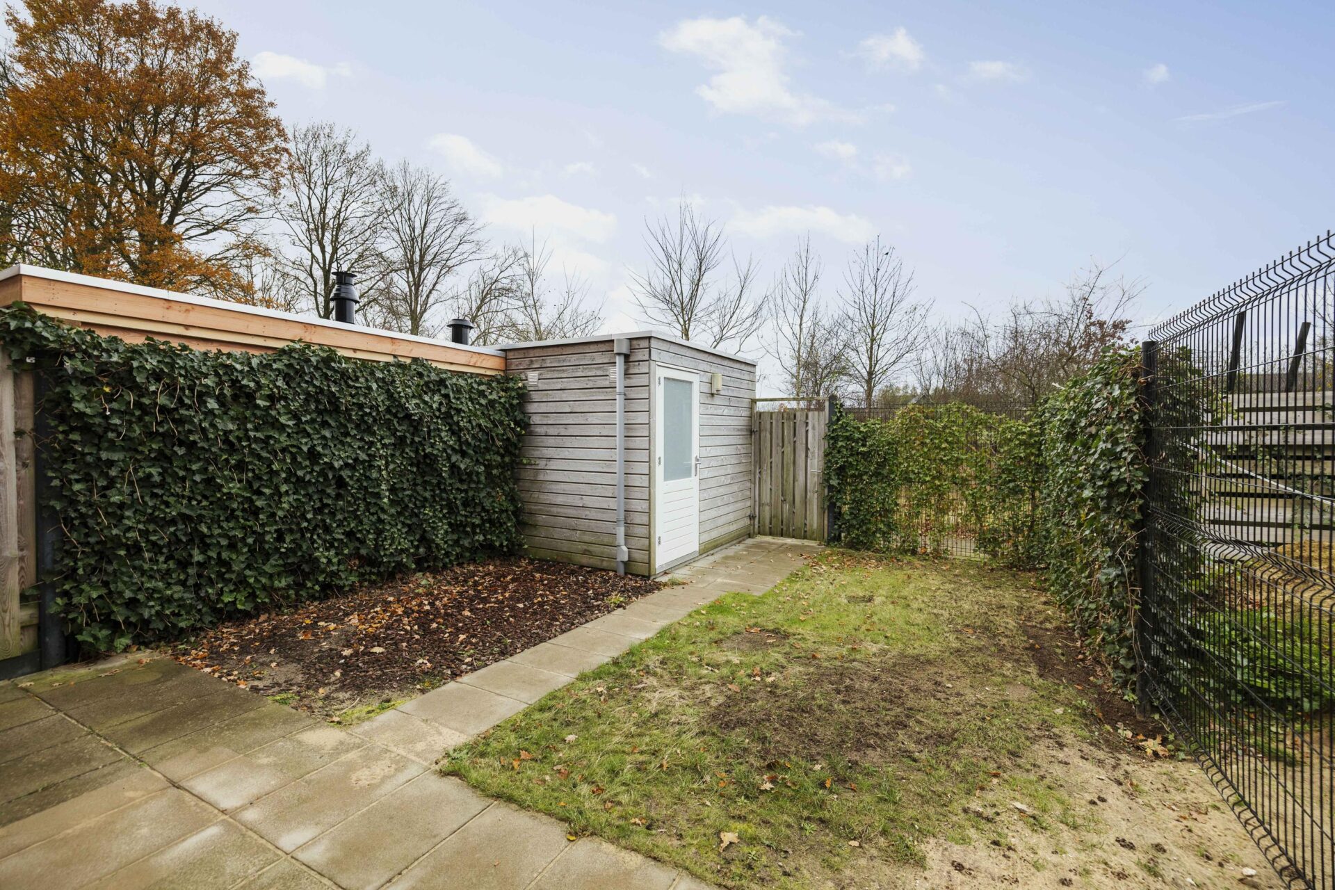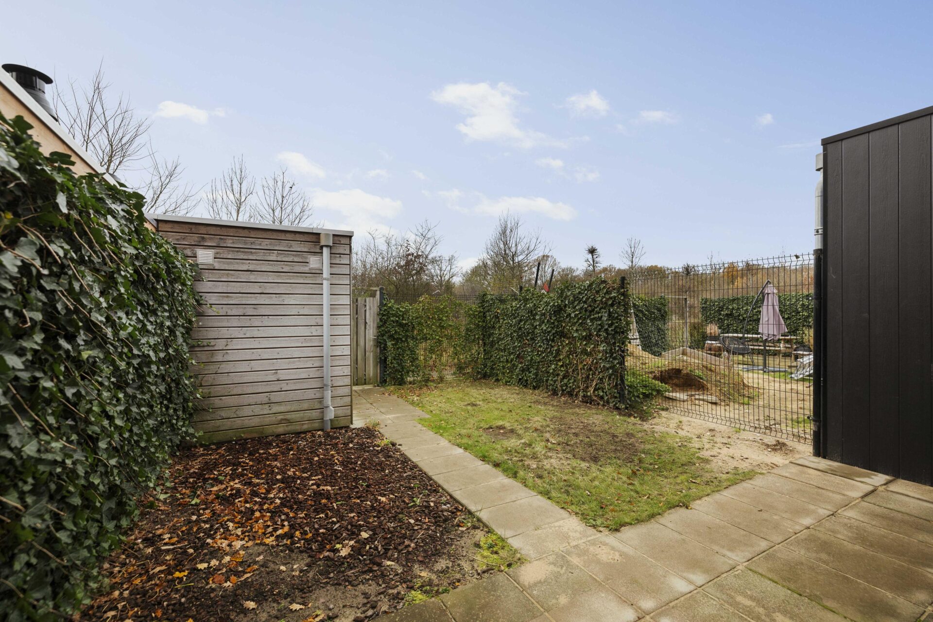 De achtertuin is gelegen op het westen, waardoor je hier kunt genieten van de middag- en avondzon. Direct achter de woning bevindt zich een terras. Een heerlijke plek om na een werkdag te ontspannen of om gezellig buiten te eten. Verder beschikt de tuin over een houten berging voor fietsen en tuinspullen en is er een praktische achterom aanwezig. Het perceel heeft een oppervlakte van 140 m².