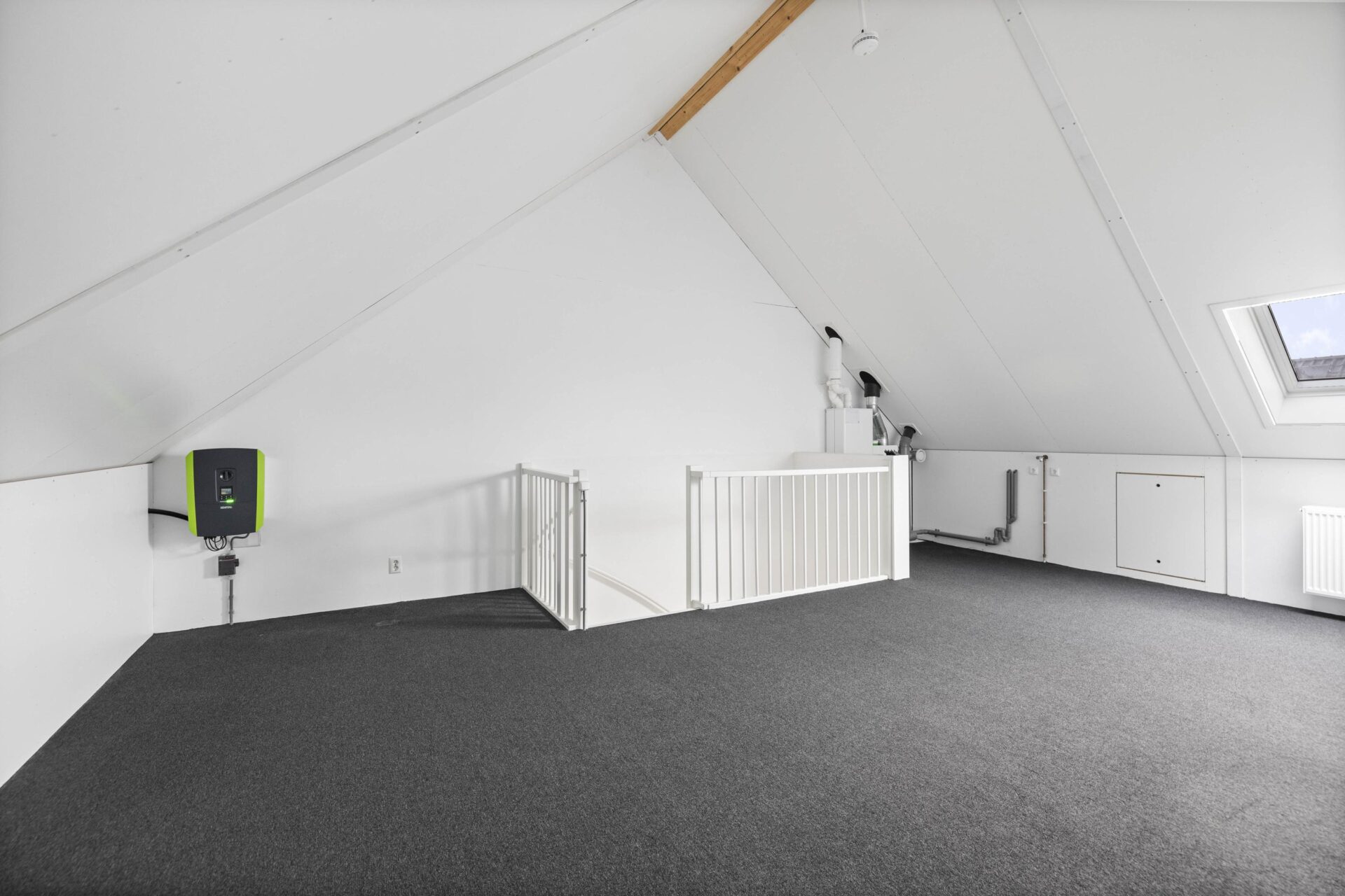 Op de tweede verdieping is een royale zolderverdieping die nog naar eigen wens ingericht kan worden. Hier kan met gemak een extra slaapkamer gerealiseerd worden. Tevens zijn op deze verdieping de aansluitingen voor de wasmachine en droger te vinden. Ook is hier de C.V.-ketel opgesteld.