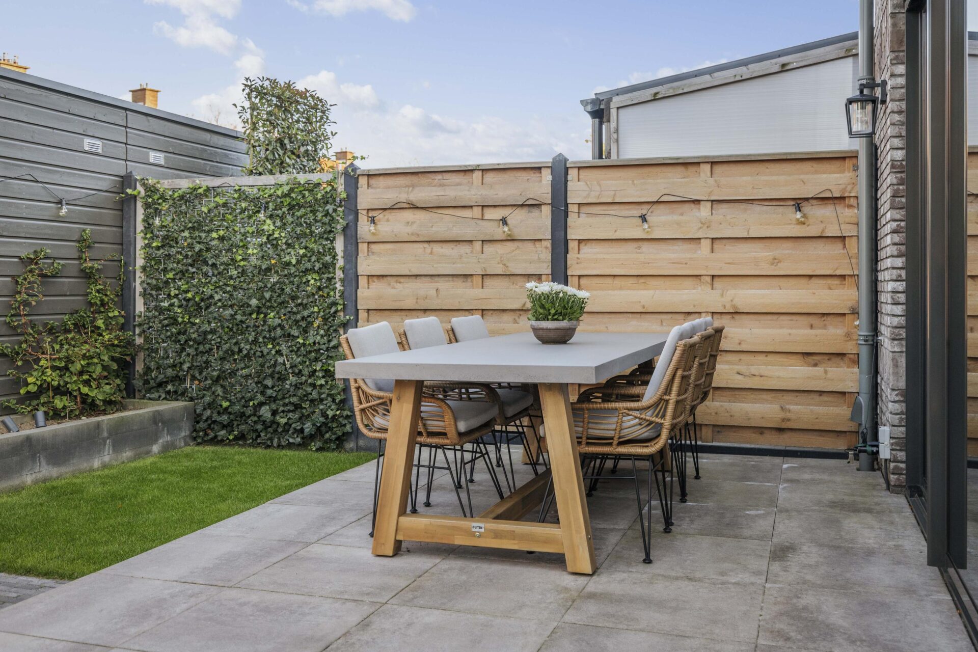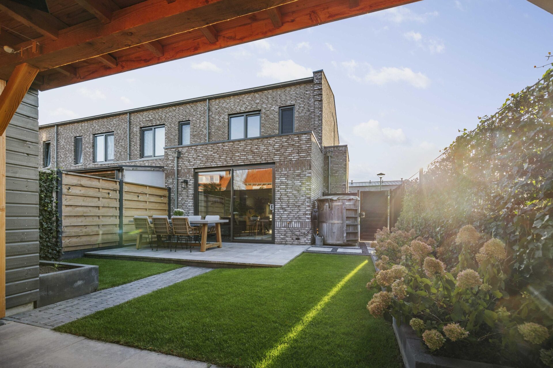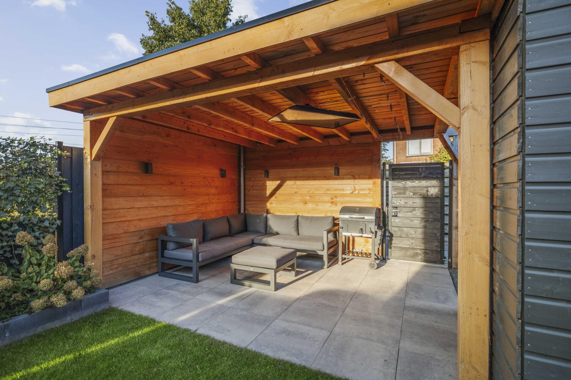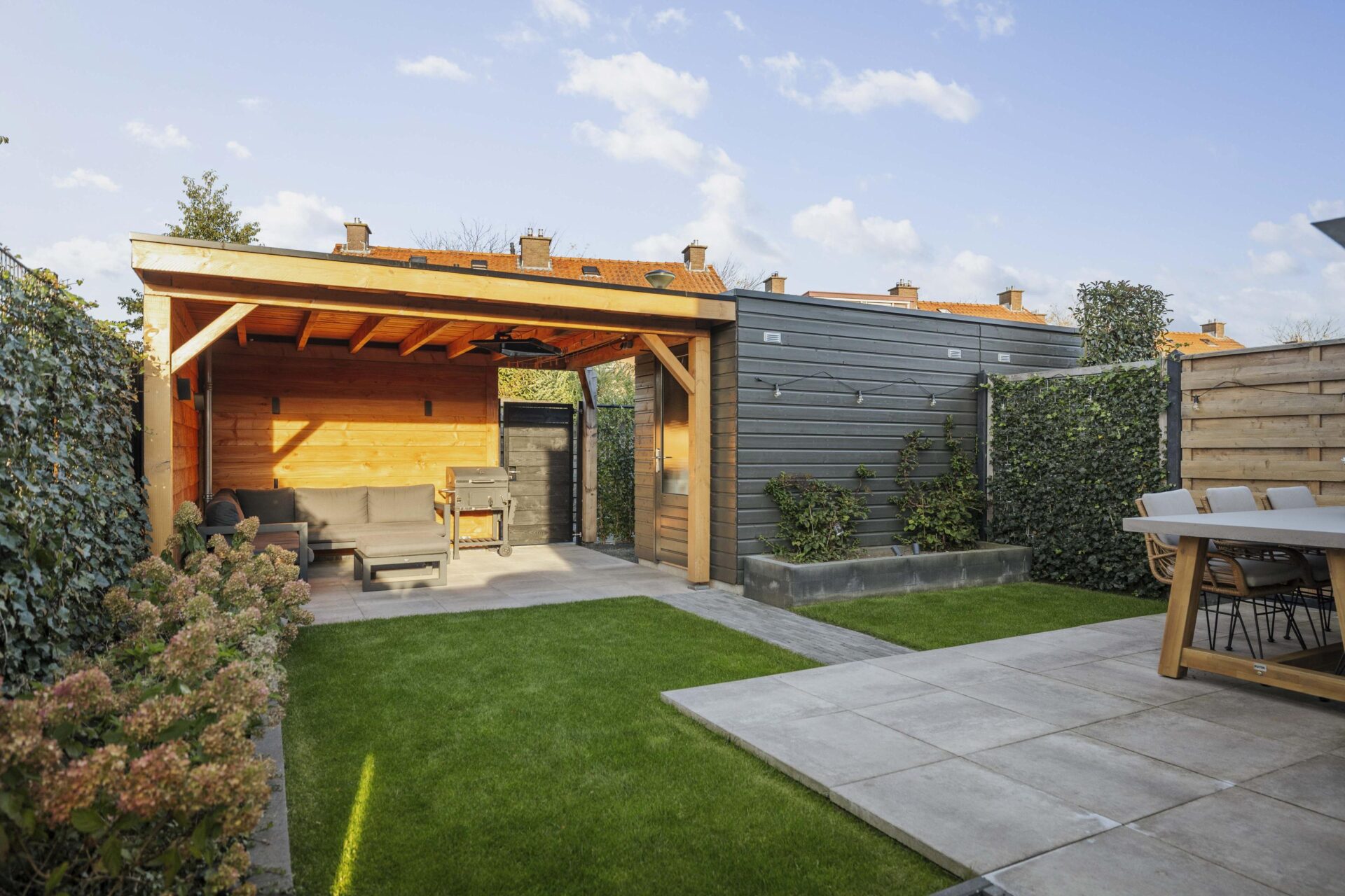 De achtertuin ligt op het noordoosten, is netjes aangelegd en beschikt over een groot terras achter de woning. Dankzij de overkapping is er ook nog een heerlijke plek gerealiseerd om tot in de avond van de zon te genieten. Verder is er een vrijstaande houten berging en een achterom aanwezig.