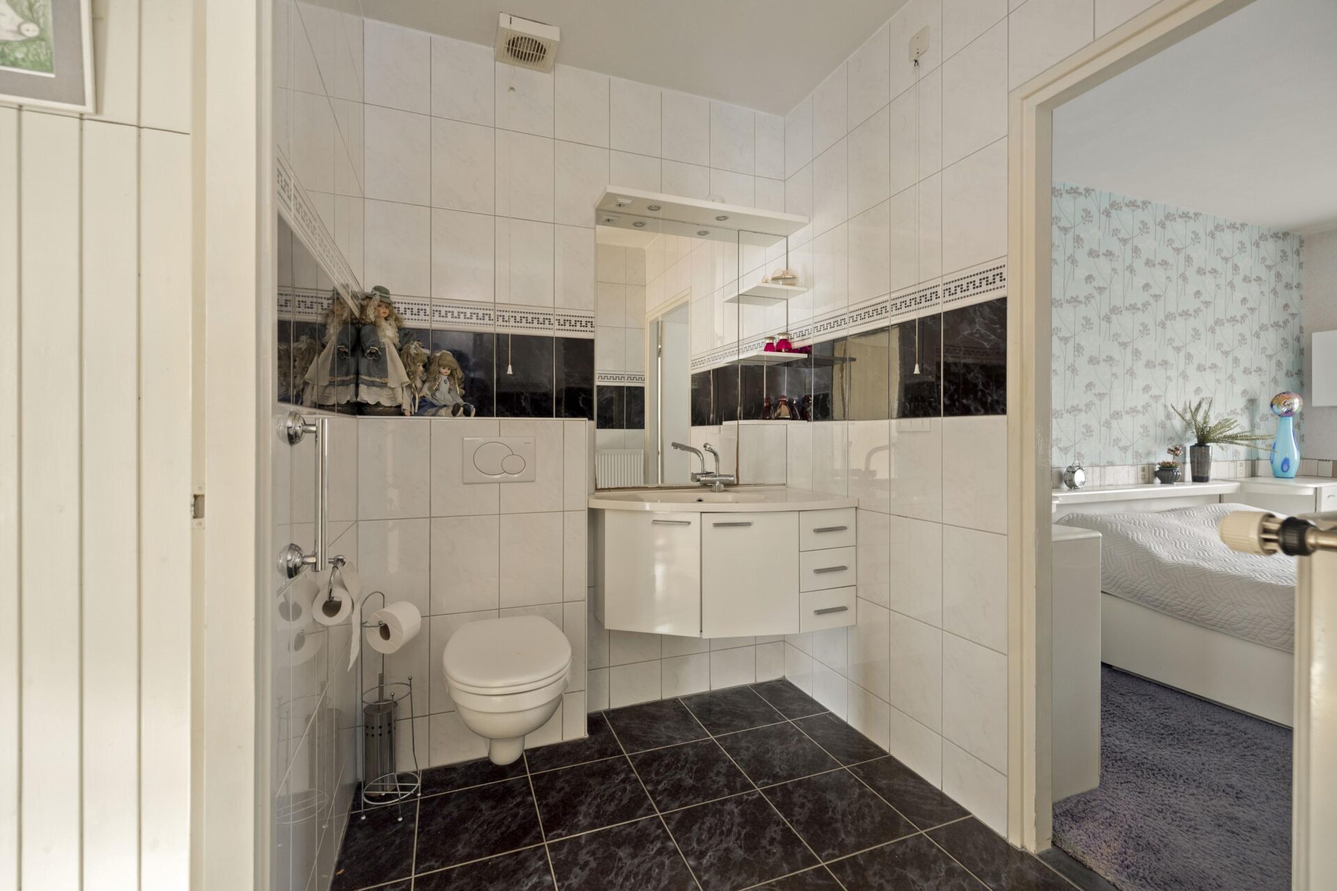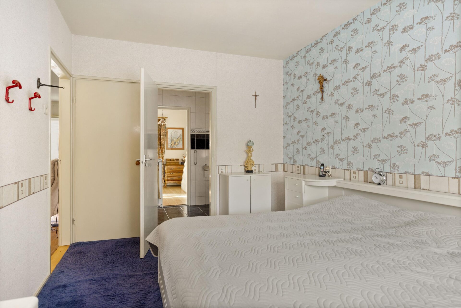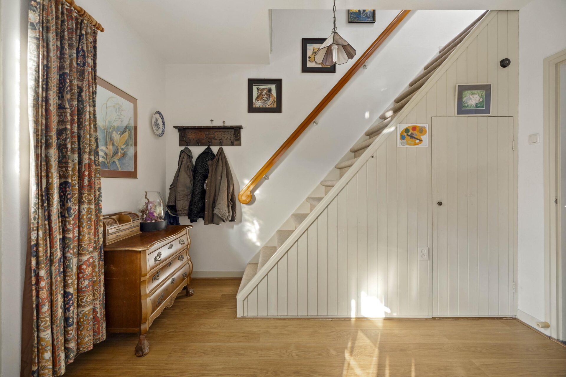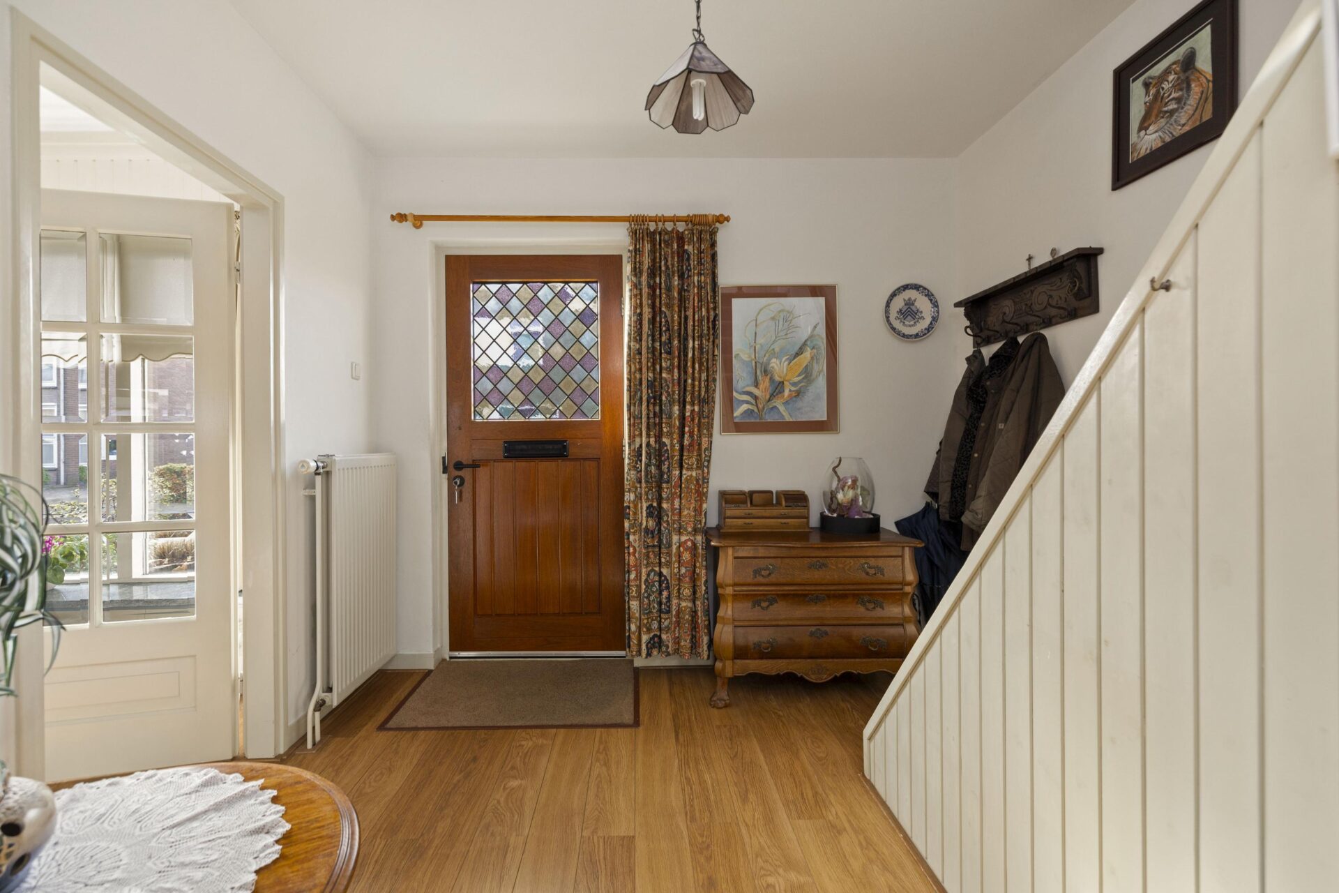 Door de woning heen.