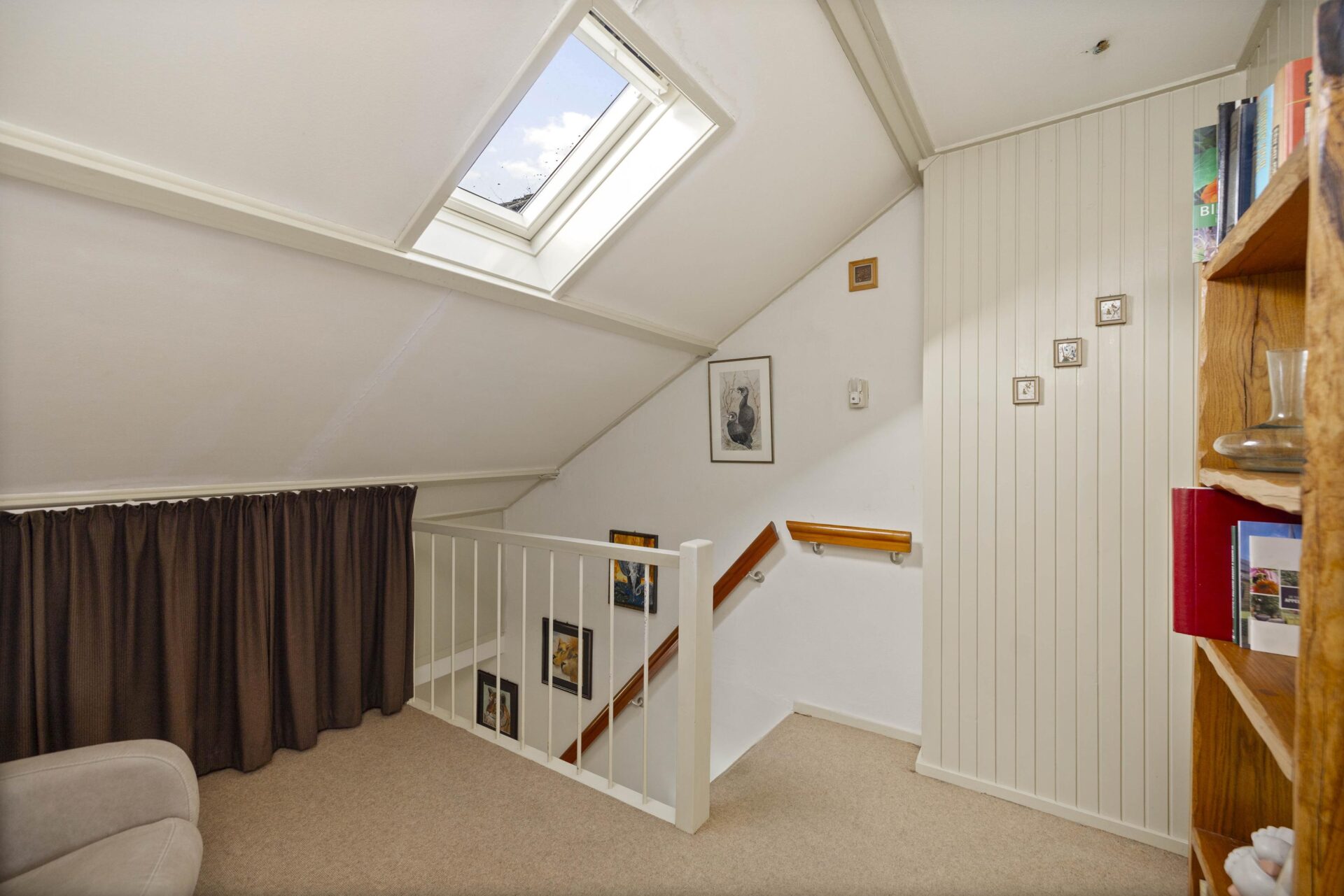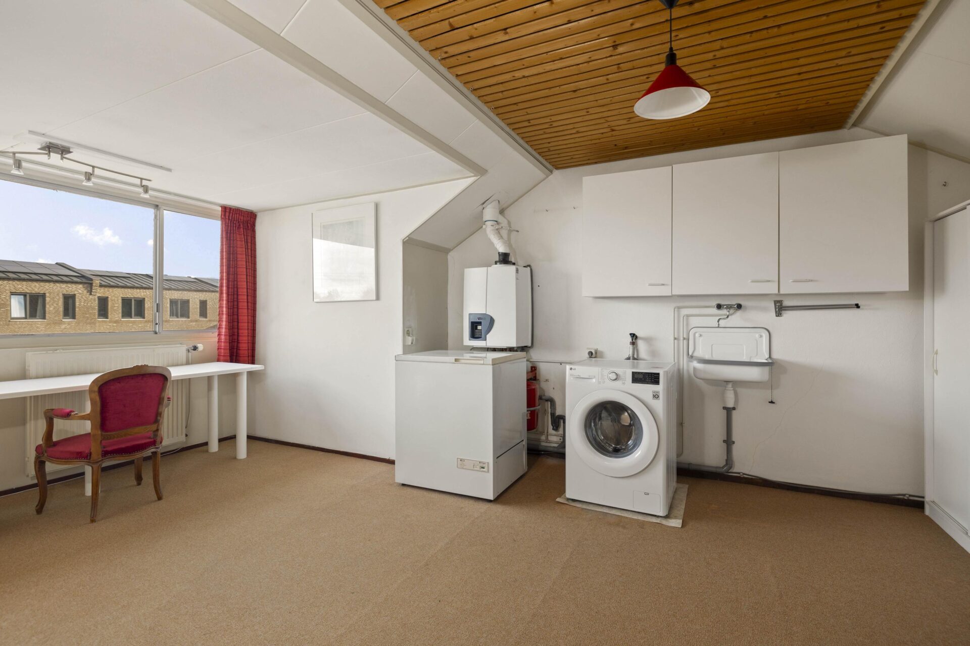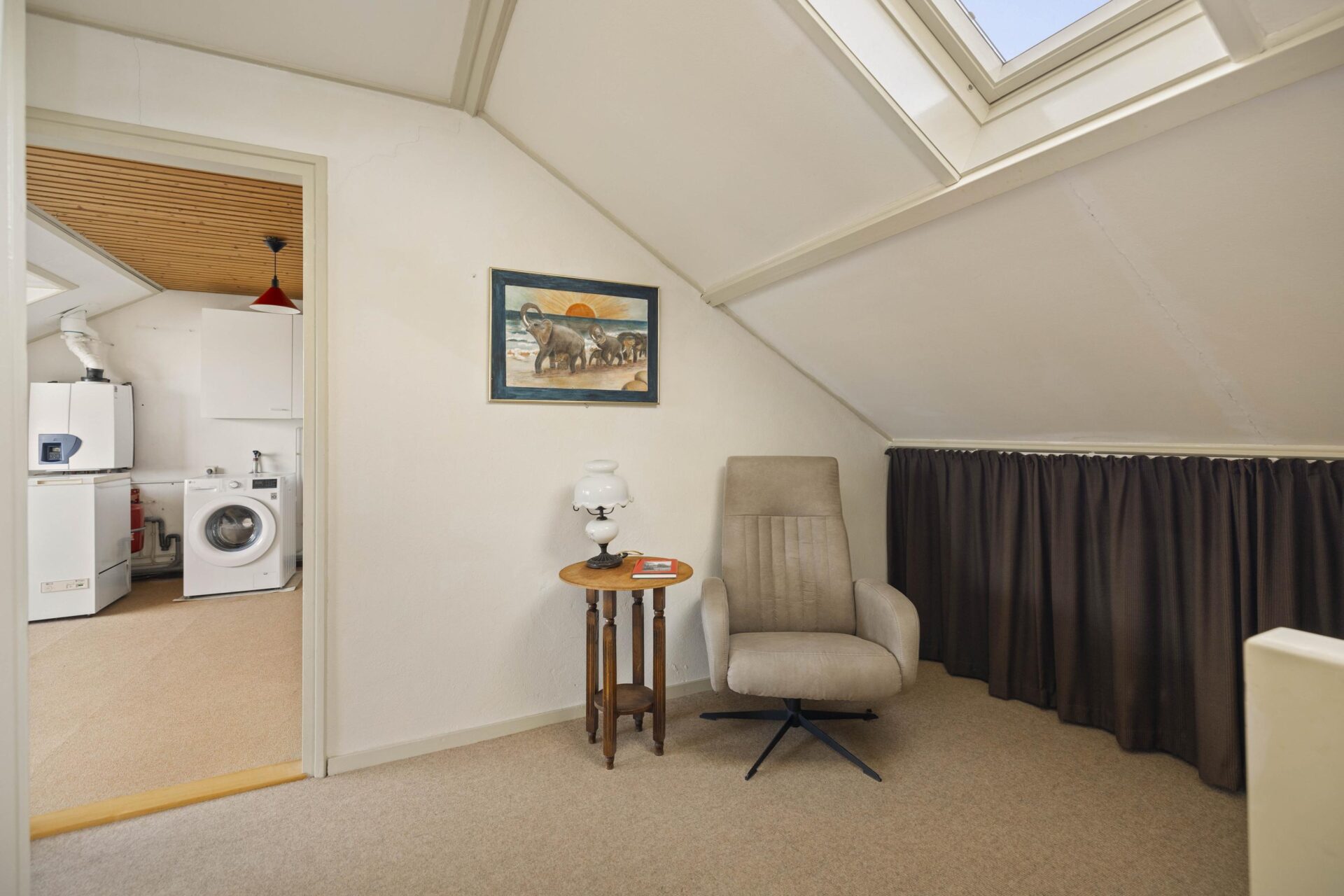 Op de eerste verdieping geeft de overloop toegang tot twee slaapkamers. Door de dakkapel op de achterzijde van de woning zijn de slaapkamers van een goed formaat. De grote slaapkamer is voorzien van de c.v.-aansluiting en wasmachine aansluiting. Er is bergruimte gecreëerd onder de schuine kap.