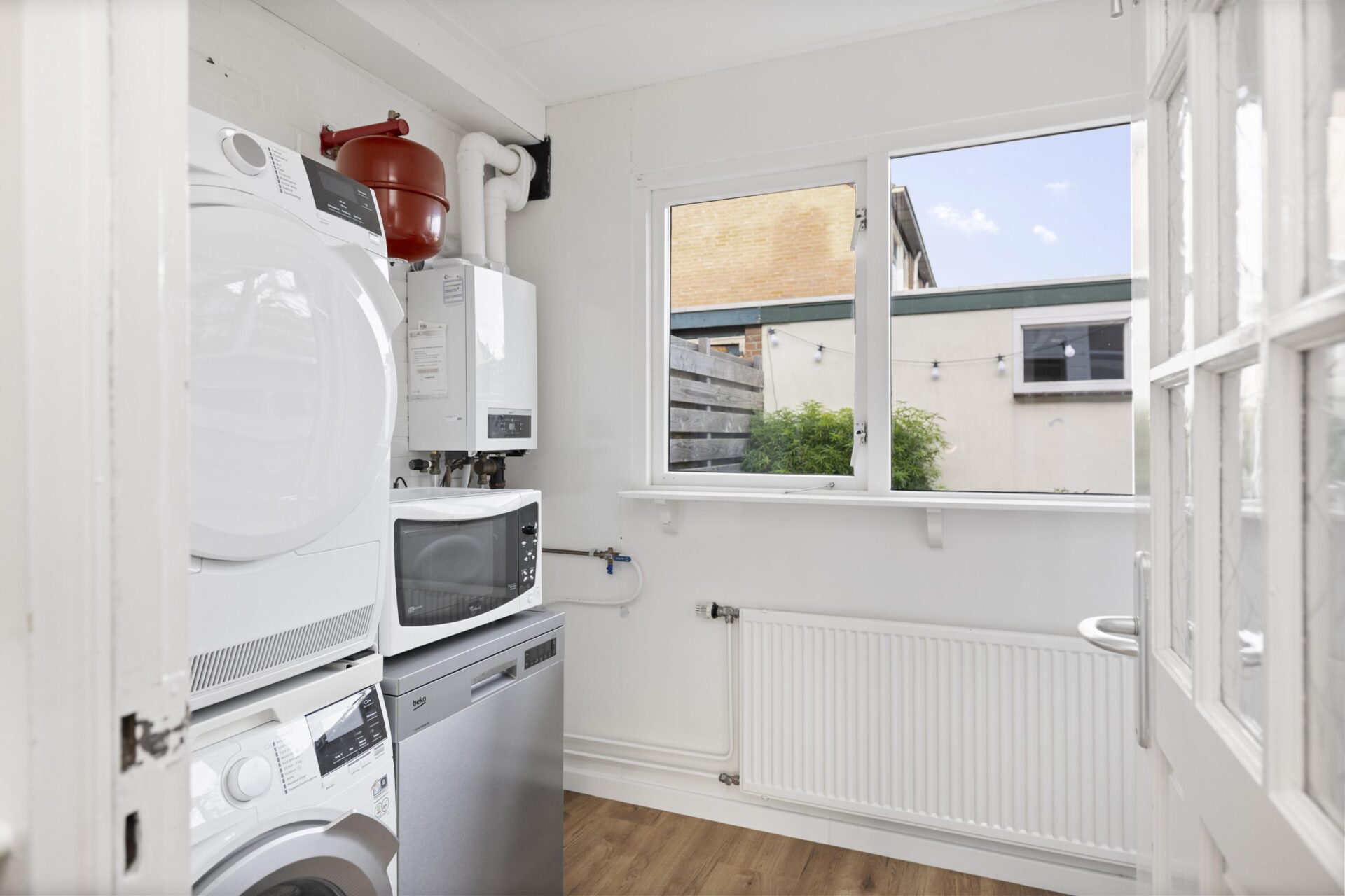 Het geheel is gelegen op een perceel van totaal 119 m² en de achtertuin ligt op het noordwesten. De besloten, onderhoudsvriendelijke achtertuin is voorzien van een fijn terras en er is een vrijstaande stenen schuur en achterom.