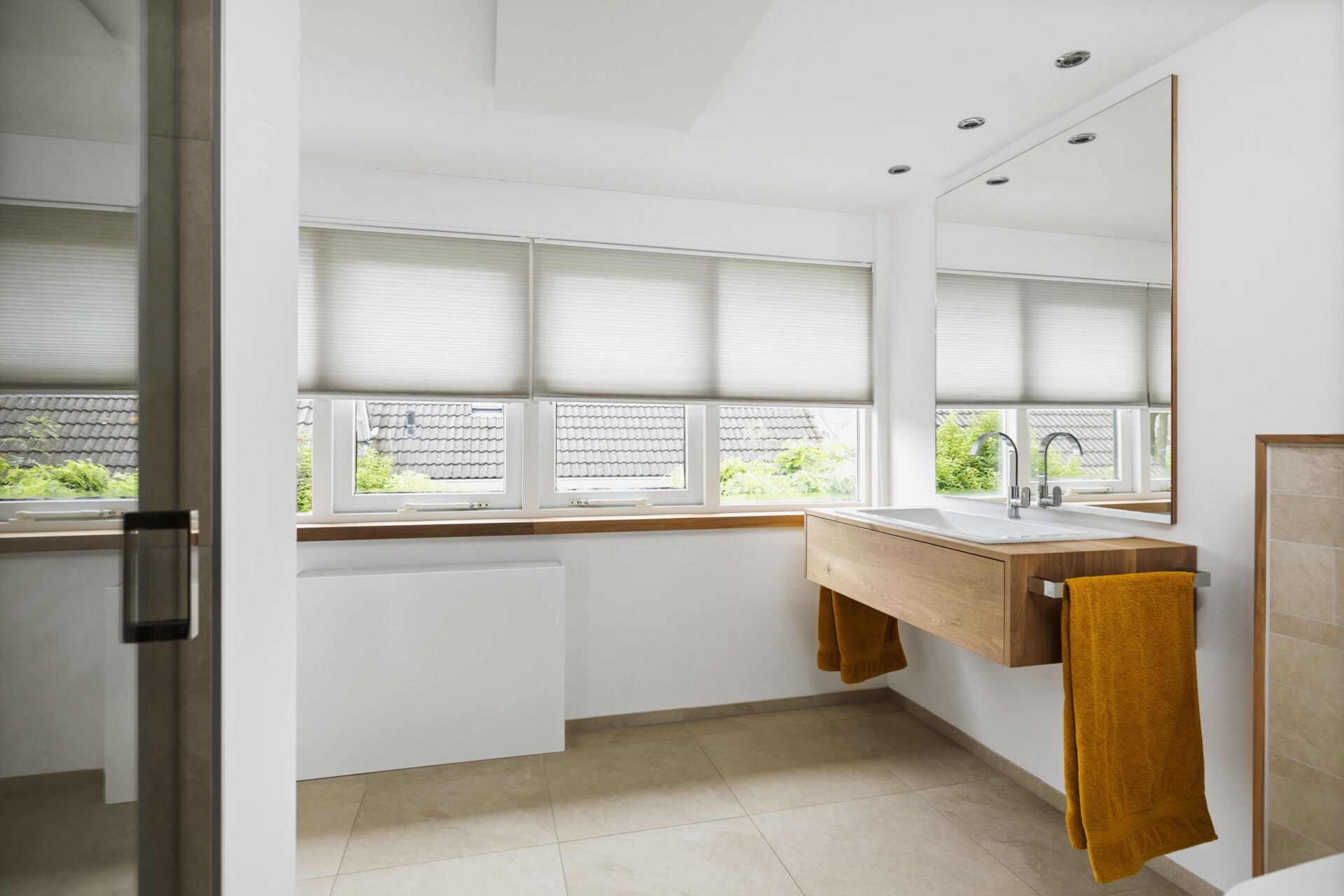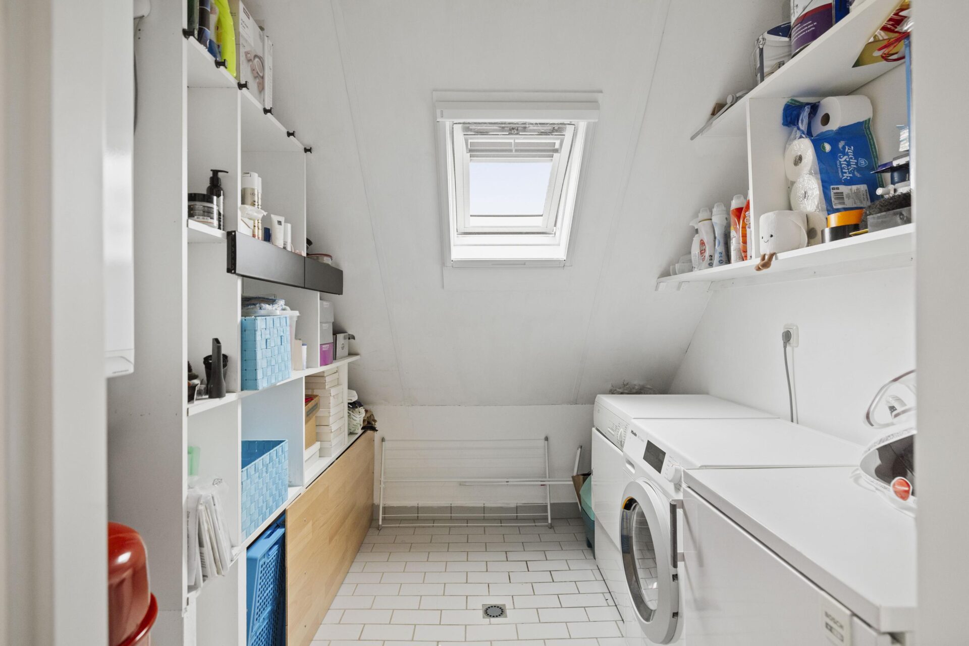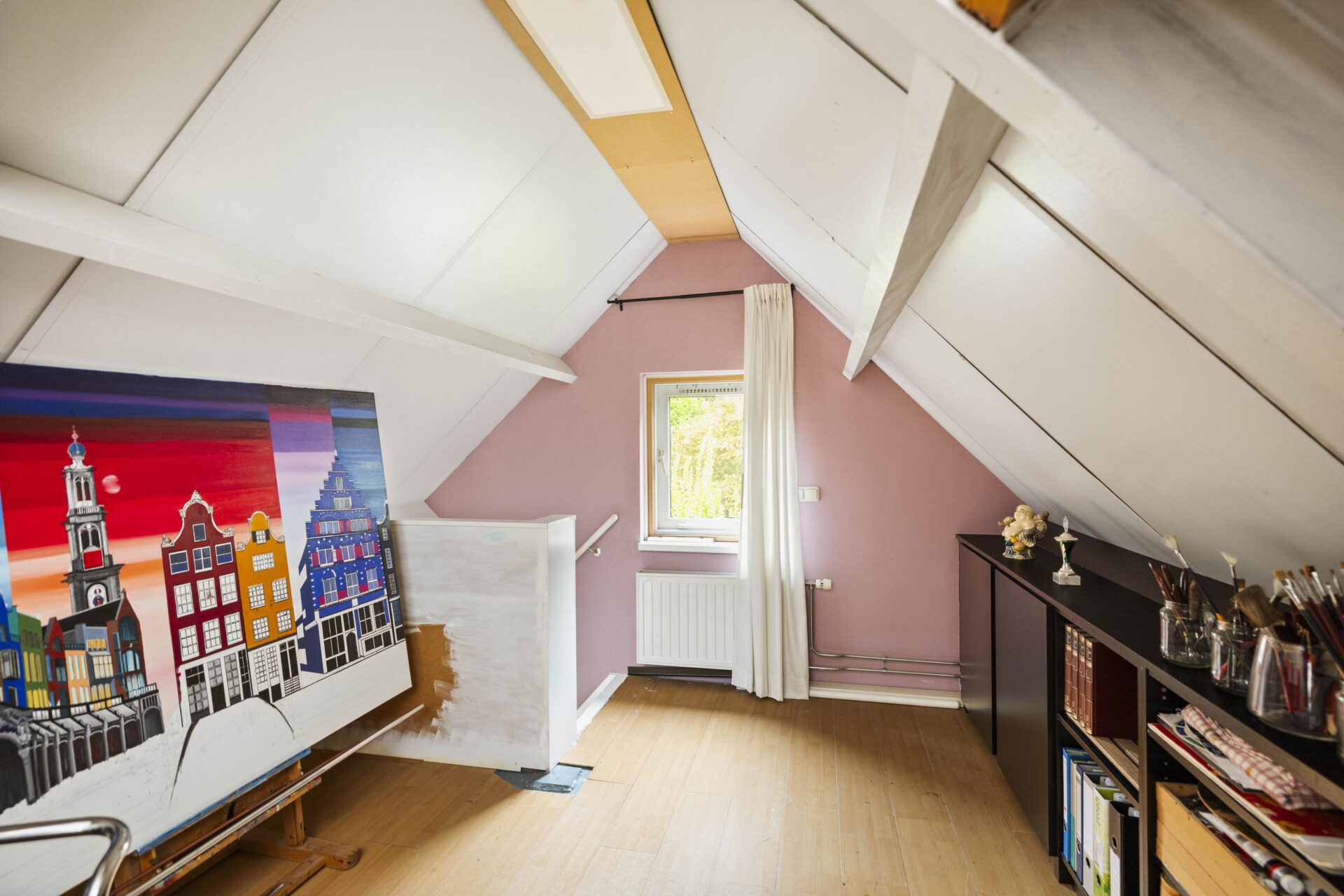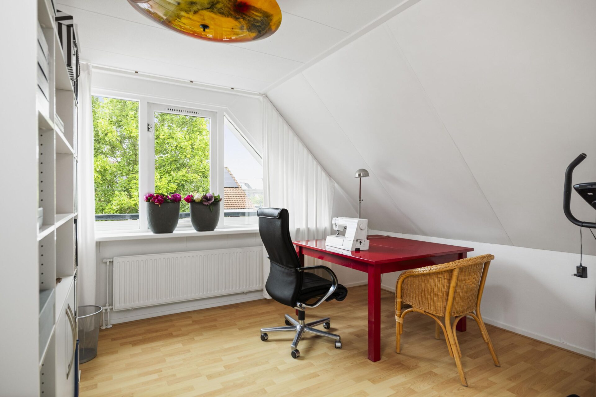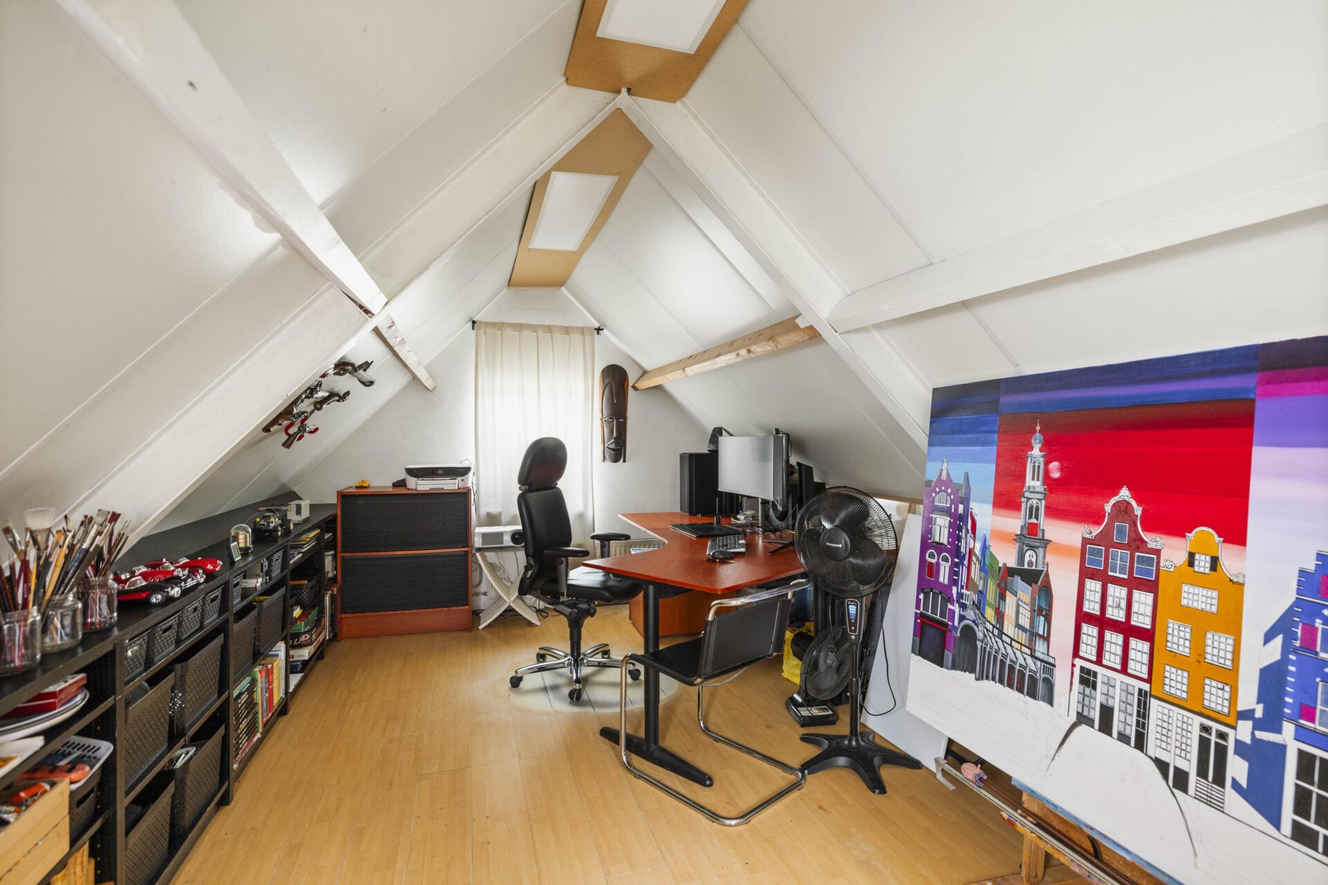 Op de eerste verdieping geeft de overloop toegang tot drie slaapkamers, badkamer en een wasruimte. Er zijn twee slaapkamers aan de voorzijde, beide van een prima formaat en waarvan 1 met toegang tot de loggia. Aan de achterzijde ligt de royale ouderslaapkamer met kastenwand. De badkamer is voorzien van een dakkapel, ruime inloopdouche met infrarood warmtepaneel, badkamermeubel en toilet. In de praktische wasruimte staat de wasmachine- en droger en de opstelling C.V. Op de overloop is een luik met trap naar de zolderverdieping met veel bergruimte.