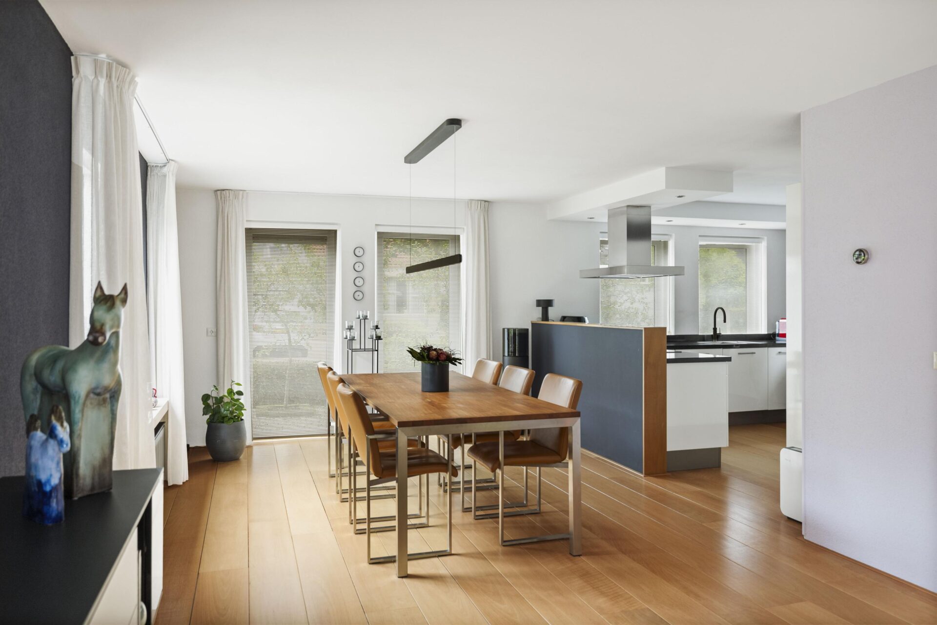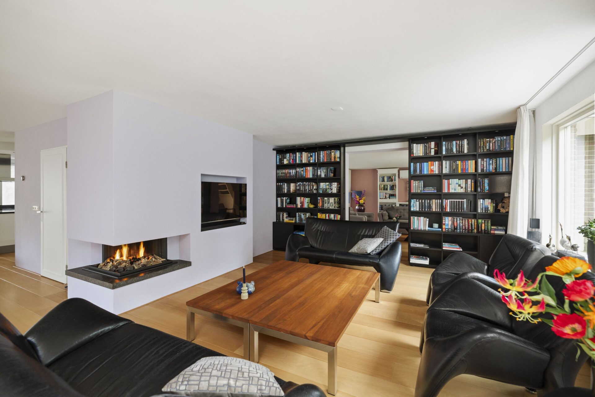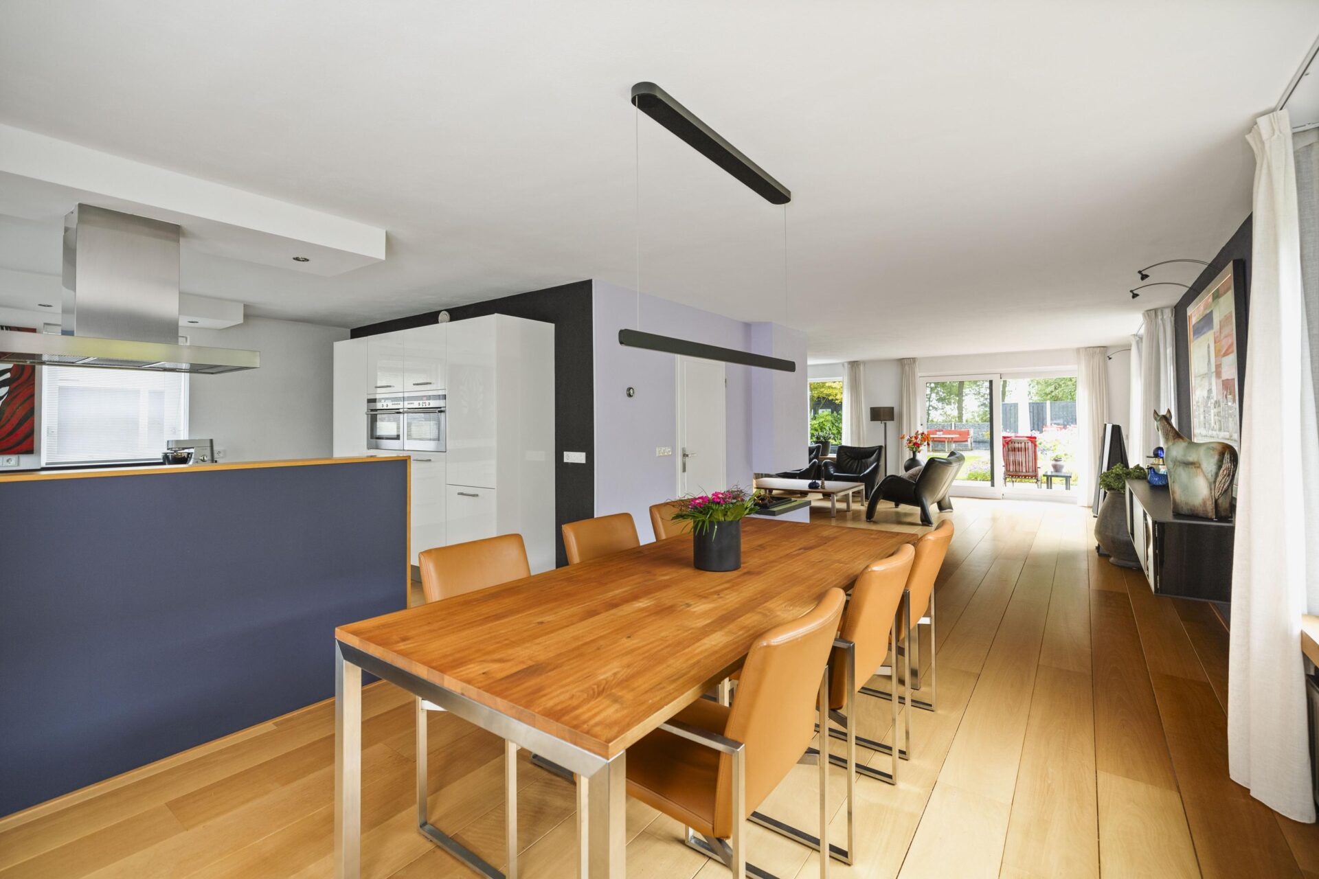 We komen binnen in de ruime hal met trapopgang, toilet en meterkast. De royale woonkamer heeft door de vele ramen een prettige lichtinval. Aan de achterzijde is het zithoekgedeelte met een fijn uitzicht op de tuin, sfeervolle gashaard en schuifpui naar het terras. Aan de voorzijde is het eethoekgedeelte met aansluitend de halfopen keuken voorzien van Quooker, inductiekookplaat met 6 zones en inbouwapparatuur. Vanuit de hal en de woonkamer is er toegang tot de tuinkamer welke gerealiseerd is in de voormalige garage. Een multifunctionele ruimte met schuifpui naar het terras en een vaste trap naar de zolderverdieping die momenteel in gebruik is als atelier/werkkamer.