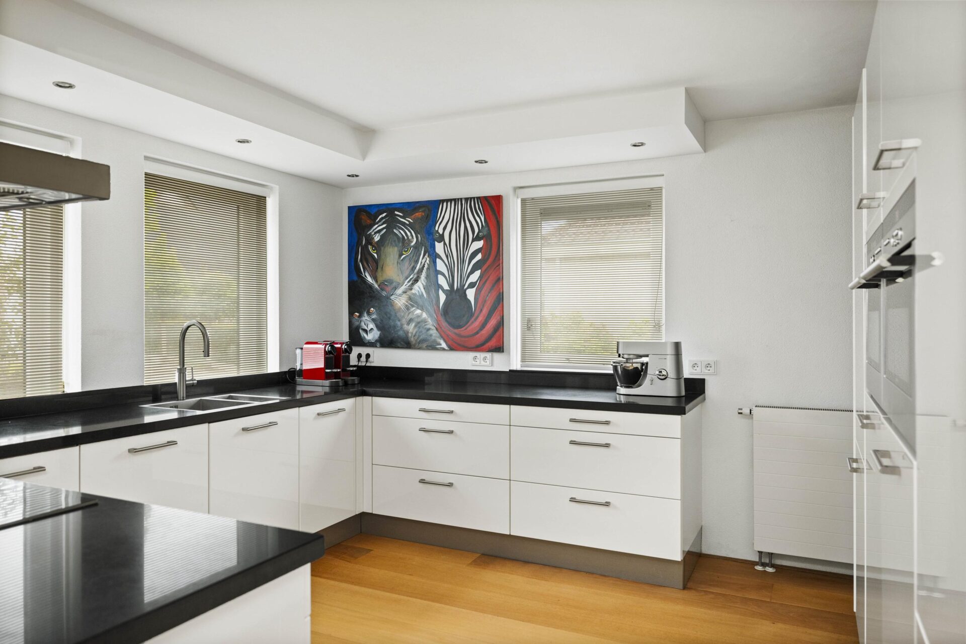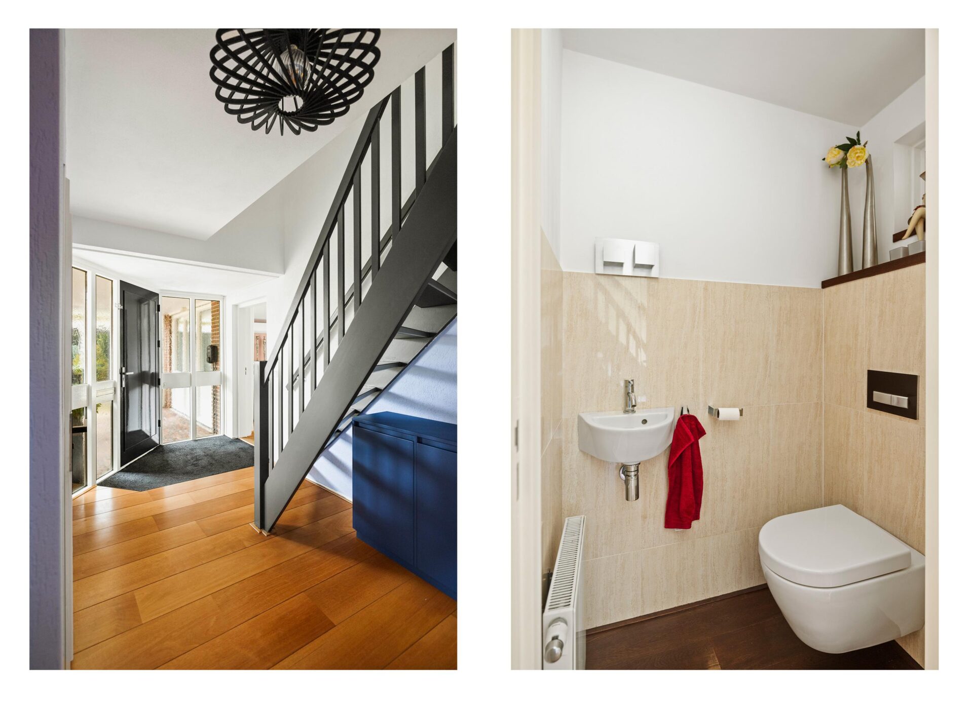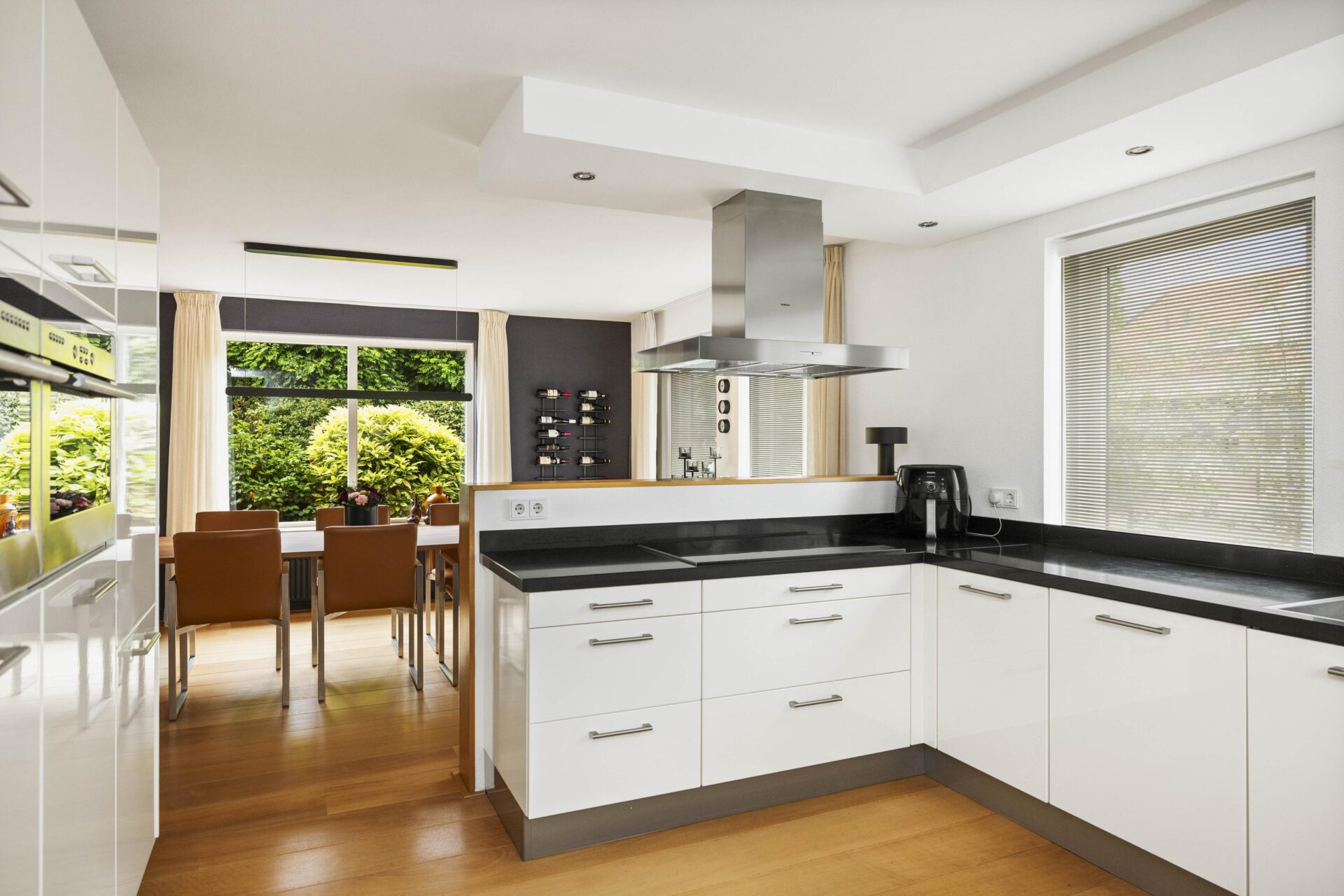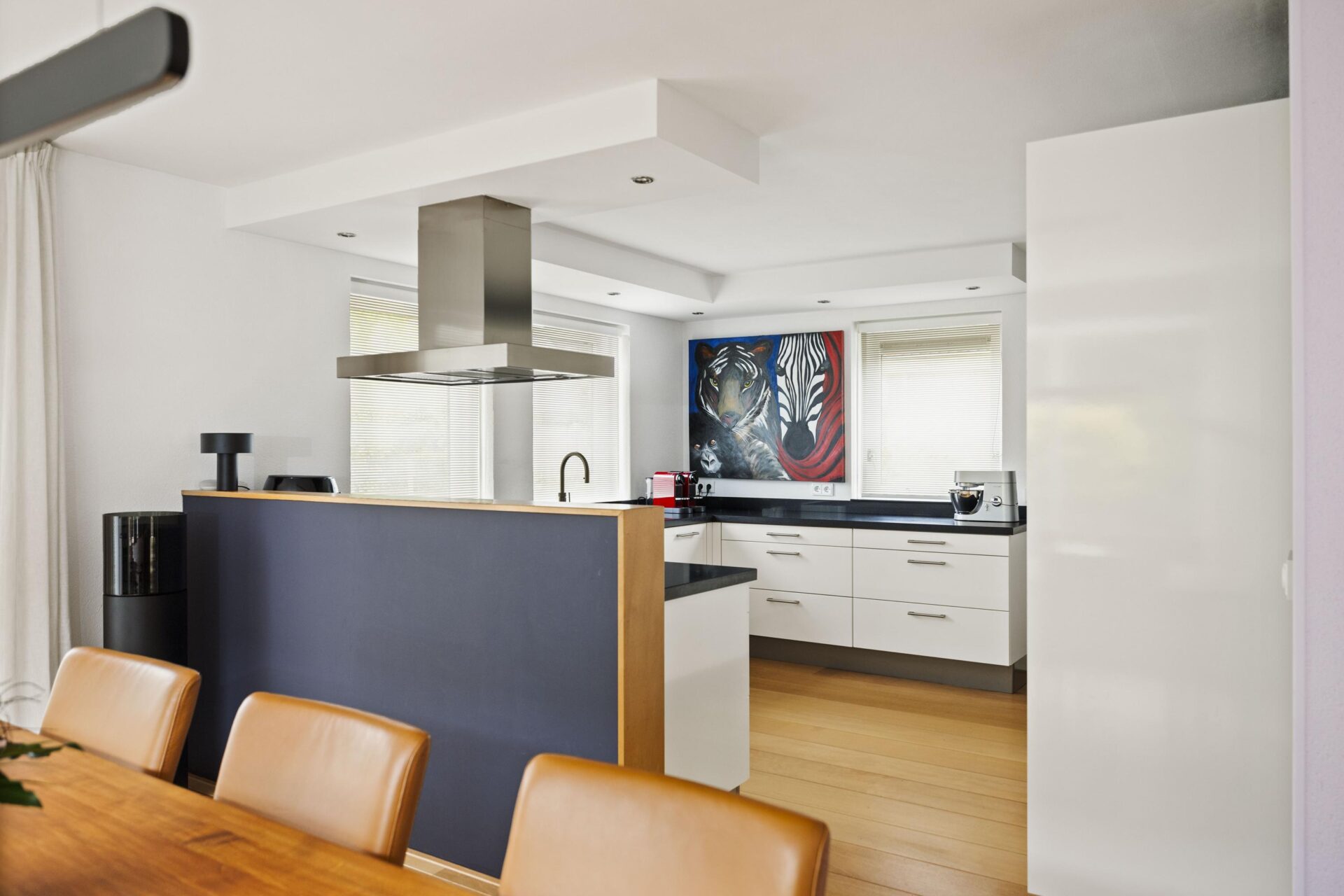 We komen binnen in de ruime hal met trapopgang, toilet en meterkast. De royale woonkamer heeft door de vele ramen een prettige lichtinval. Aan de achterzijde is het zithoekgedeelte met een fijn uitzicht op de tuin, sfeervolle gashaard en schuifpui naar het terras. Aan de voorzijde is het eethoekgedeelte met aansluitend de halfopen keuken voorzien van Quooker, inductiekookplaat met 6 zones en inbouwapparatuur. Vanuit de hal en de woonkamer is er toegang tot de tuinkamer welke gerealiseerd is in de voormalige garage. Een multifunctionele ruimte met schuifpui naar het terras en een vaste trap naar de zolderverdieping die momenteel in gebruik is als atelier/werkkamer.