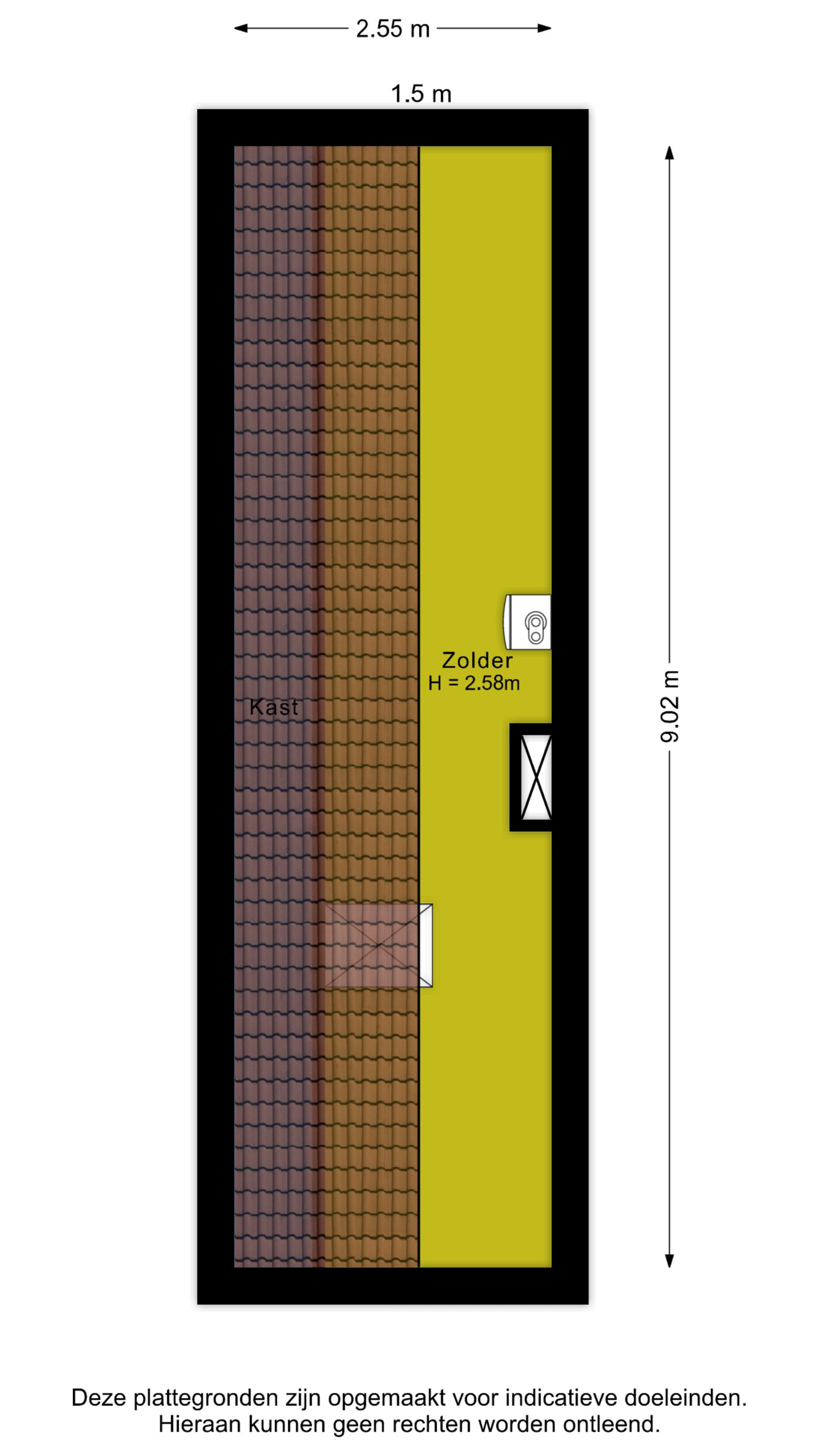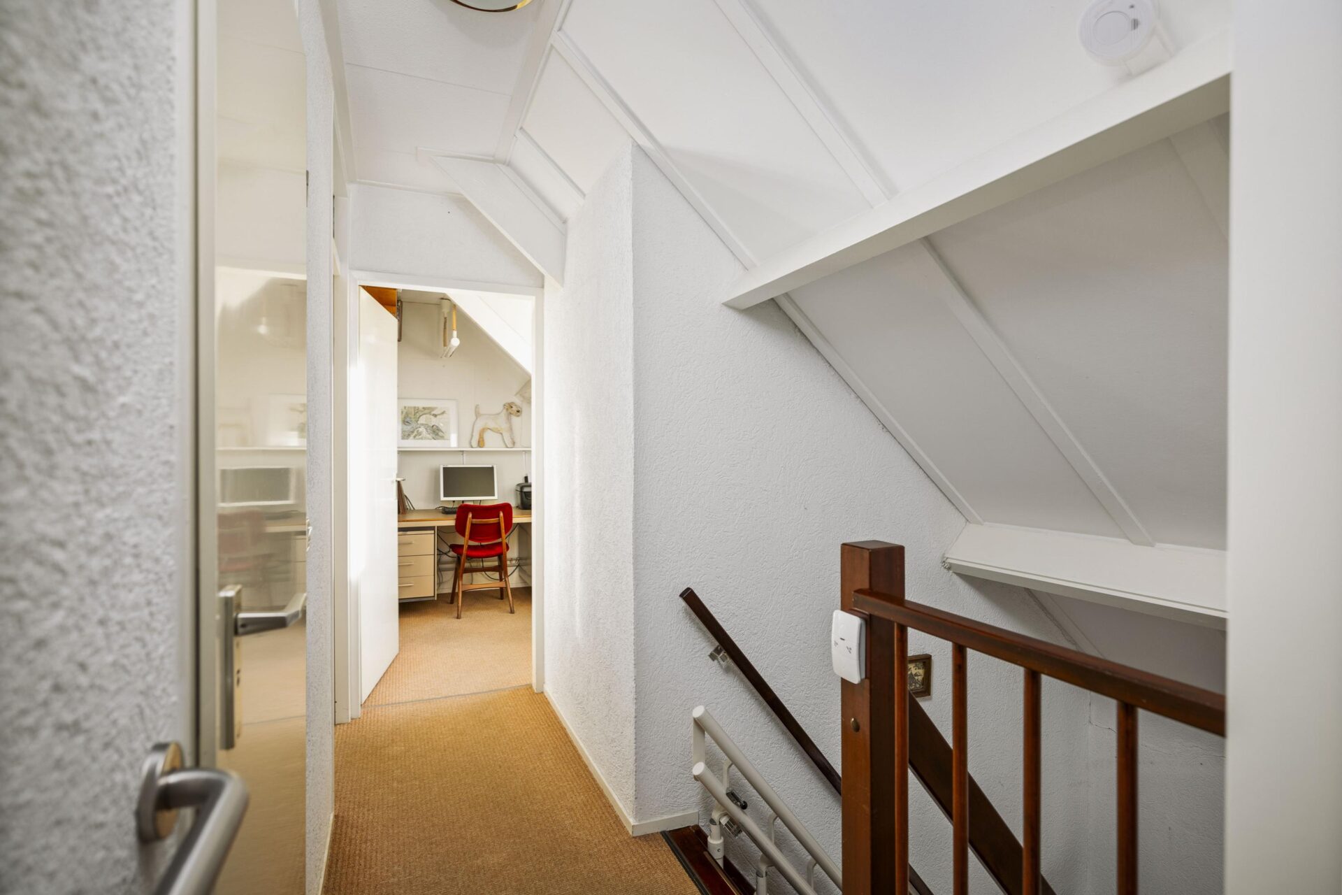 Via een luik met vlizotrap op de slaapkamer is de zolderverdieping bereikbaar. Hier is de opstelling C.V. en veel bergruimte.