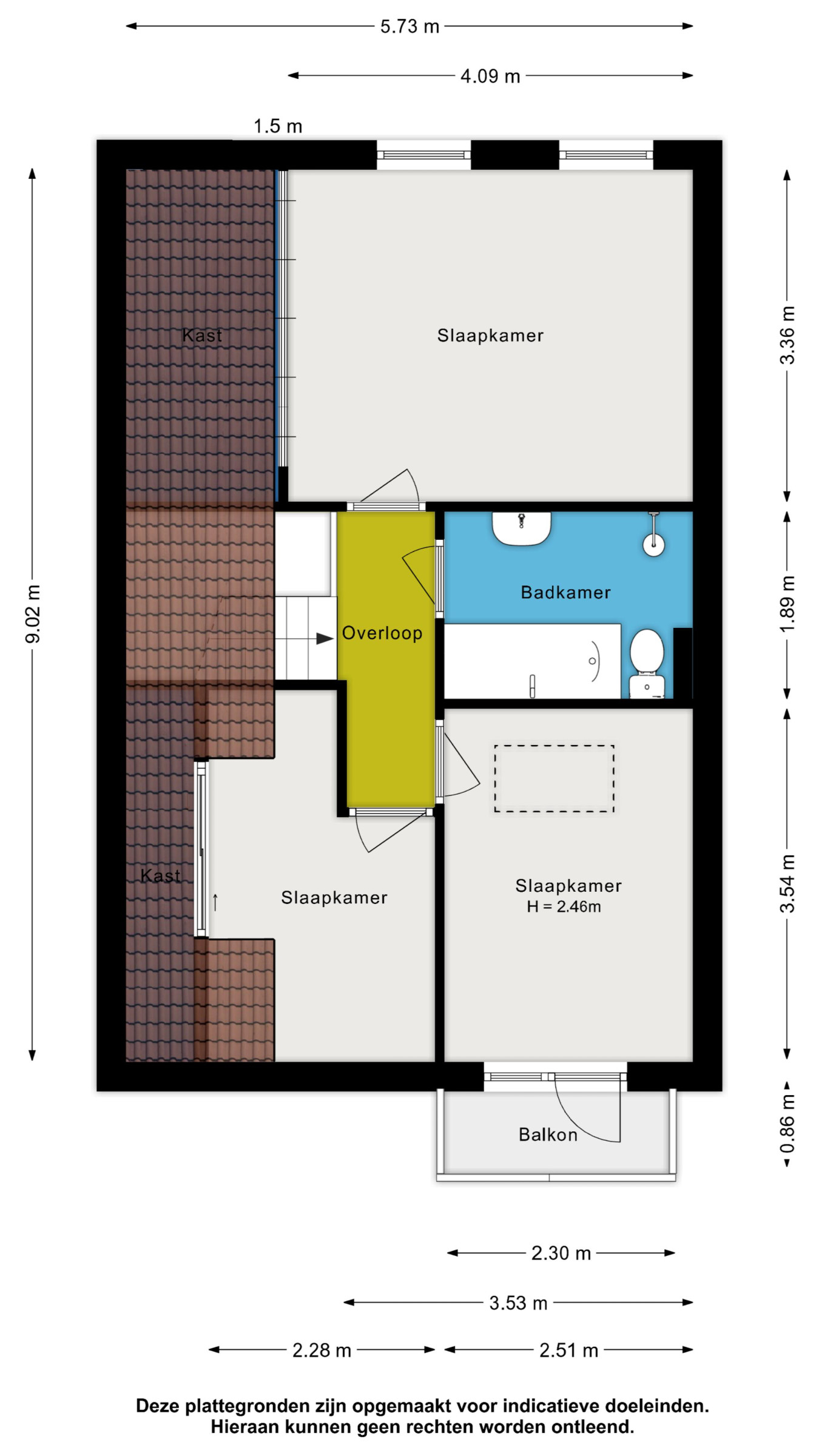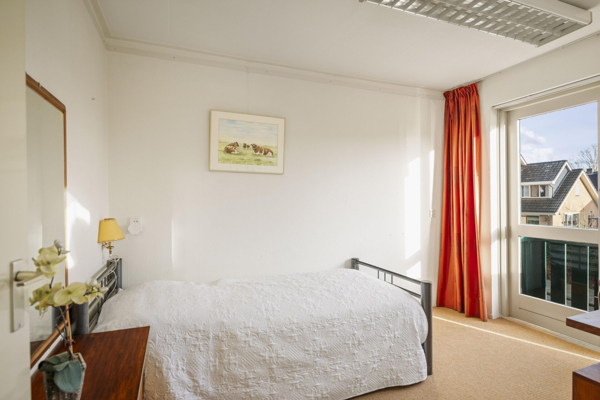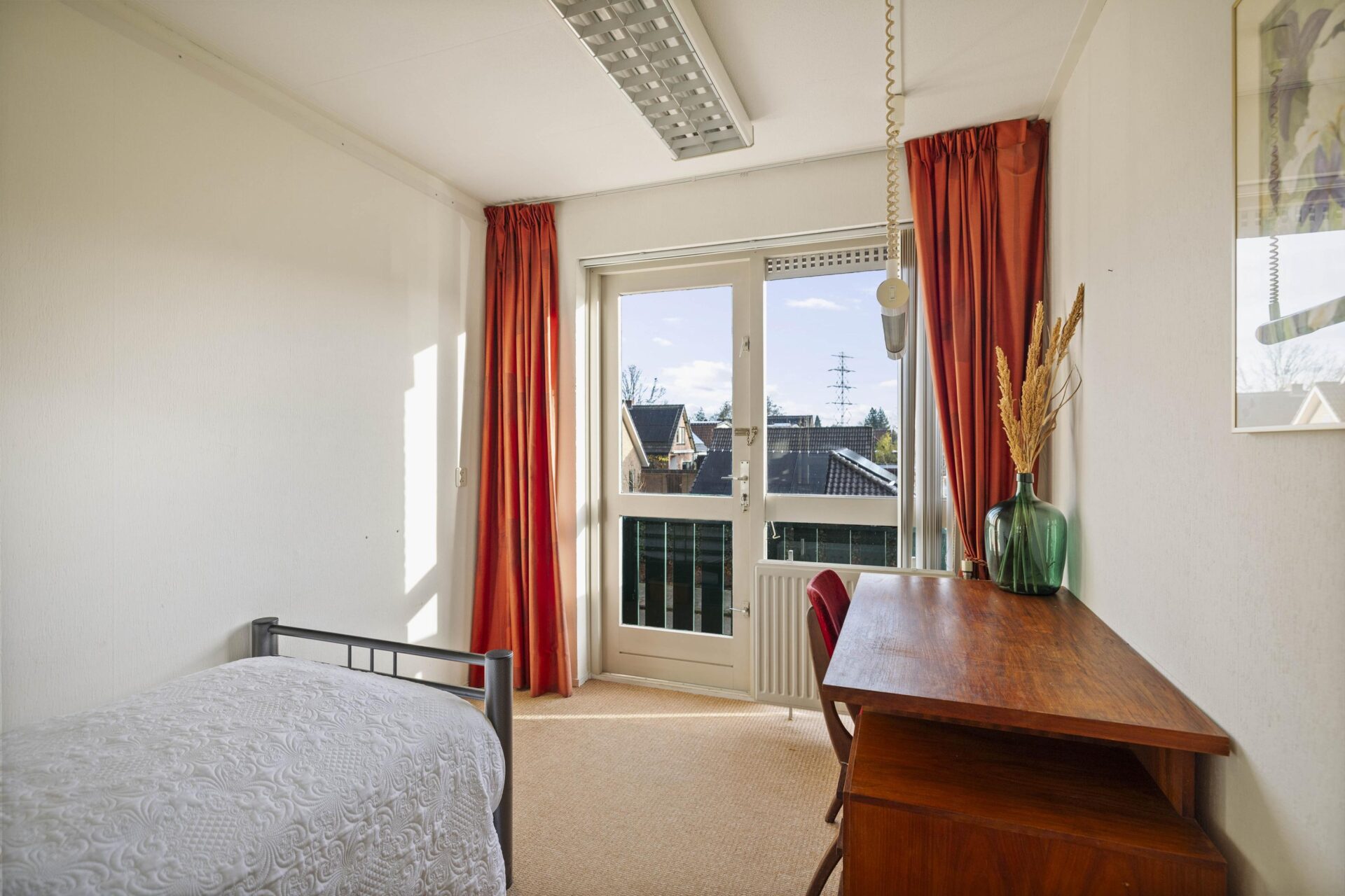 Op de eerste verdieping geeft de overloop toegang tot 3 slaapkamers. Aan de voorzijde zijn 2 slaapkamers, waarvan 1 met toegang tot het balkon en 1 met dakkapel en bergruimte onder de schuine kap. Aan de achterzijde is een royale slaapkamer met kastenwand, de originele badkamer is voorzien van een ligbad, douche, wastafelmeubel en toilet.