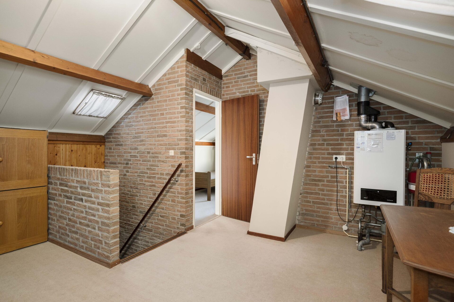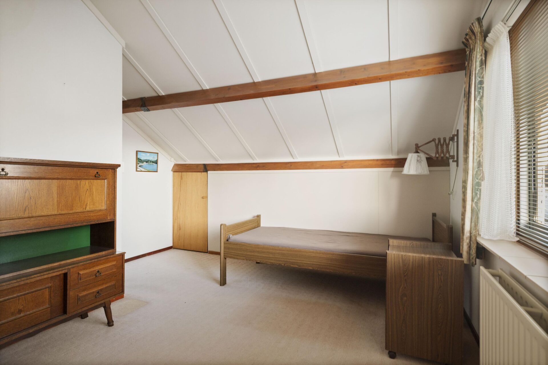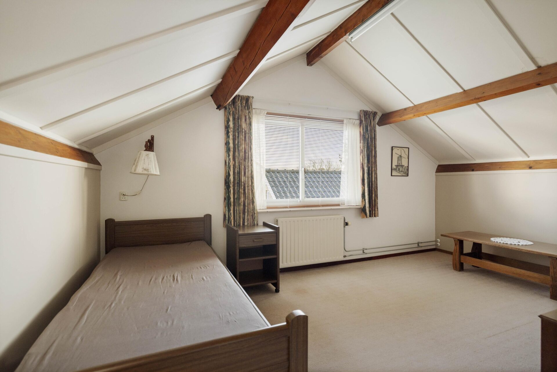 Op de eerste verdieping is een ruime voorzolder met dakramen en opstelling C.V. en er is een ruime slaapkamer met bergruimte onder de schuine kap.