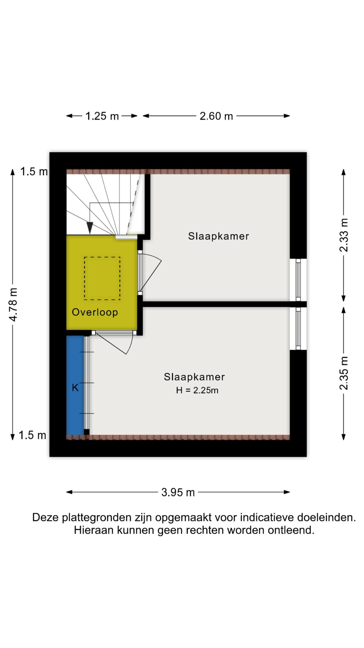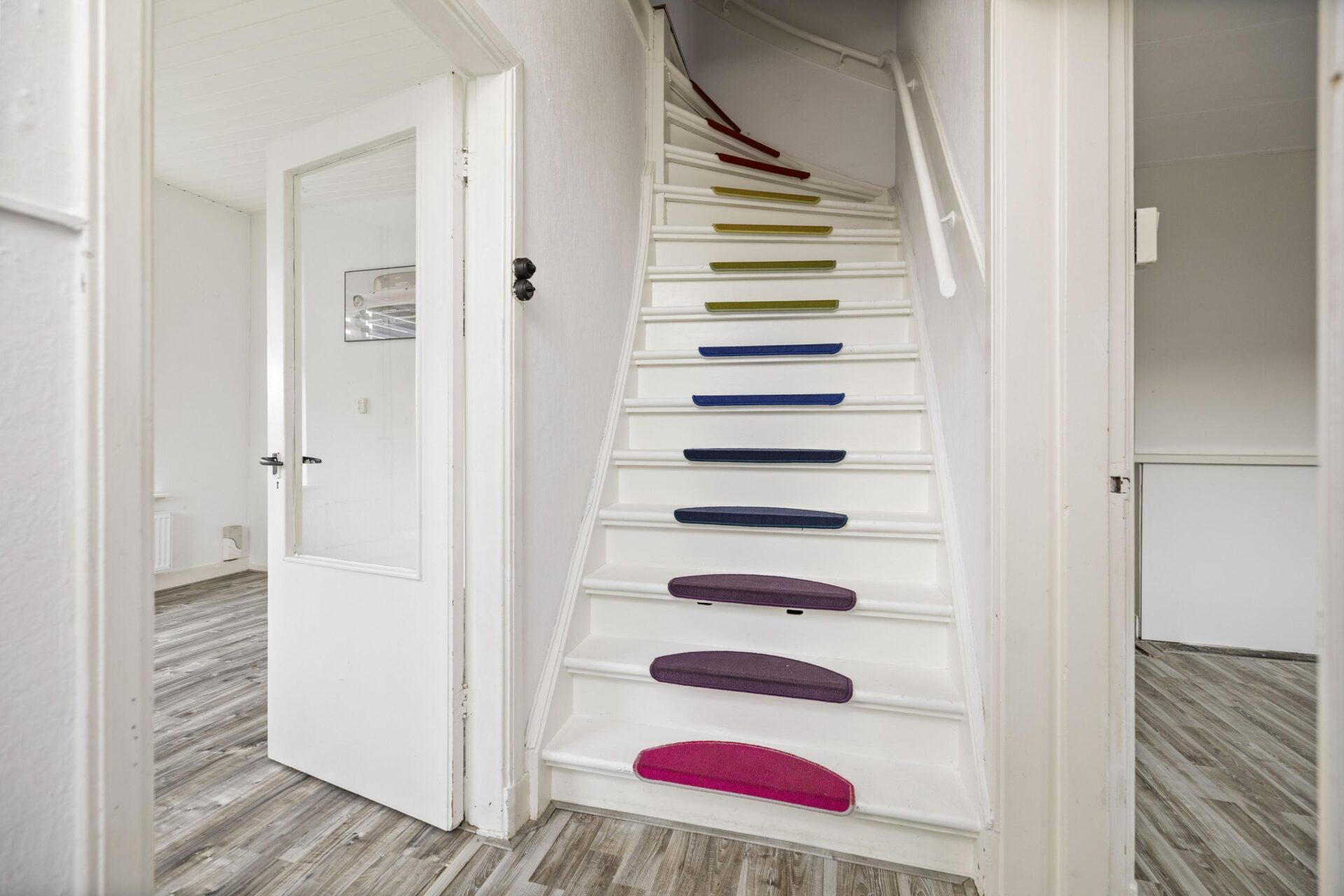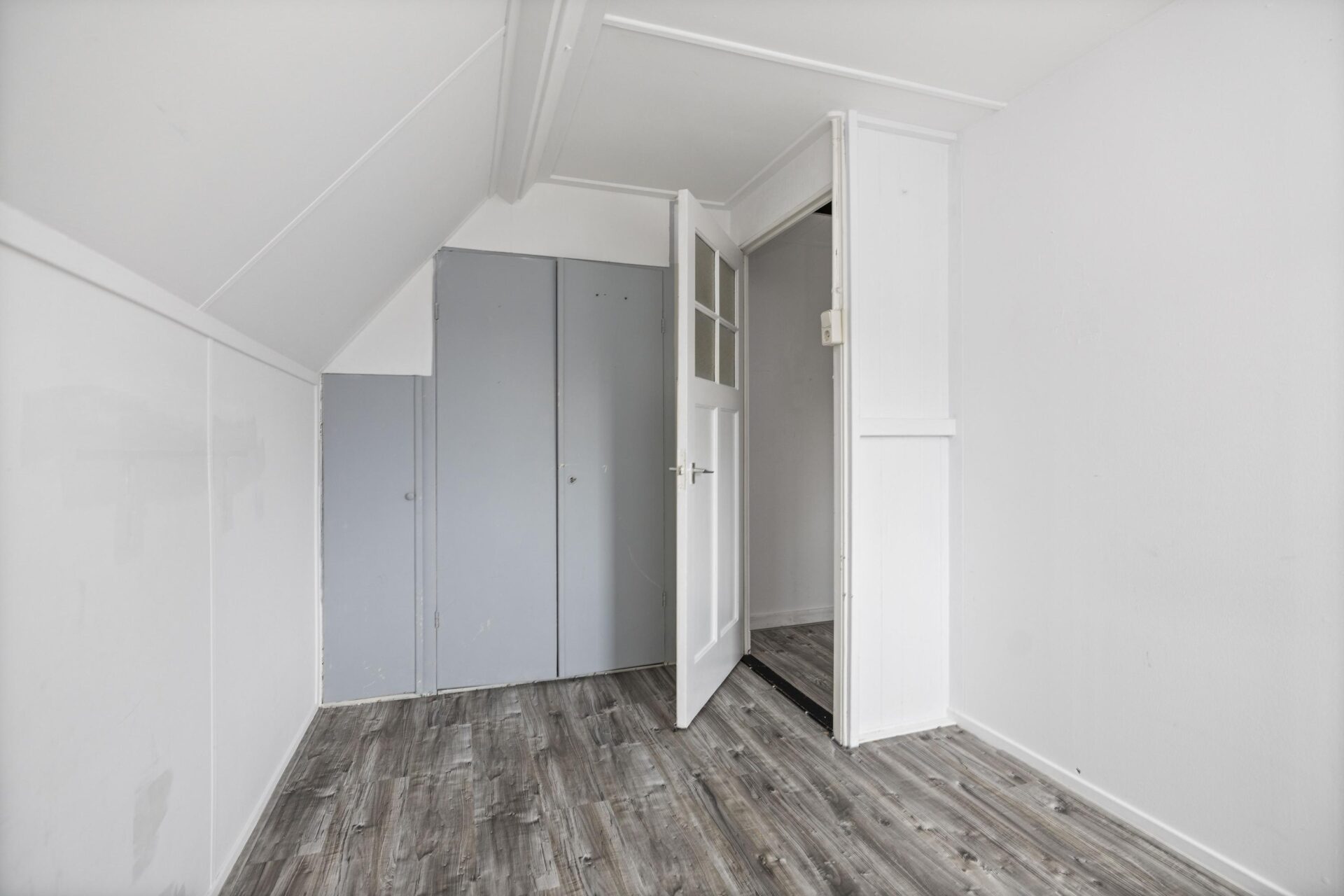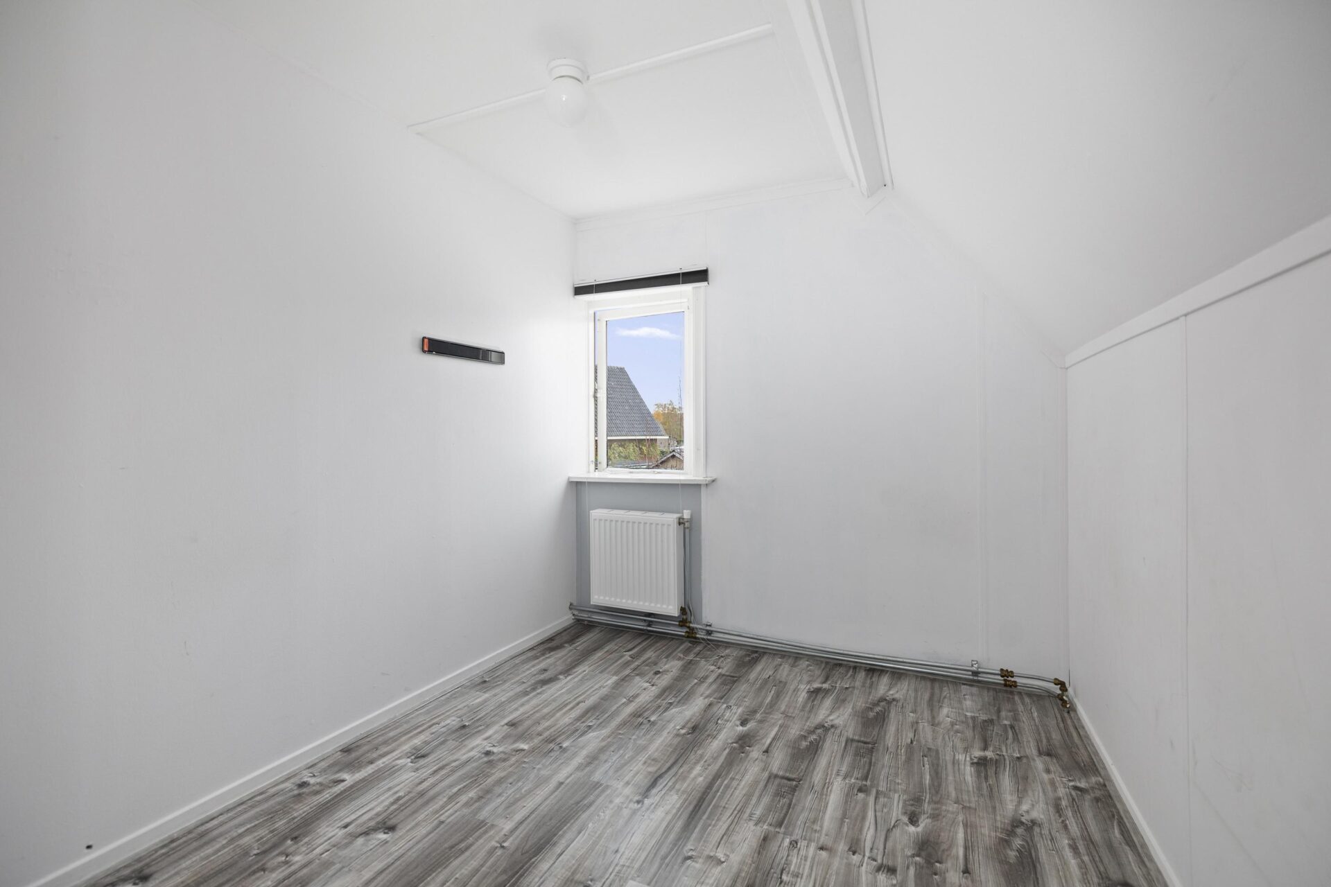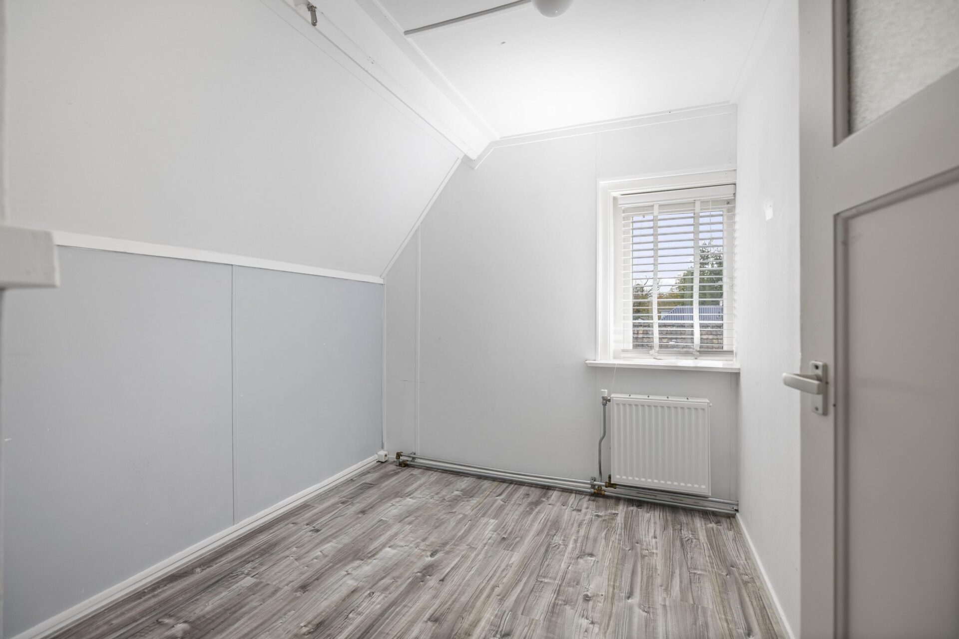 Op de verdieping geeft de overloop toegang tot twee slaapkamers. Met een ladder is de bergzolder bereikbaar.