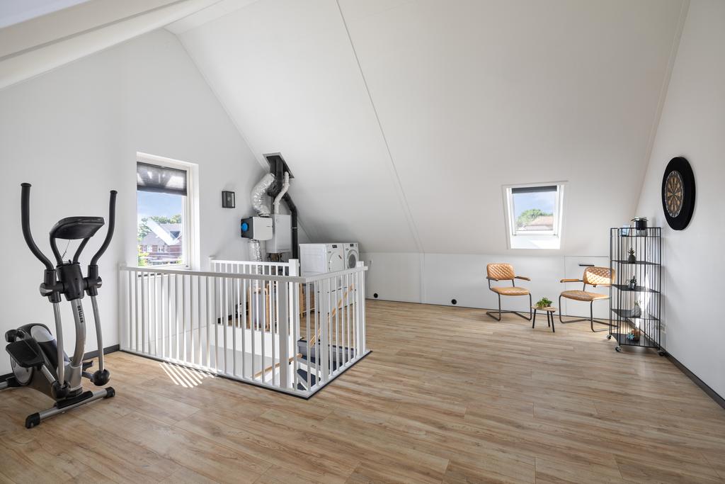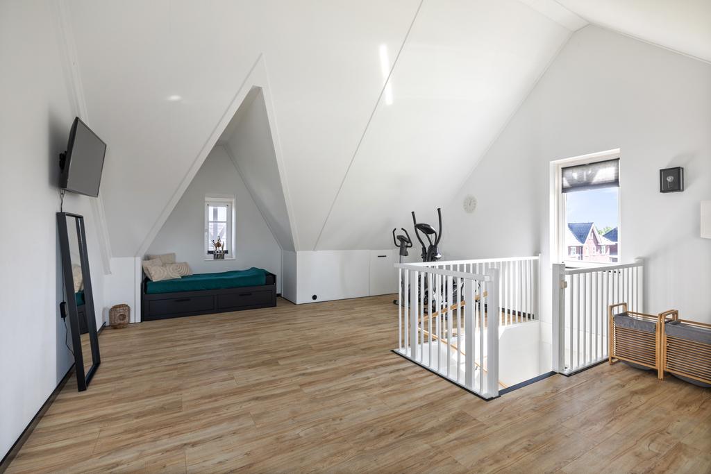 De zolderverdieping is bereikbaar middels een vaste trap. De zolder is een grote ruimte waar nog diverse mogelijkheden liggen! Hier kan een vierde en/of vijfde kamer gecreëerd worden. Ook zijn op zolder de aansluitingen voor de c.v.-ketel, wasmachine en droger te vinden en is er bergruimte achter de knieschotten.