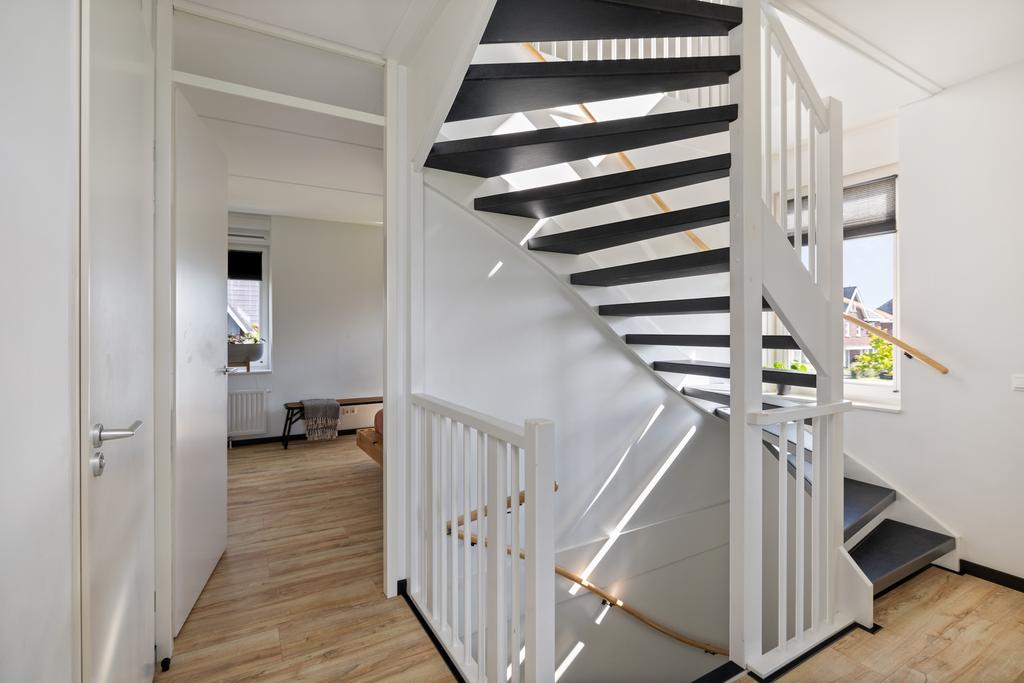 Op de eerste verdieping kom je via de overloop in drie slaapkamers en de badkamer. De slaapkamers zijn allen van een goed formaat. De grootste slaapkamer is aan de gehele voorzijde gelegen, hier is een inloopkast gecreëerd. De badkamer is voorzien van een vrijstaand ligbad, inloopdouche, wastafelmeubel, toilet en vloerverwarming.