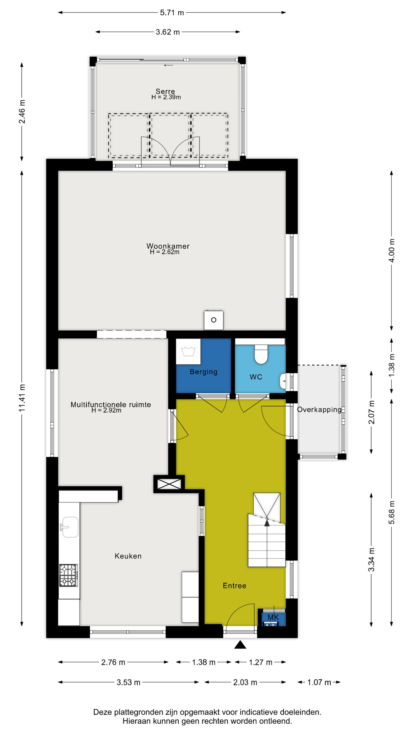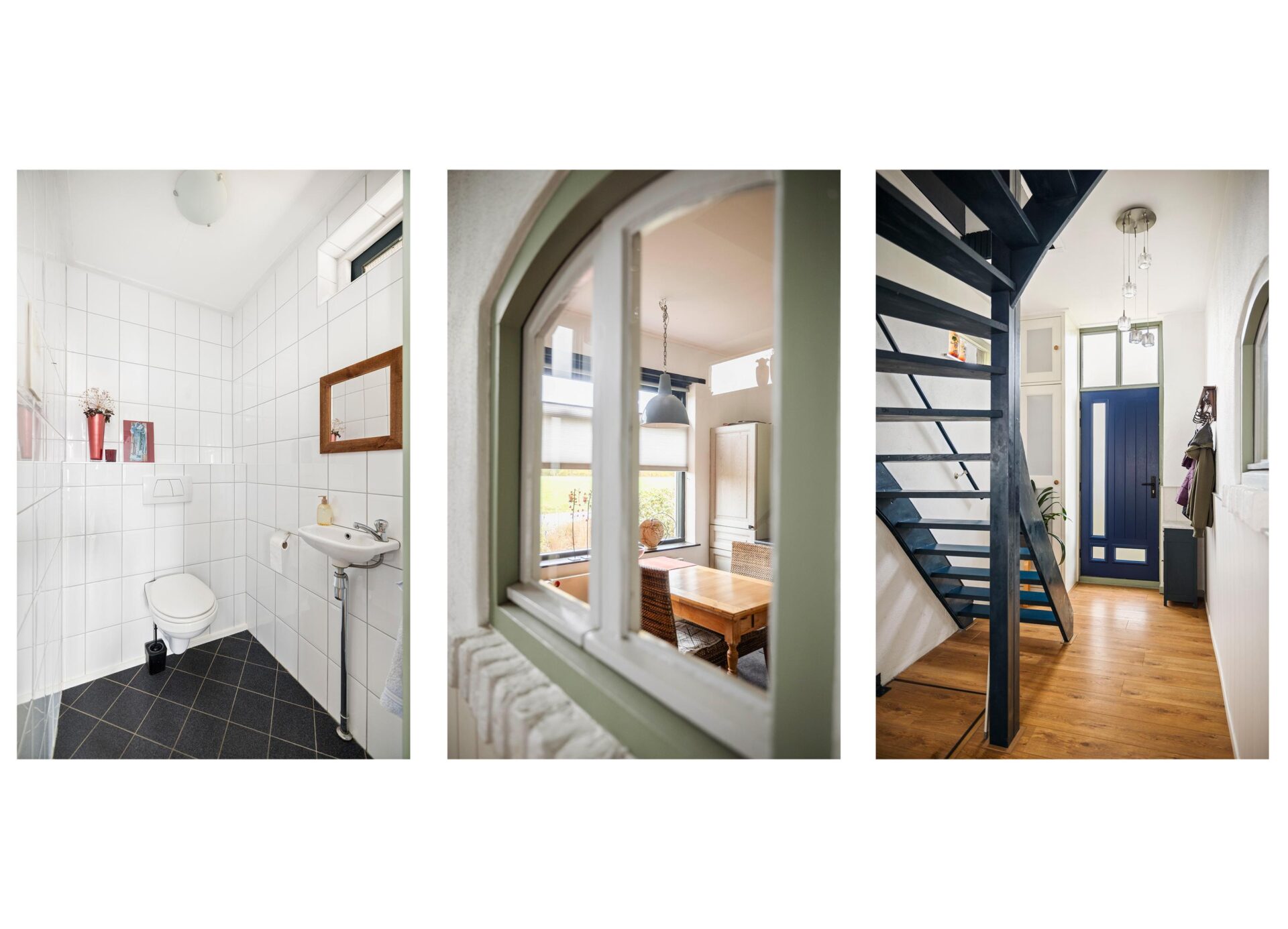 Via de voordeur komen we binnen in de ruime hal, die tevens via een overdekte entree aan de zijkant te bereiken is. Hier is de meterkast, toilet, bergruimte met wasmachine-opstelling, luik naar de kelder en trapopgang naar de verdieping. Vanuit de hal komen we in de multifunctionele tussenruimte tussen de woonkamer en woonkeuken. Aan de voorzijde ligt de woonkeuken, deze is voorzien van inbouwapparatuur en er is voldoende ruimte voor een eethoek. Aan de achterzijde ligt de sfeervolle woonkamer met kachelaansluiting en openslaande deuren geven toegang tot de aangebouwde serre. De serre is voorzien van een lichtstraat en schuifpui naar de tuin, een heerlijke plek om te genieten! De woonkamer en serre zijn voorzien van een plavuizen vloer met vloerverwarming.
