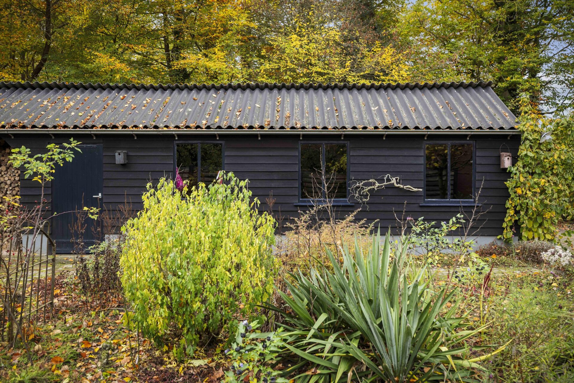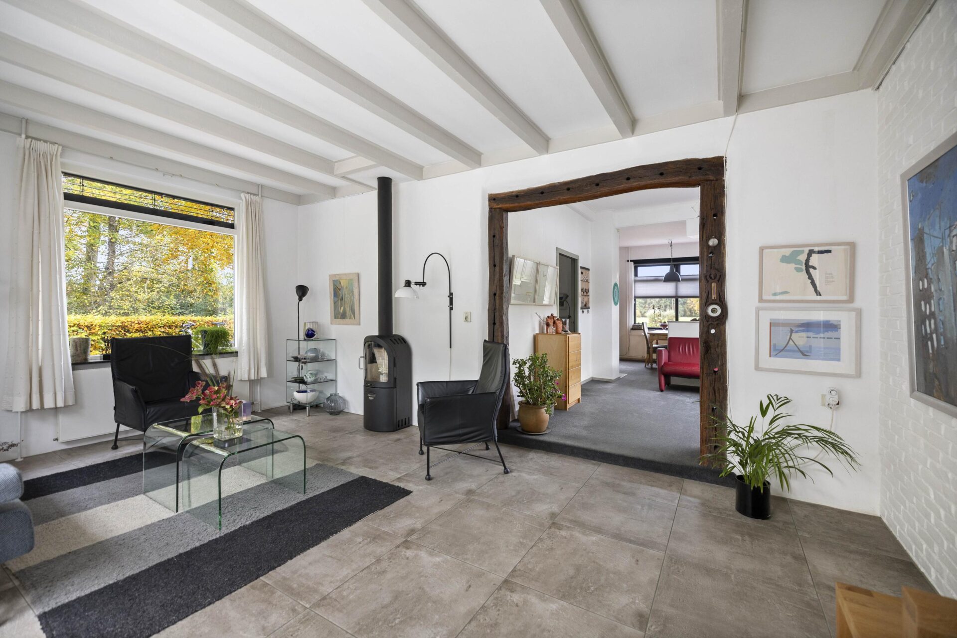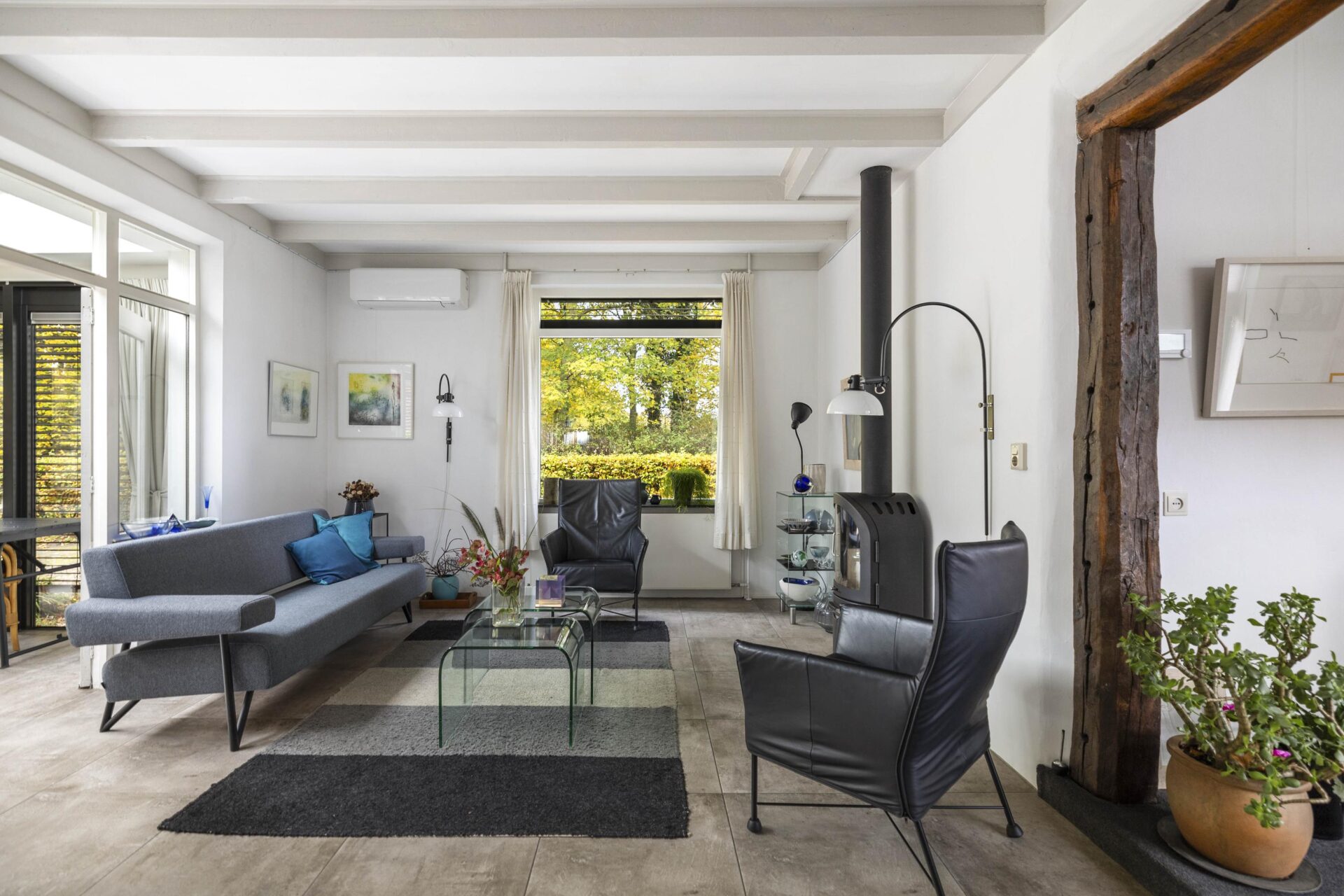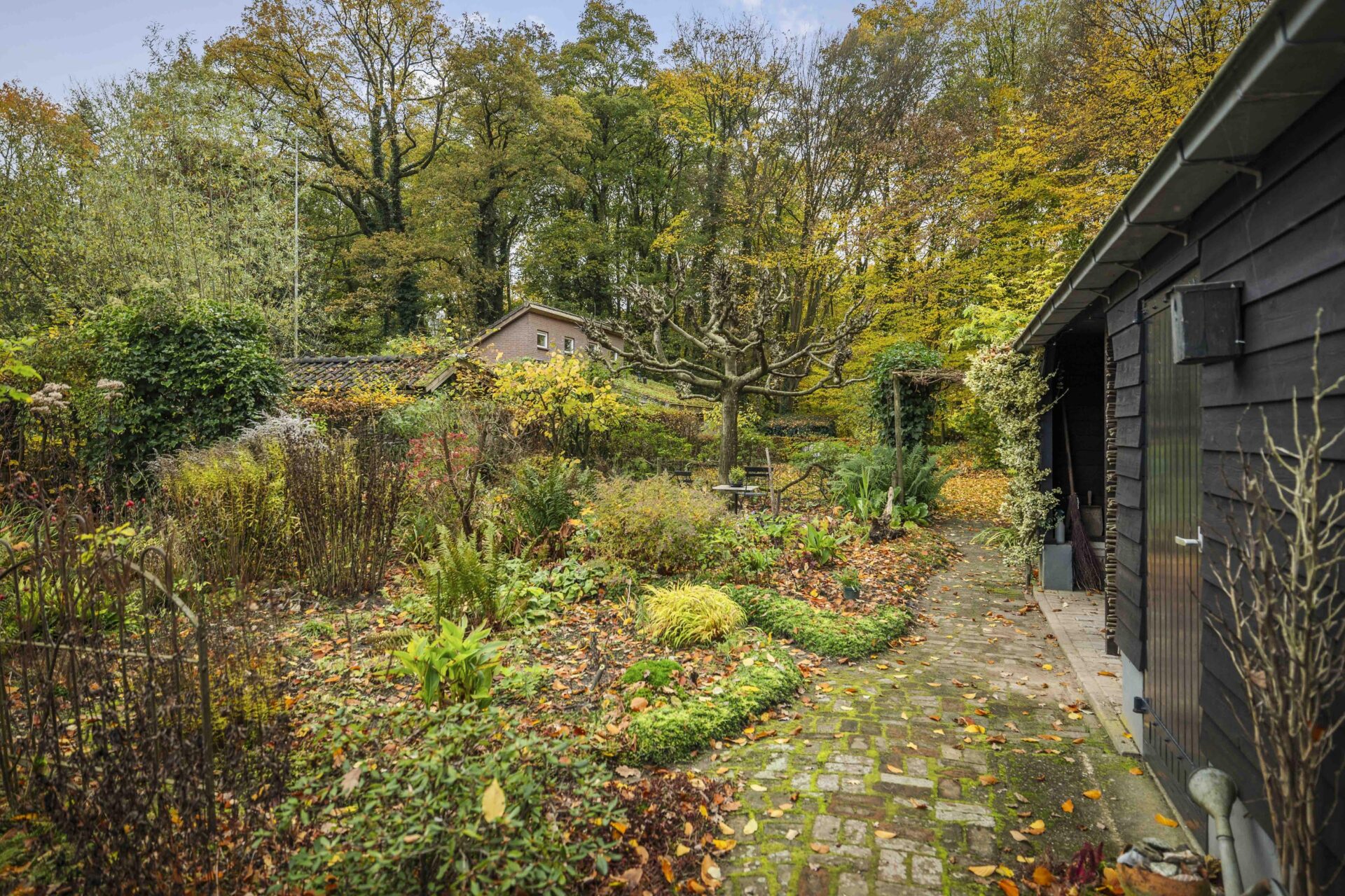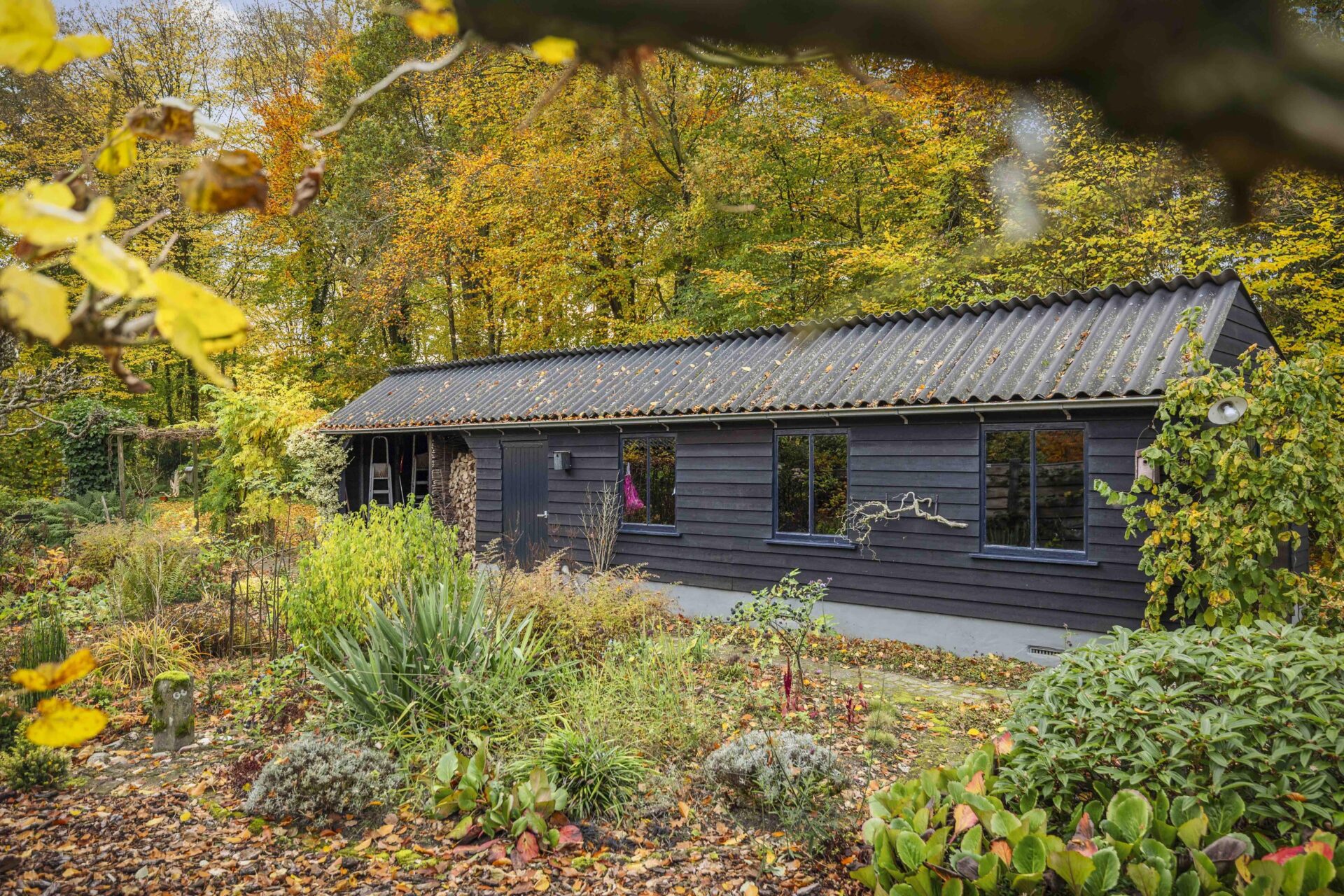 Op een schitterende, bosrijke locatie gelegen vrijstaande woning met grote garage/schuur.