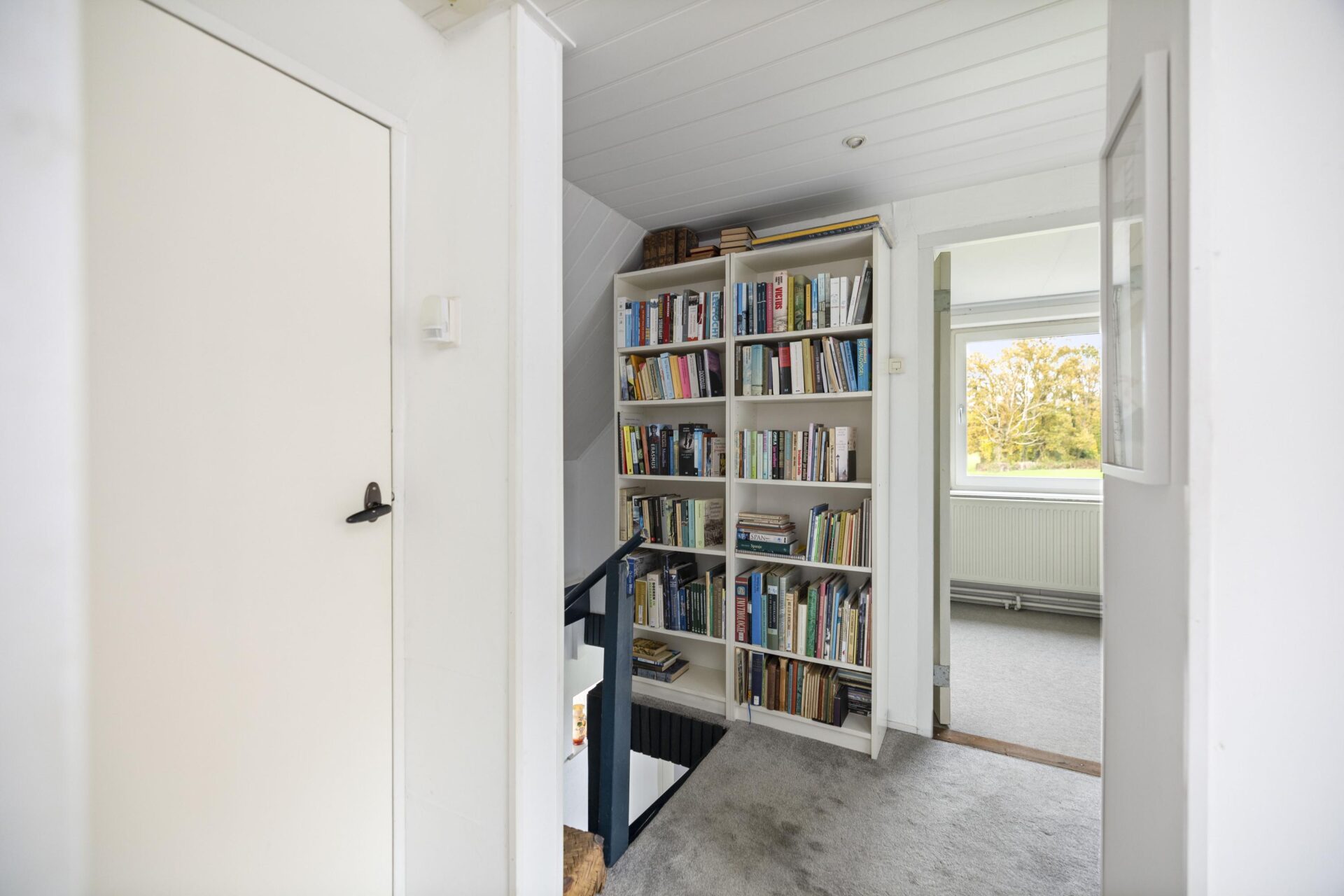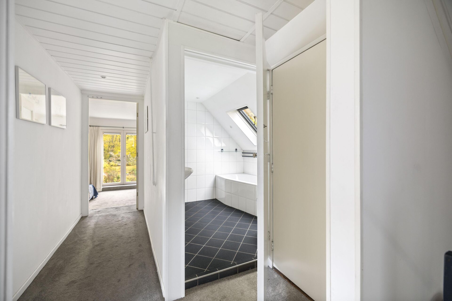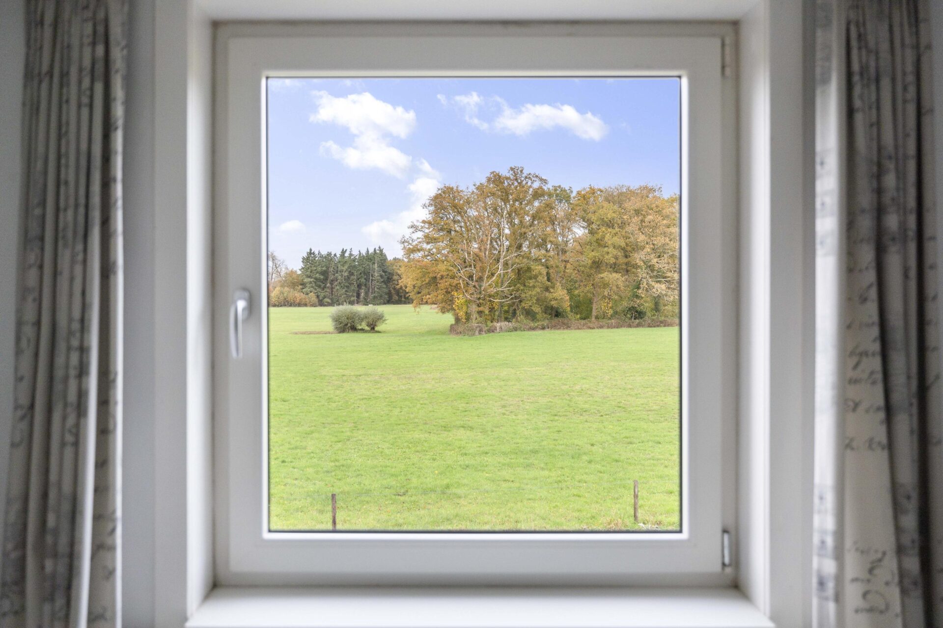 Op de eerste verdieping geeft de overloop toegang tot 3 slaapkamers waarvan 1 met dakkapel en de badkamer. Aan de achterzijde ligt de royale ouderslaapkamer met kastenwand, openslaande deuren en een schitterend uitzicht over het perceel. De badkamer is voorzien van een ligbad, separate douche, wastafel en toilet (Sanibroyeur). Op de overloop is een bergkast met opstelling C.V. en luik naar de onbevloerde vliering.