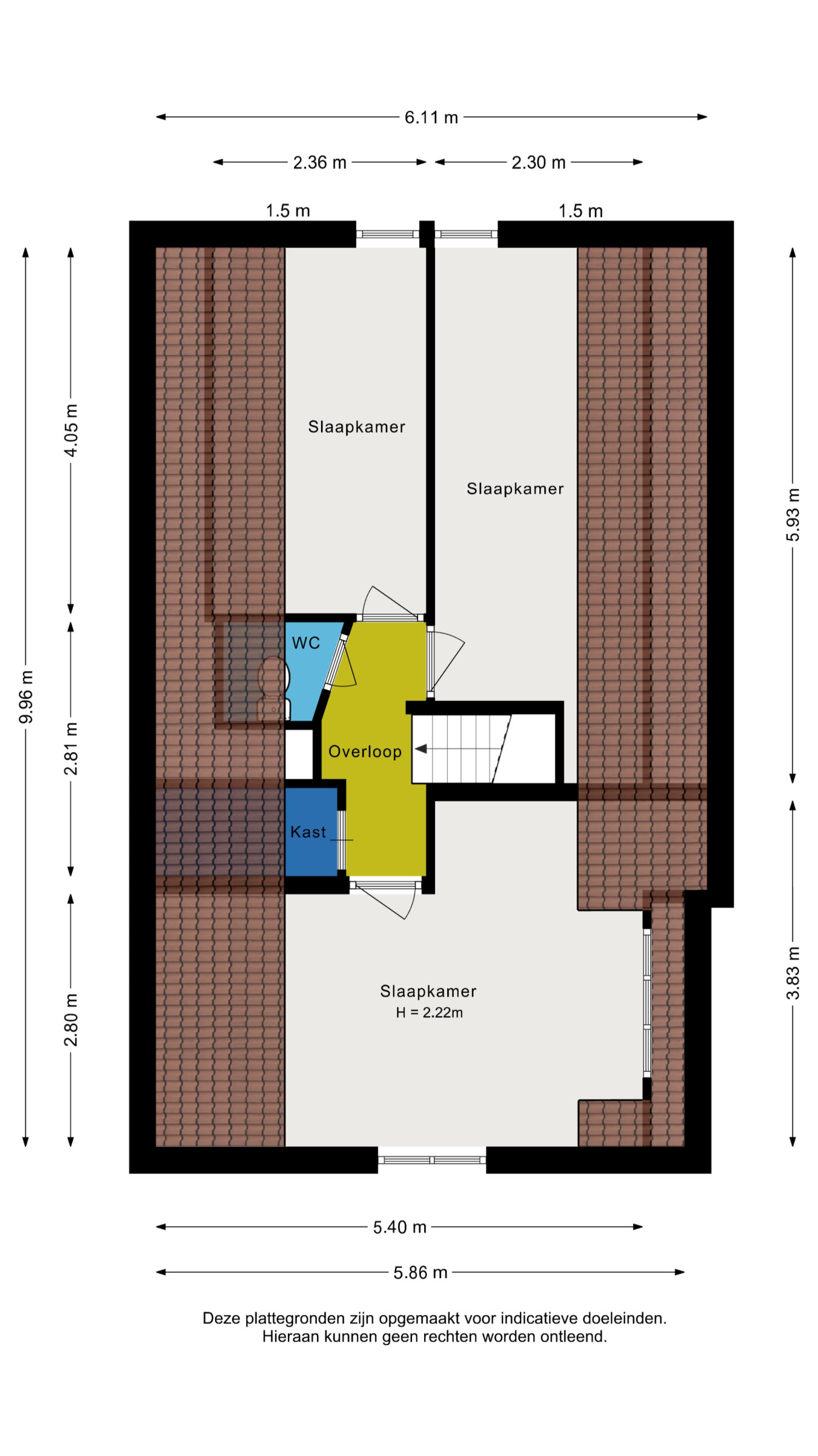 Op de eerste verdieping geeft de overloop toegang tot drie slaapkamers, het separate toilet en een vaste kast. De grote slaapkamer aan de voorzijde is voorzien van een dakkapel.