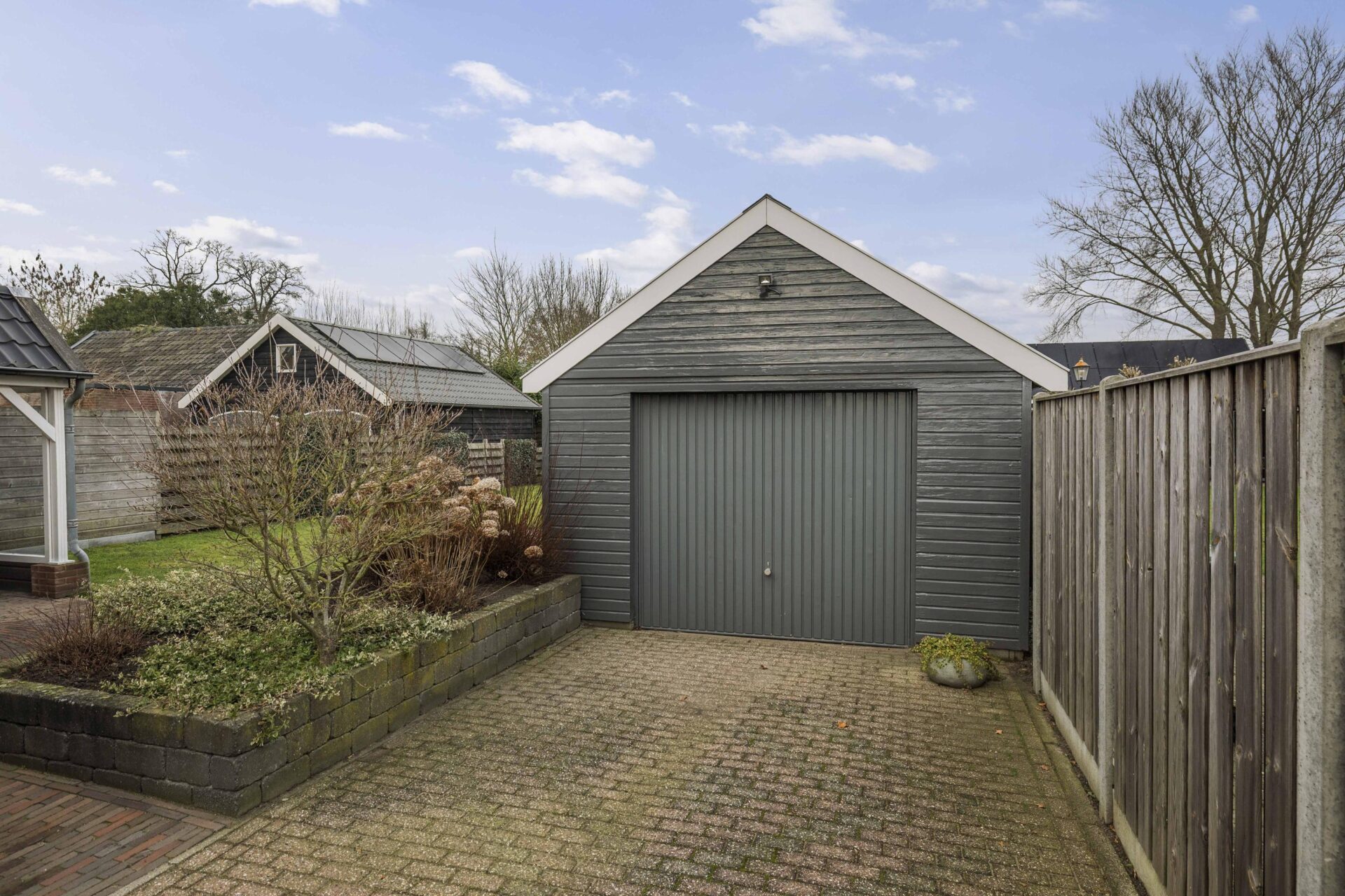 Daarnaast beschikt het perceel over een losstaande, ruime garage. Deze biedt plaats aan een auto en extra opslag, maar is ook zeer geschikt voor hobby’s of het opbergen van fietsen en gereedschap. Achter in de tuin is tevens een tuinhuis met berging aanwezig voor praktische bergruimte. Daarnaast is er voldoende parkeergelegenheid op eigen terrein aanwezig.