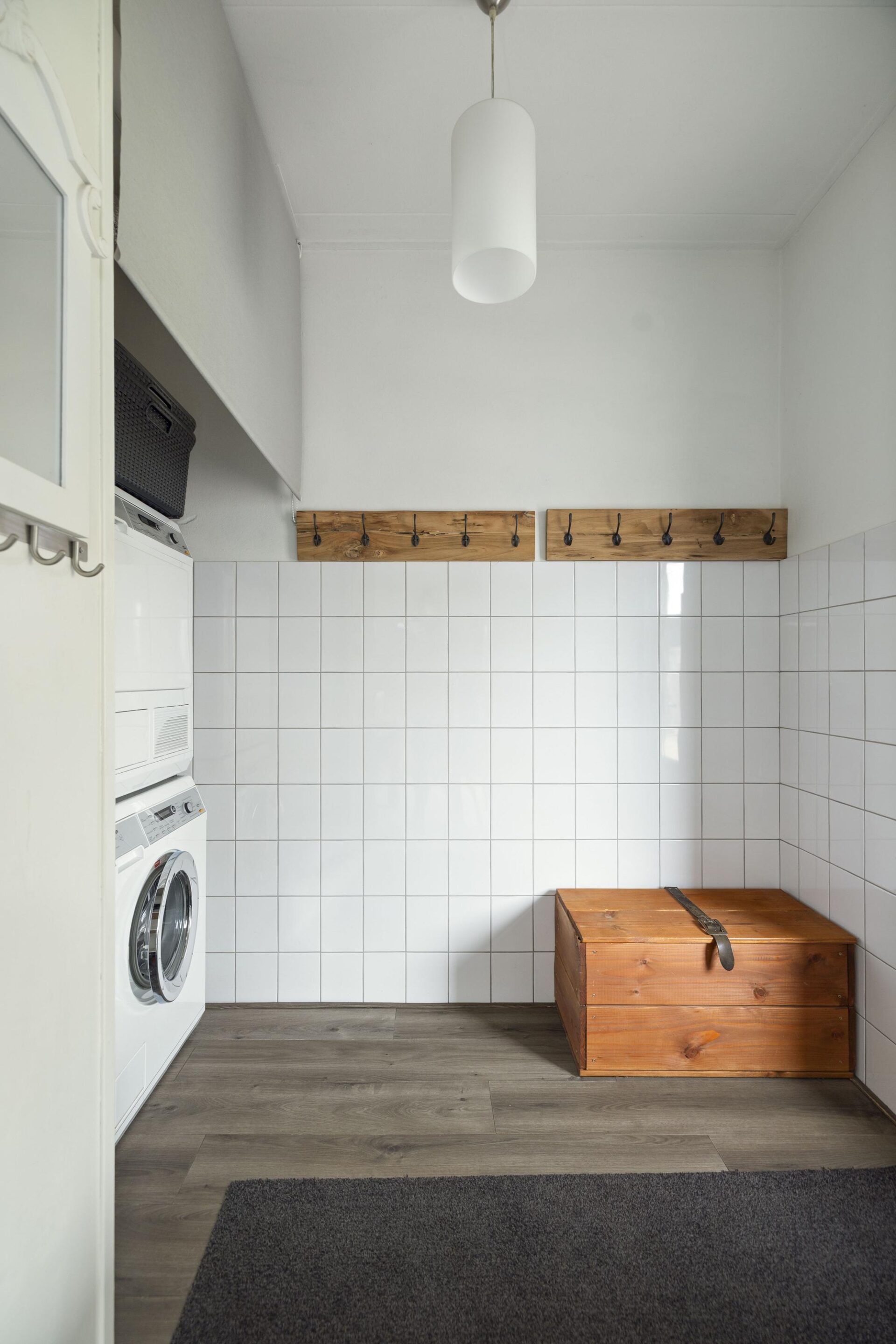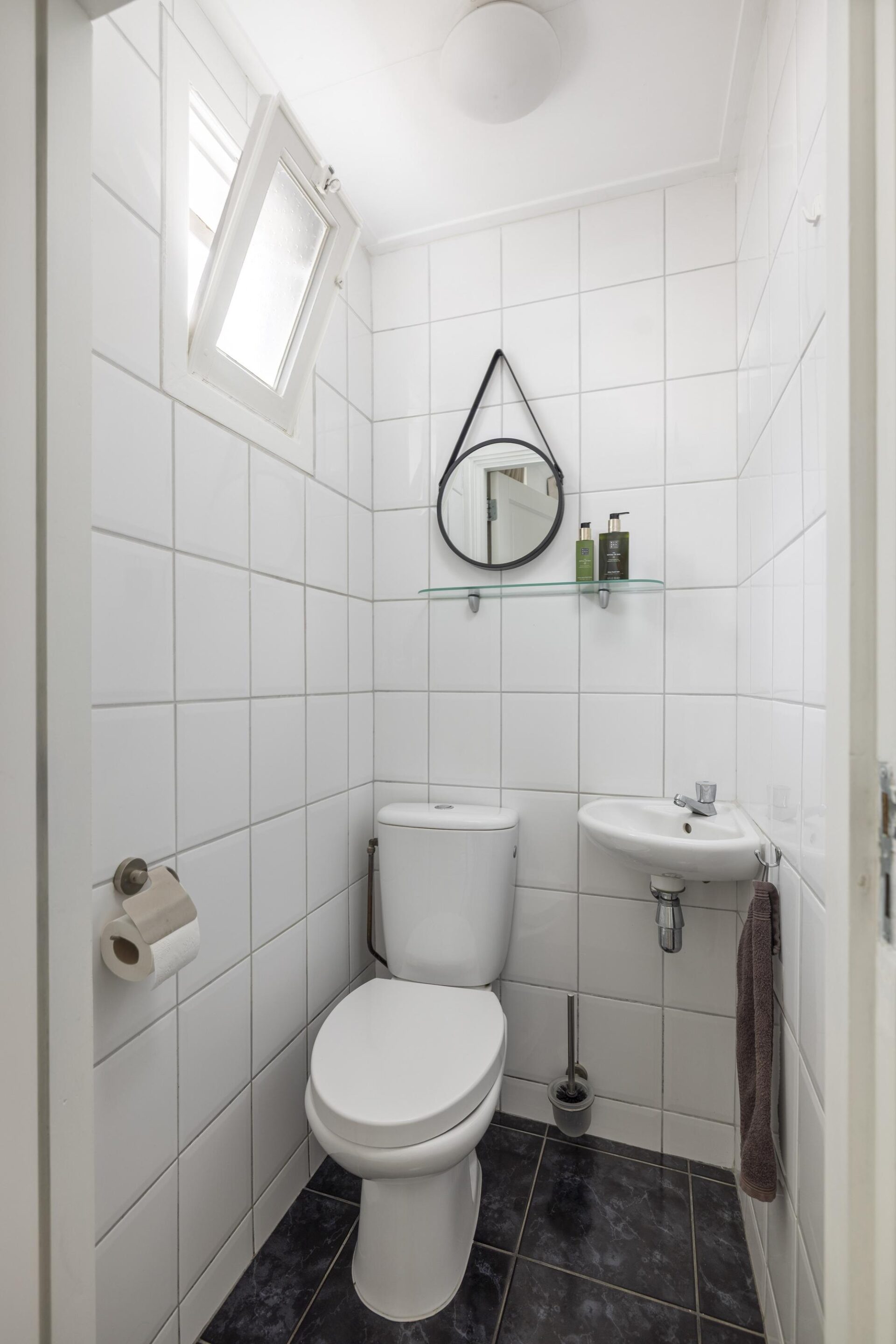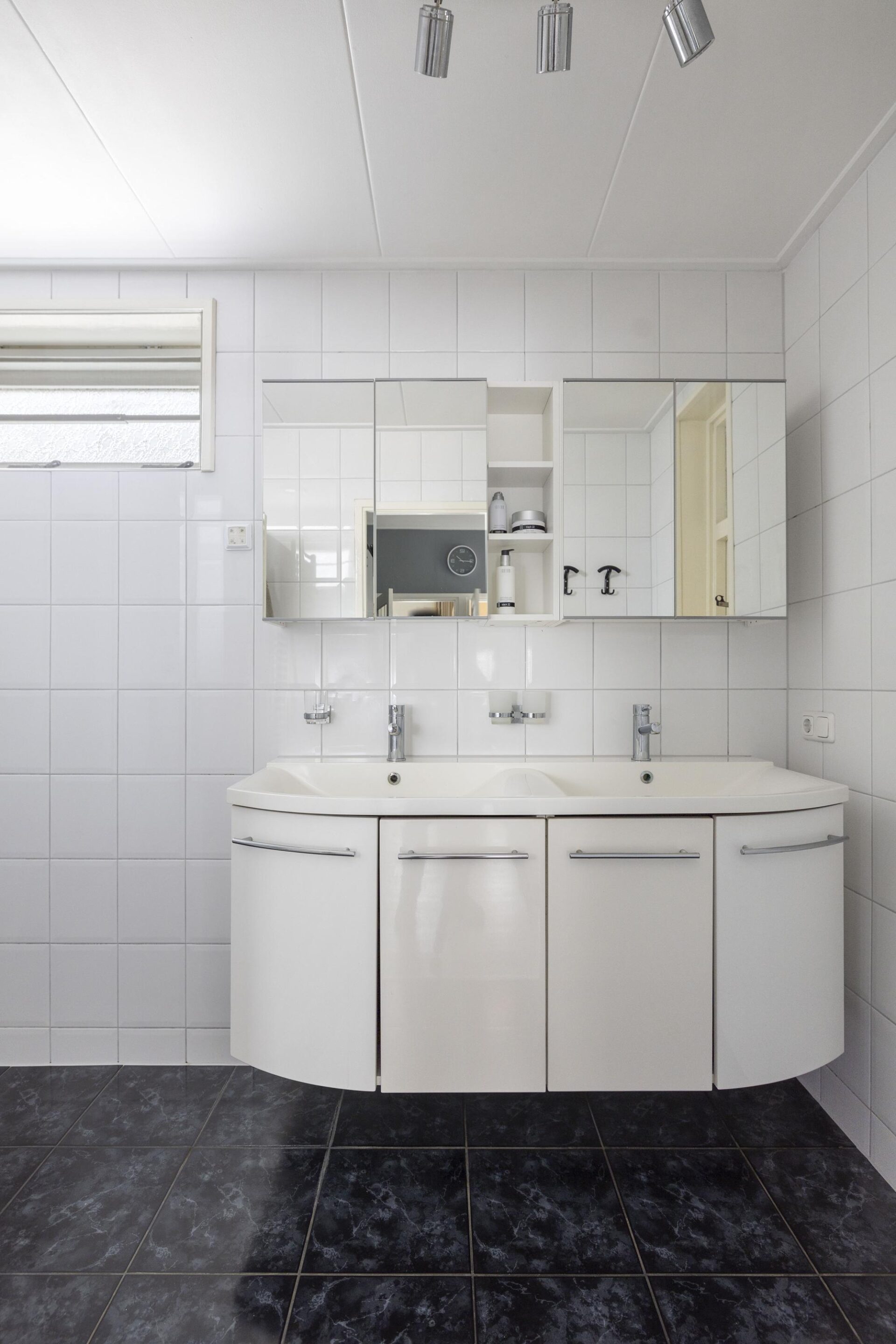 Vanuit de keuken heb je toegang tot de kelder, badkamer, en bijkeuken. De badkamer is voorzien van een douche en een dubbele wastafel. De bijkeuken is een praktische ruimte met de aansluitingen voor de wasmachine, droger en c.v.-ketel. Ook loop je via hier naar de veranda in de tuin.