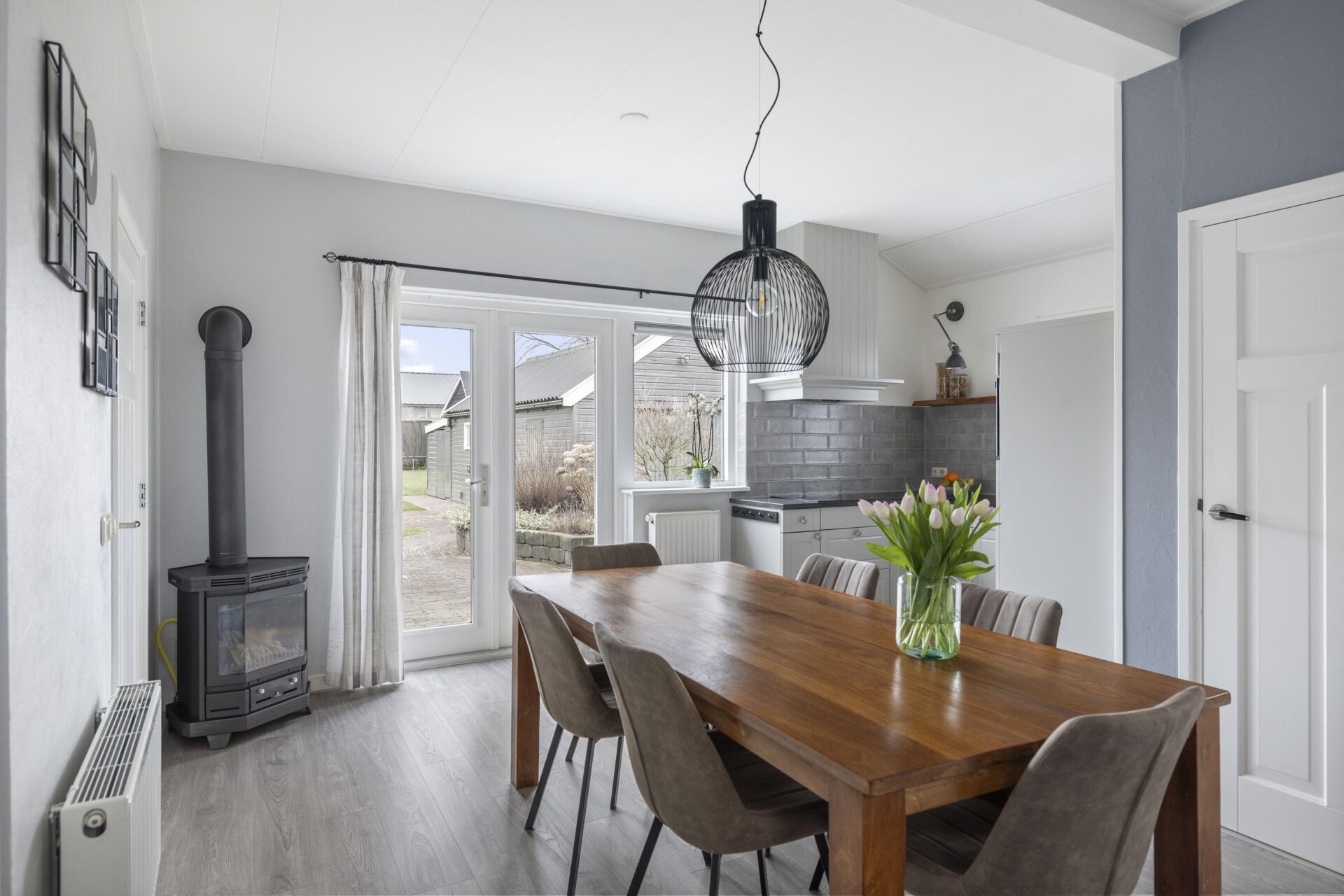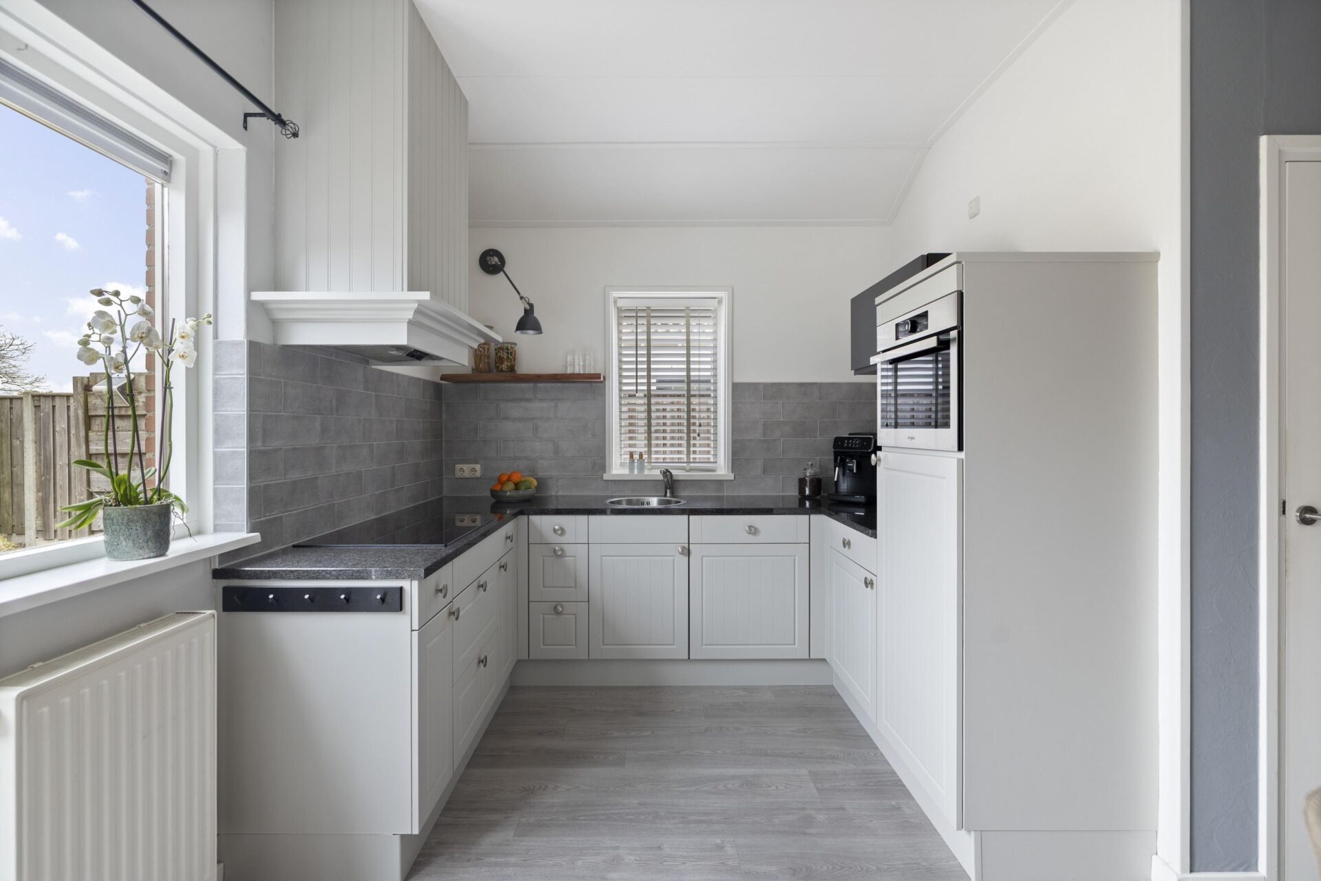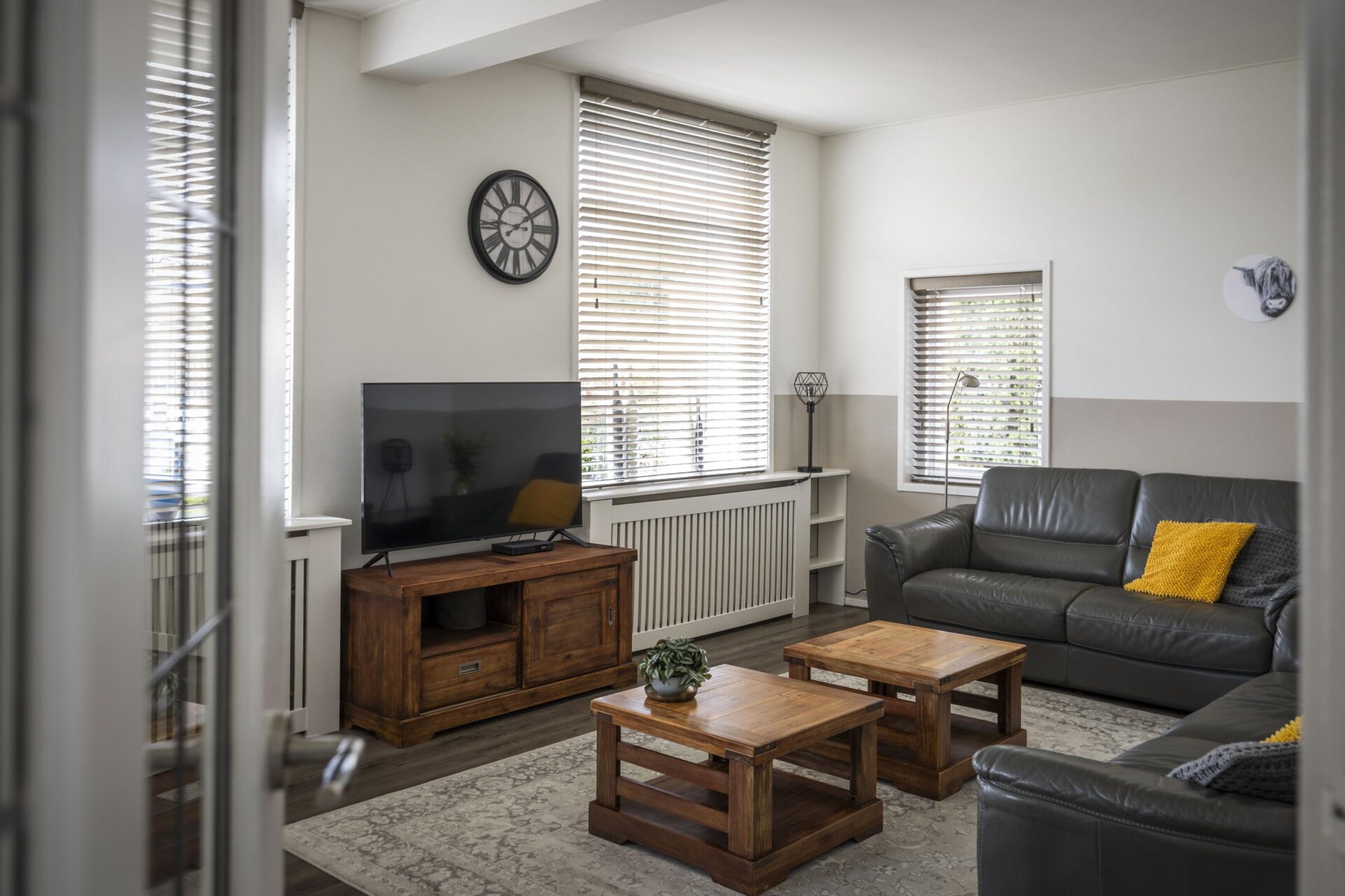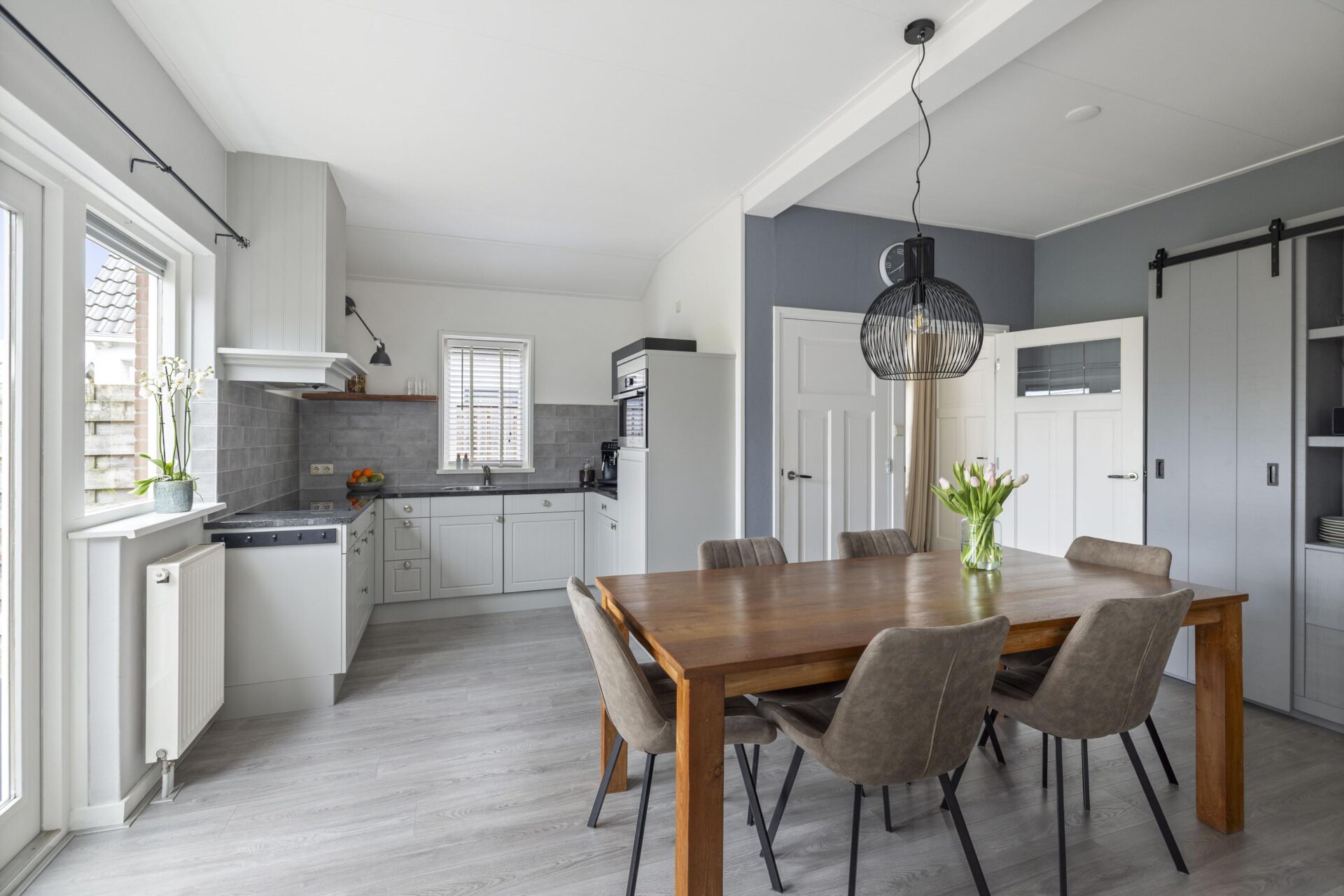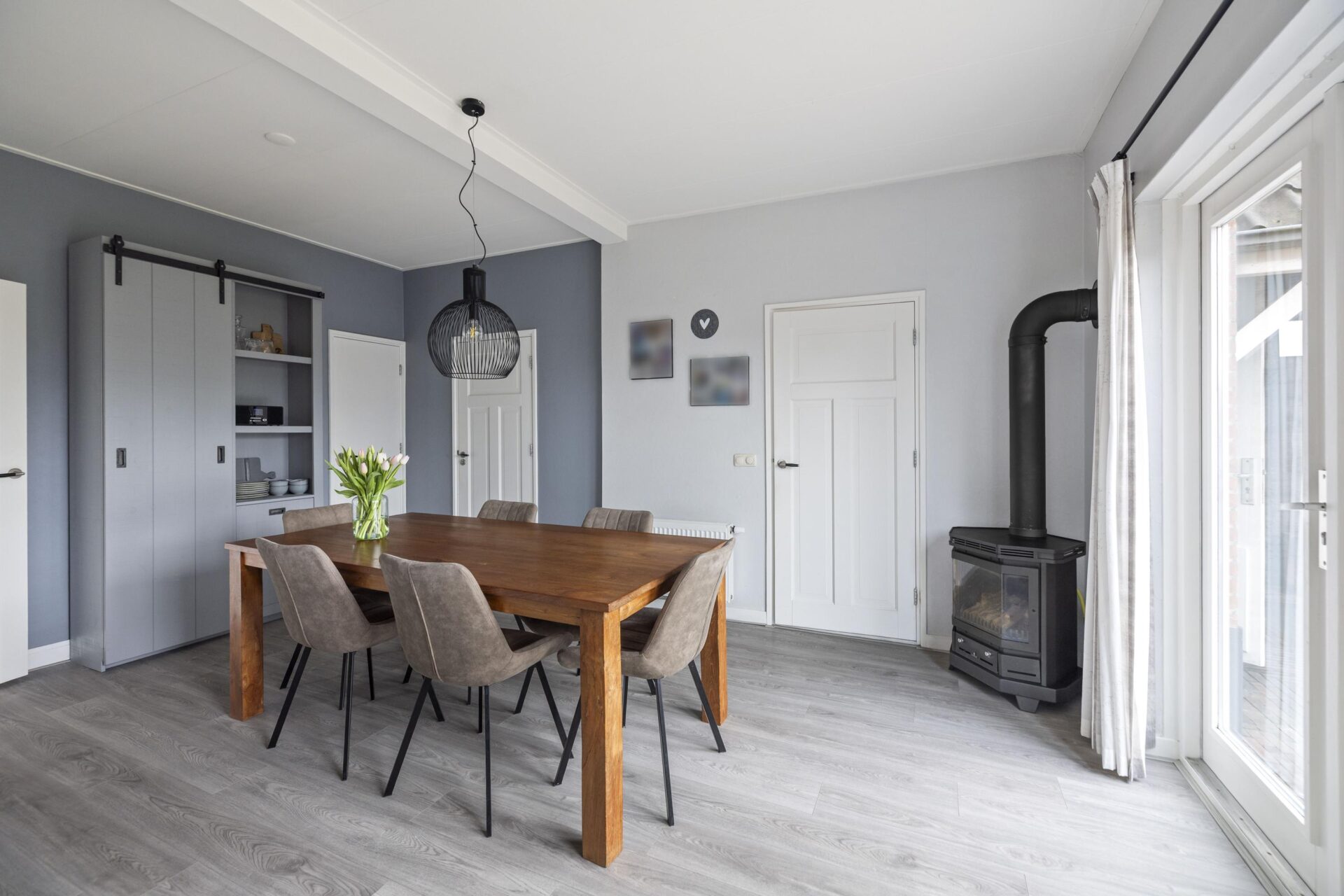 Via de voordeur loop je de hal binnen met toilet en de trapopgang naar de verdieping. Aan de voorzijde van de woning bevindt zich de ruime woonkamer met sfeervolle gaskachel. Dankzij de vele ramen is er een erg prettige lichtinval. De ramen zijn aan de buitenzijde voorzien van screens, wat bijdraagt aan comfort en privacy. De royale leefkeuken bevindt zich aan de achterzijde, de openslaande deuren naar de tuin zorgen voor een fijne verbinding tussen binnen en buiten. De keuken is in een u-opgesteld, en voorzien van diverse inbouwapparatuur.